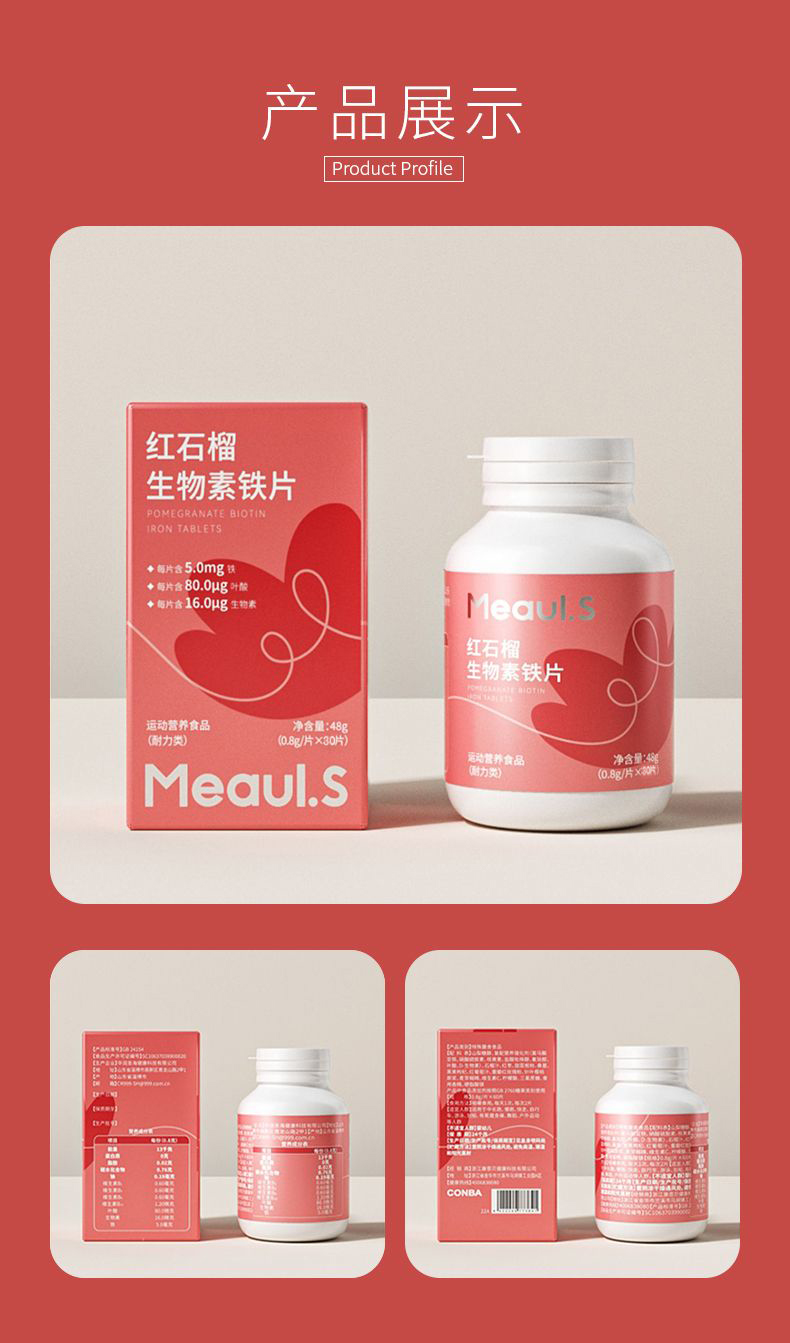 康恩贝·红石榴生物素铁片 1片5mg铁 80ug 叶酸 16ug生物素 好吸收 无锈味 不伤胃 孕妇儿童都可吃 30片/瓶