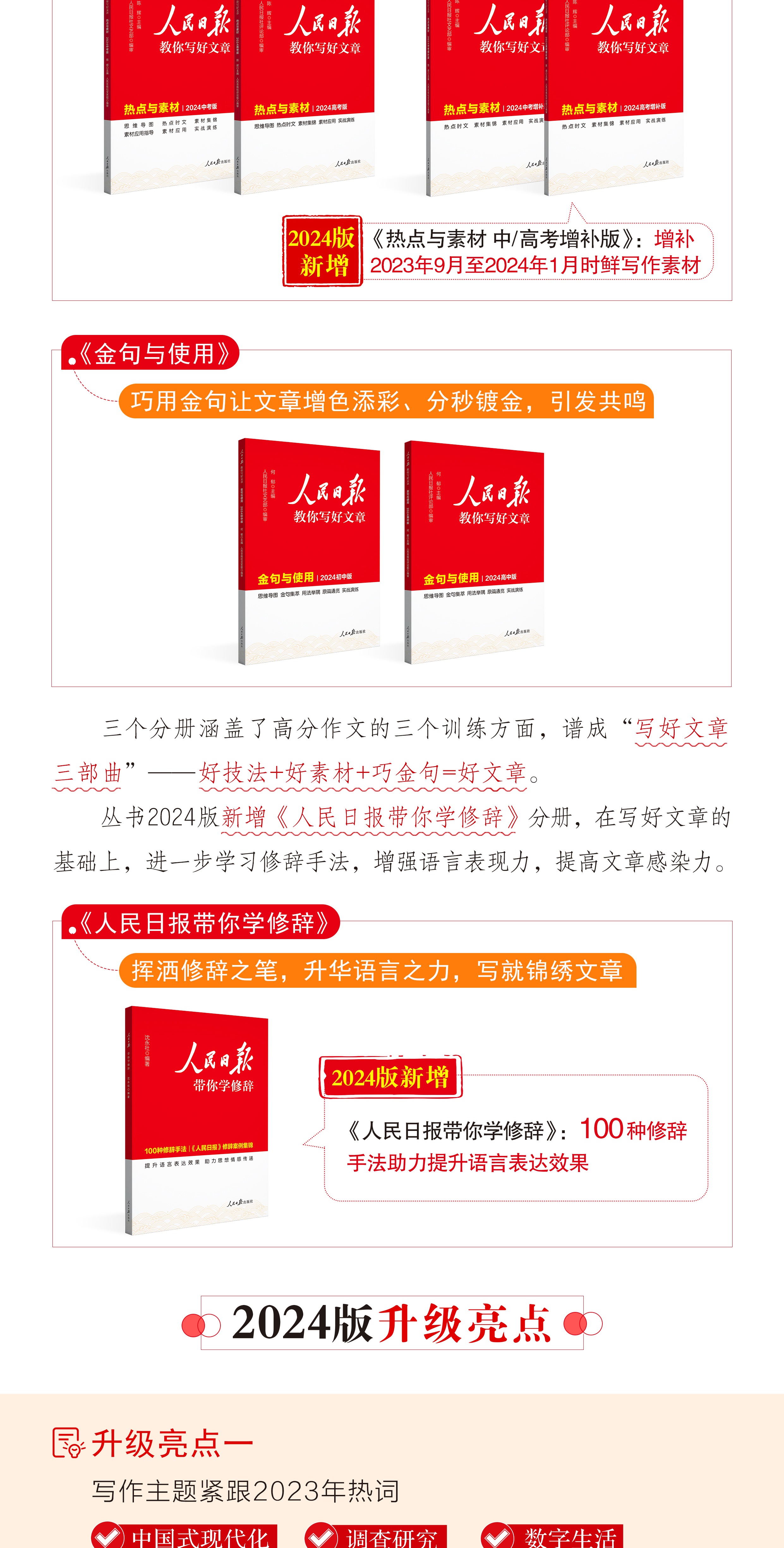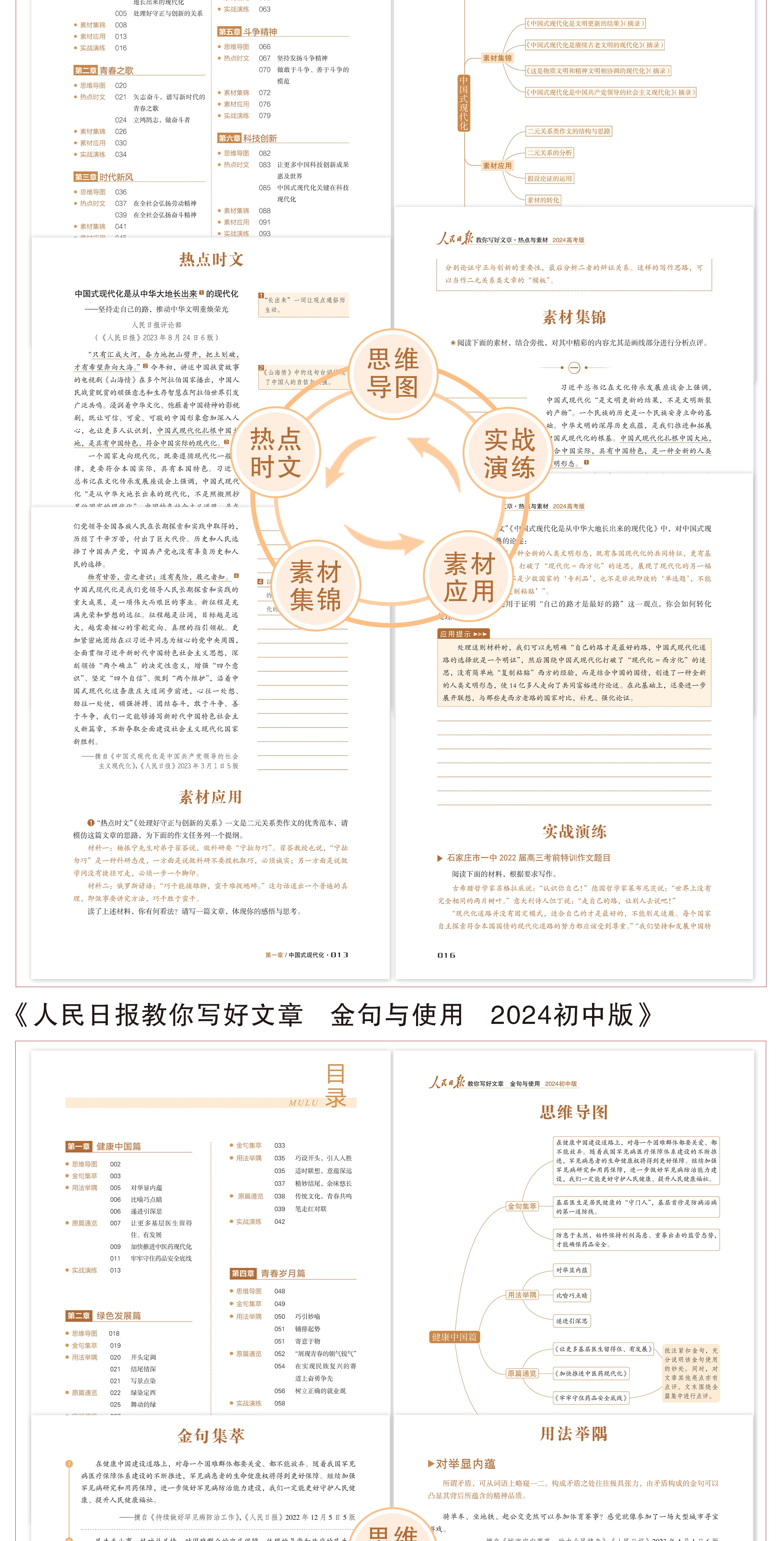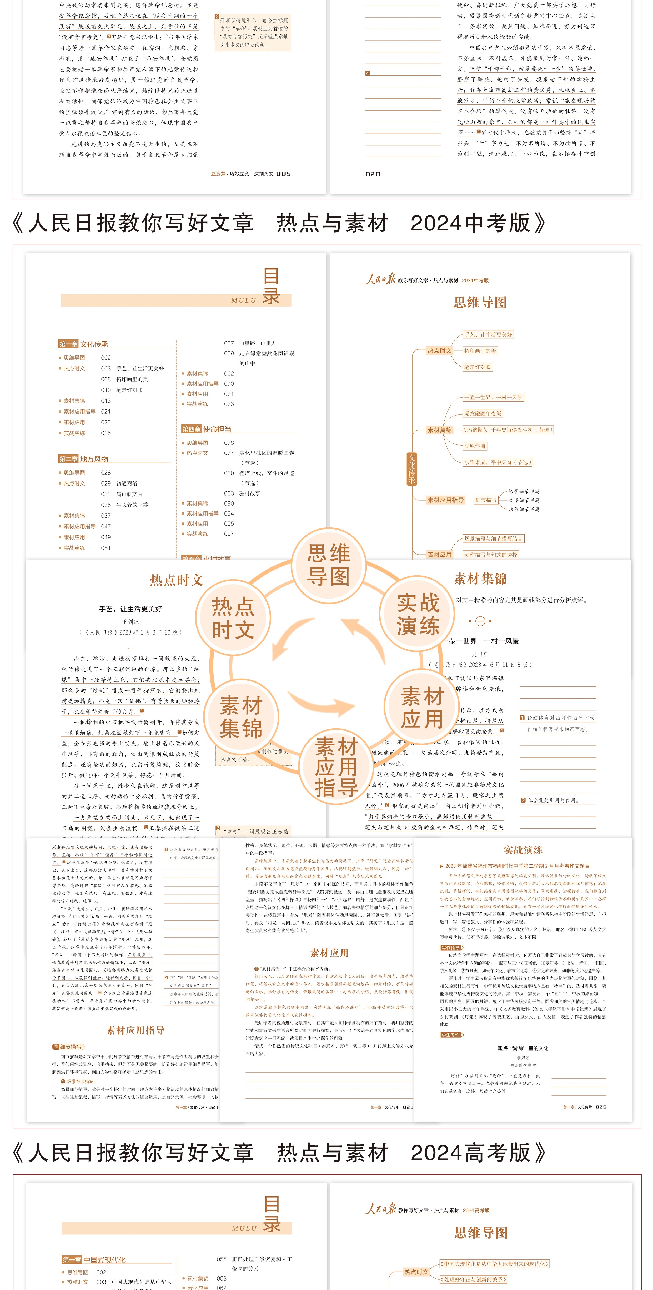 预售【2024新版】人民日报教你写好文章中考版+高考版 技法与指导 热点与素材