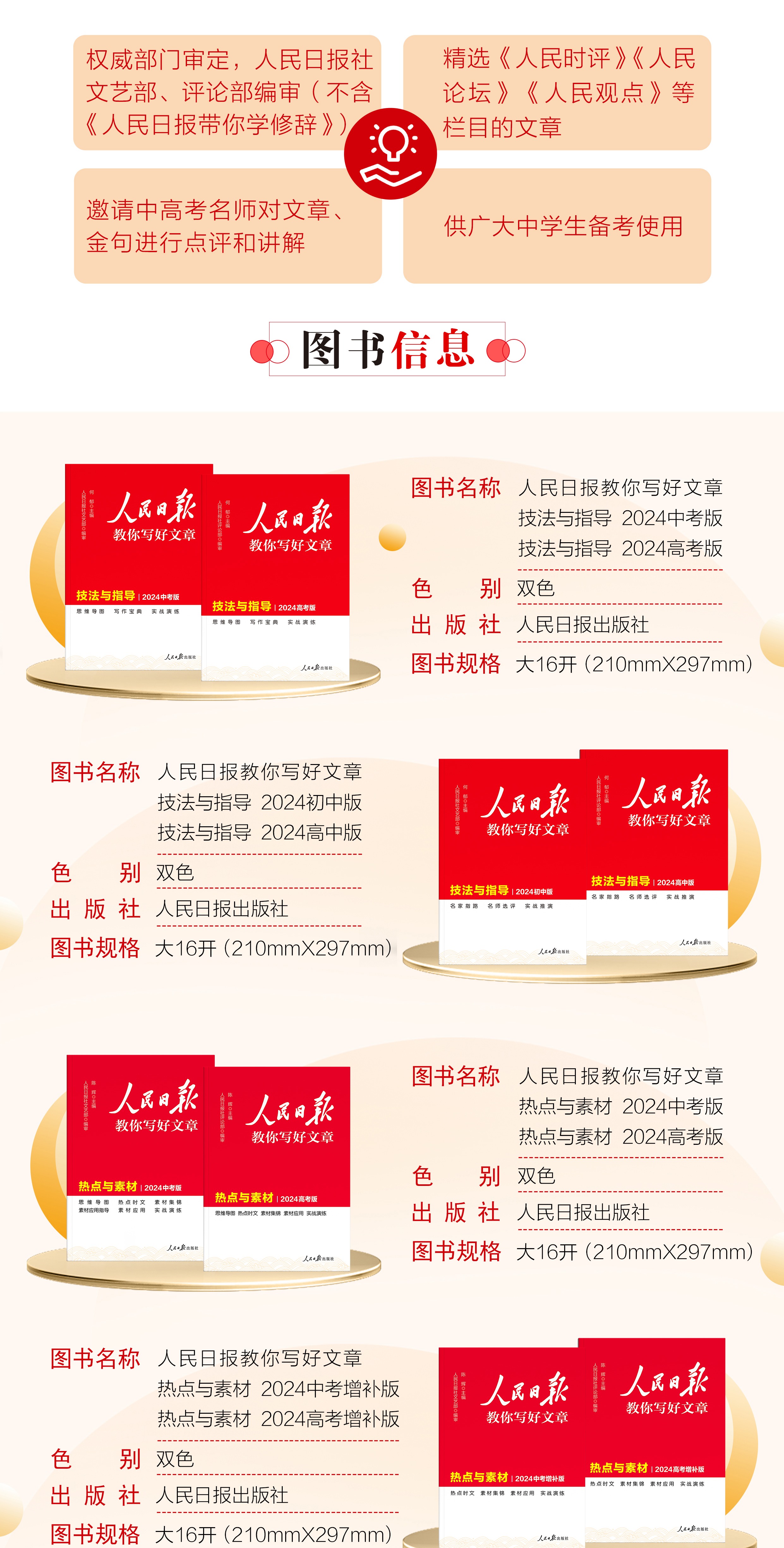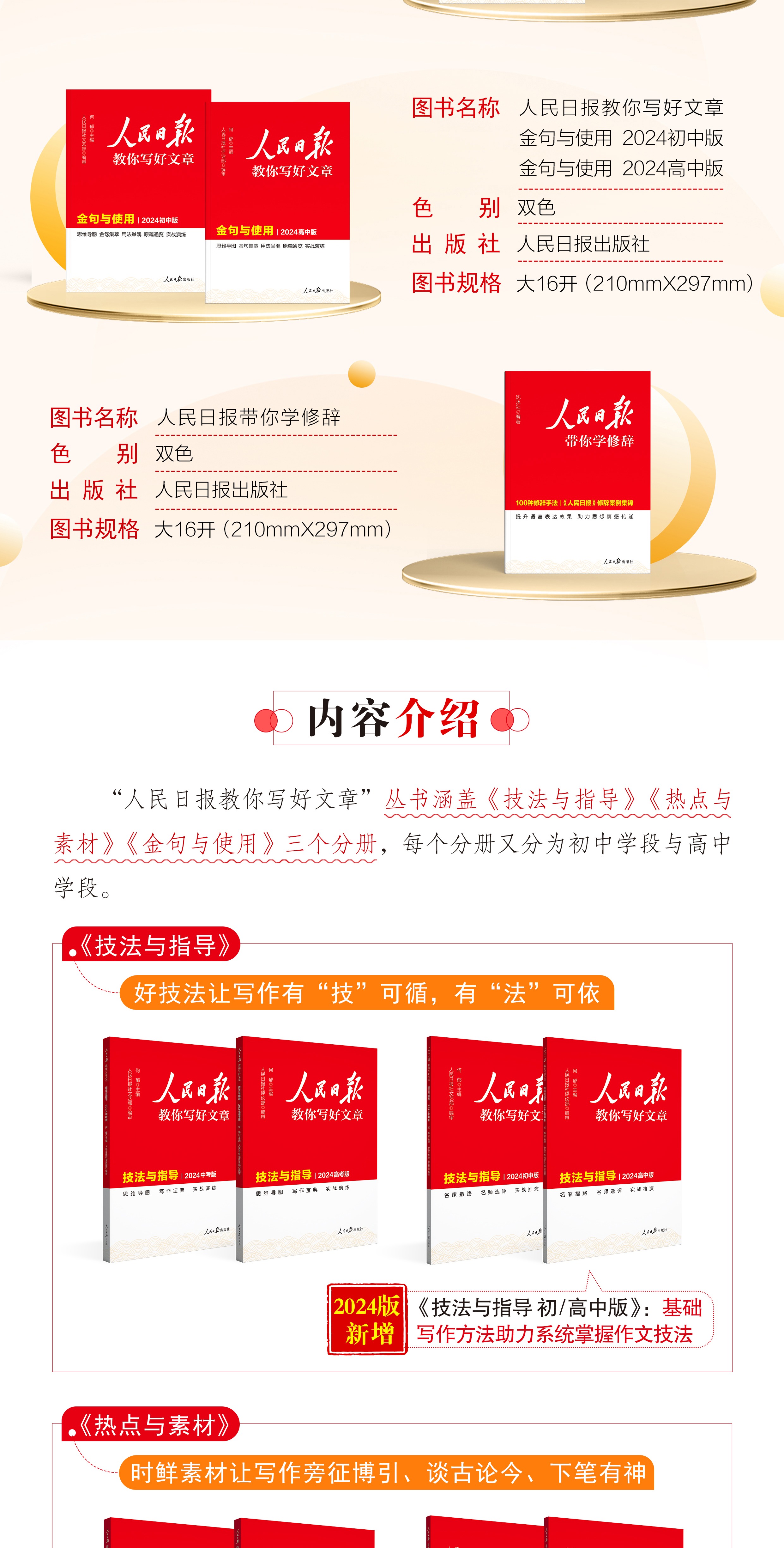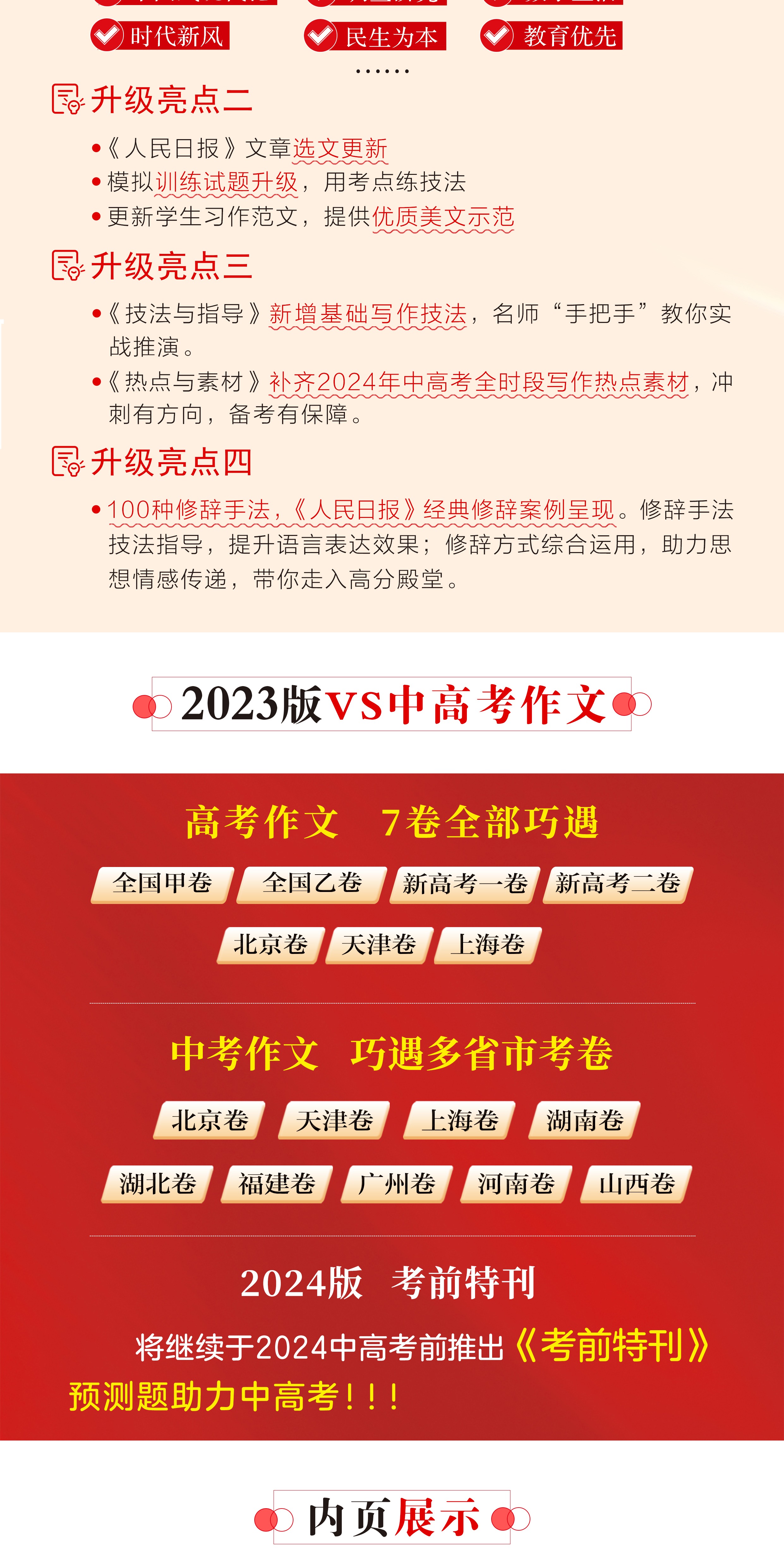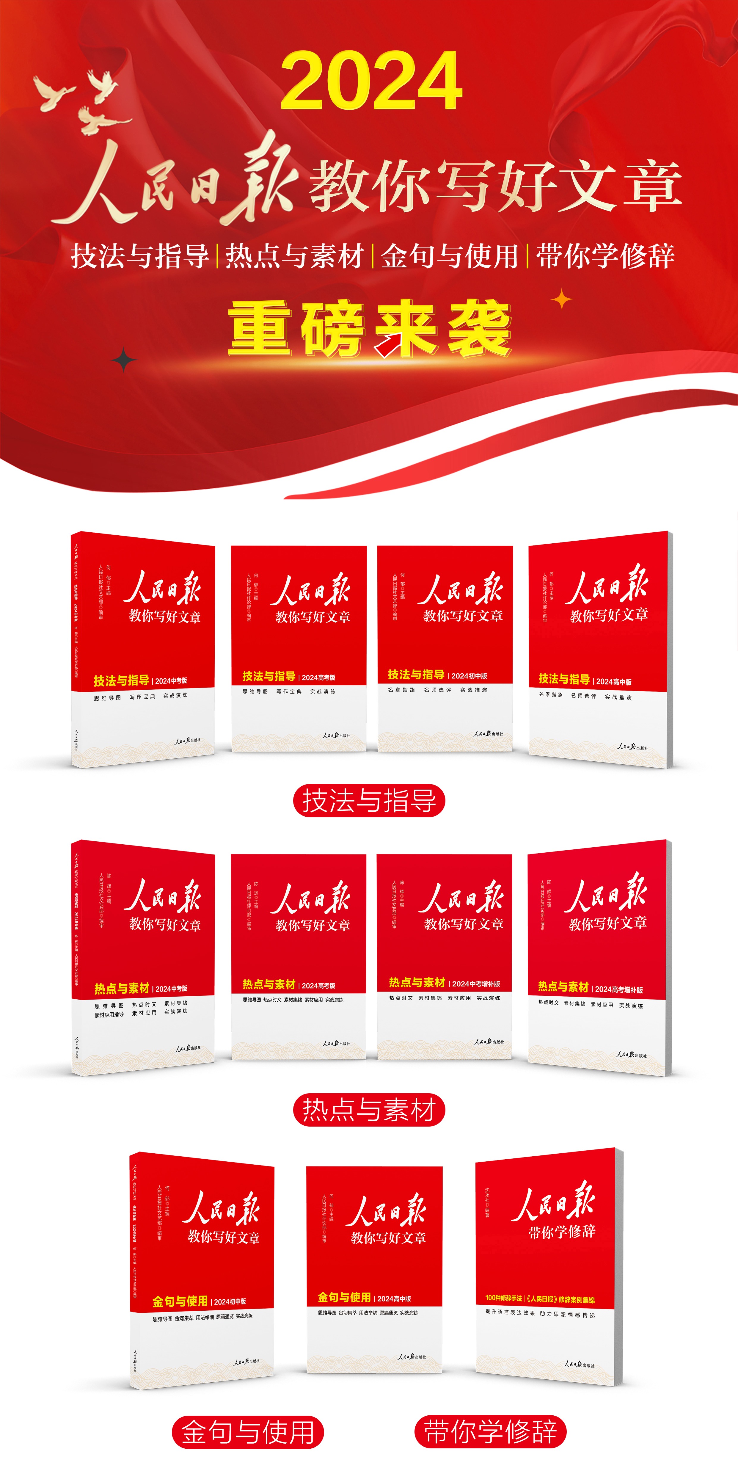 预售【2024新版】人民日报教你写好文章中考版+高考版 技法与指导 热点与素材