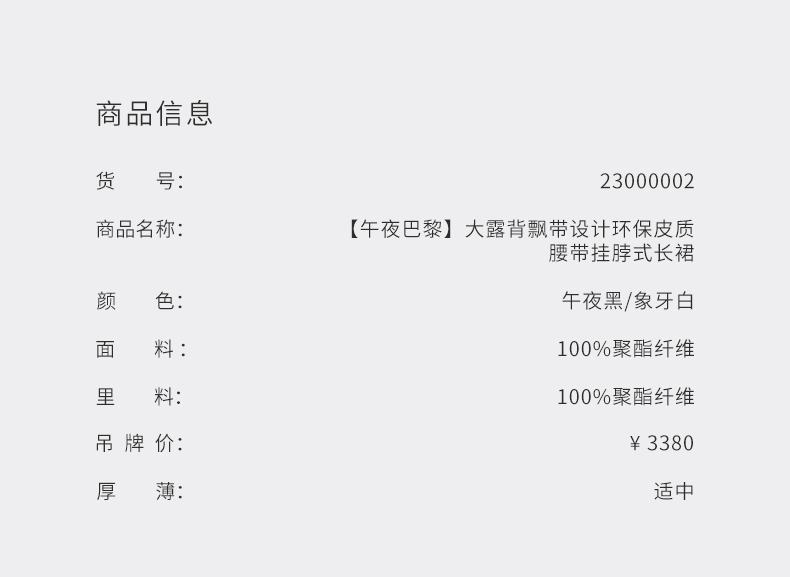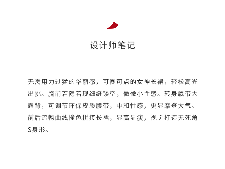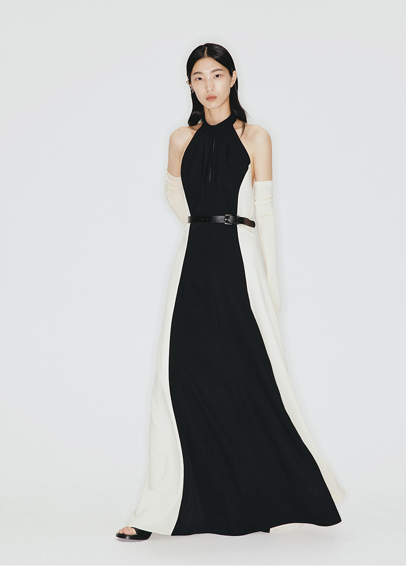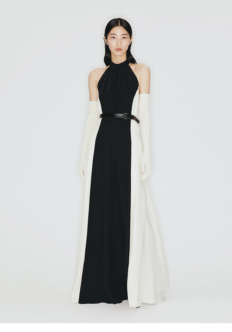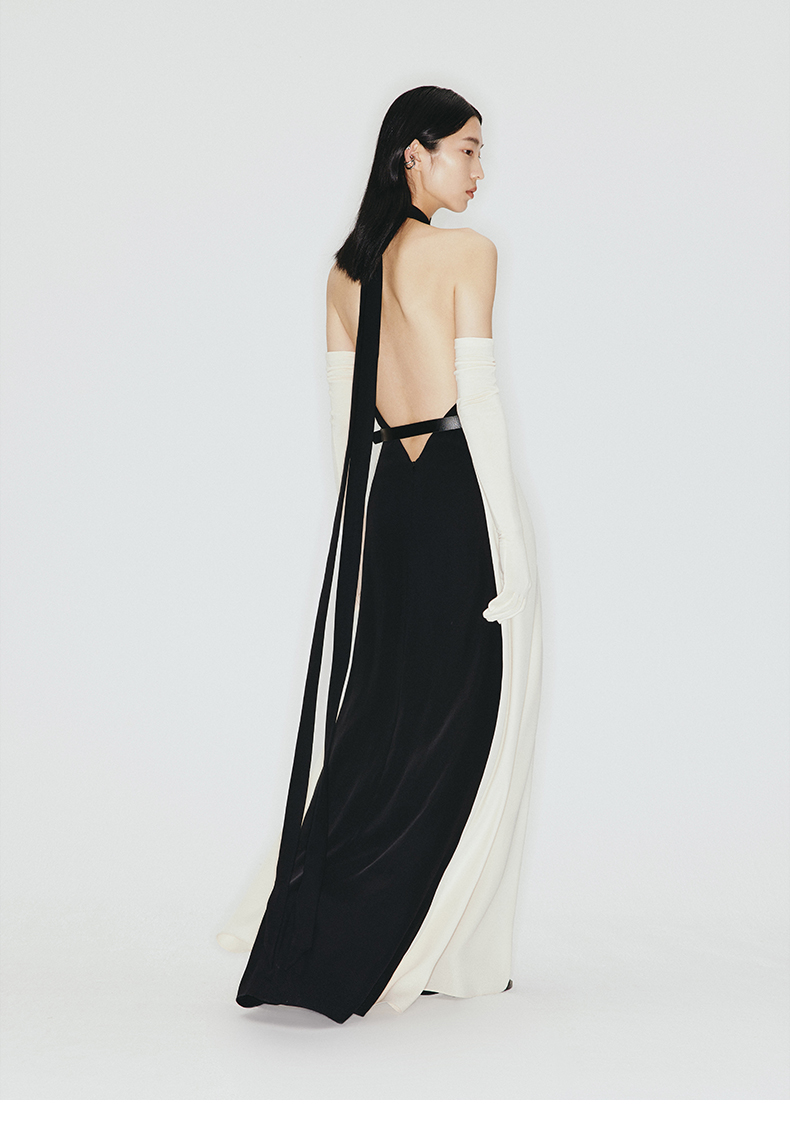 【午夜巴黎】大露背飘带设计环保皮质腰带挂脖式长裙/23000002