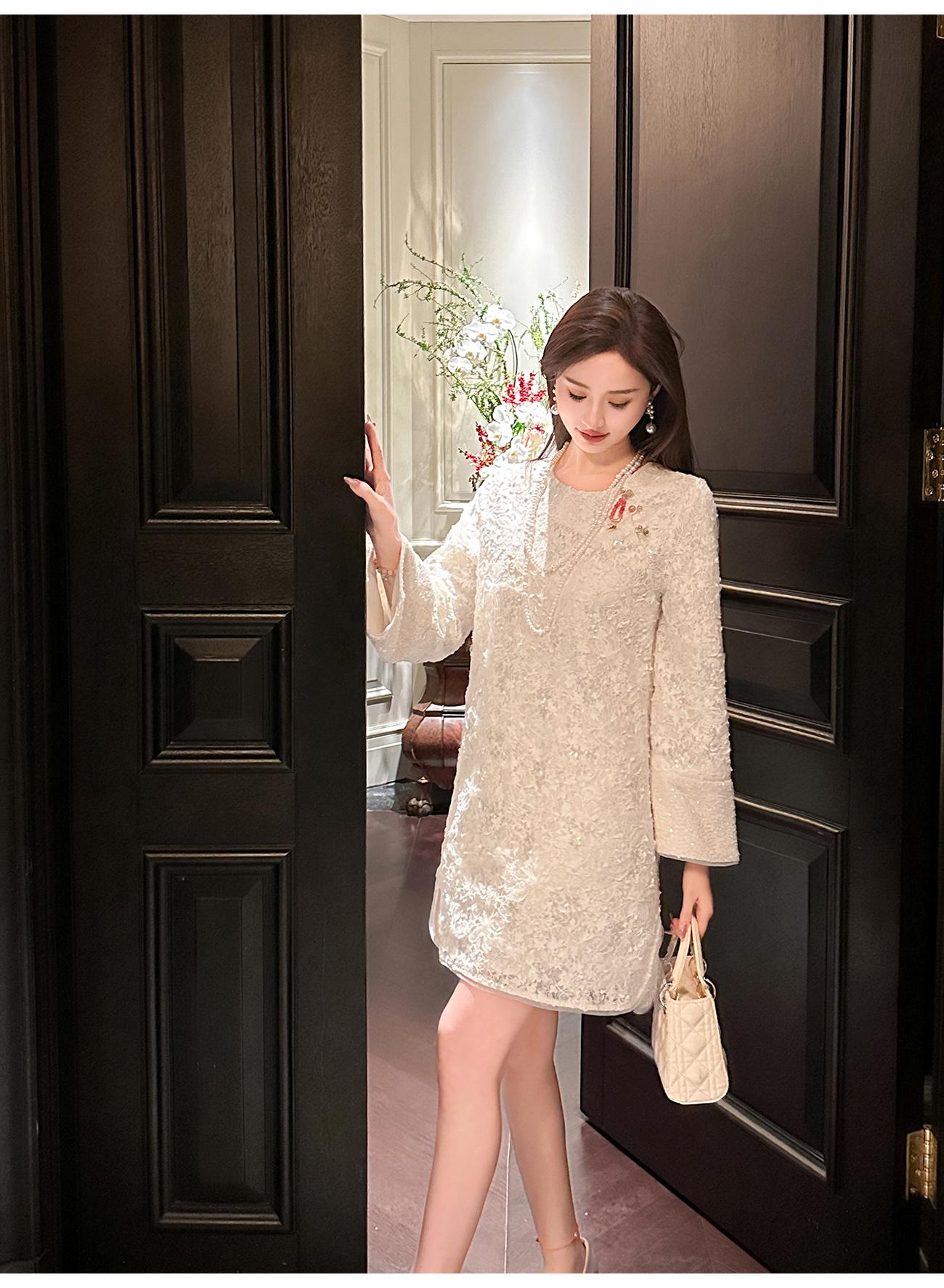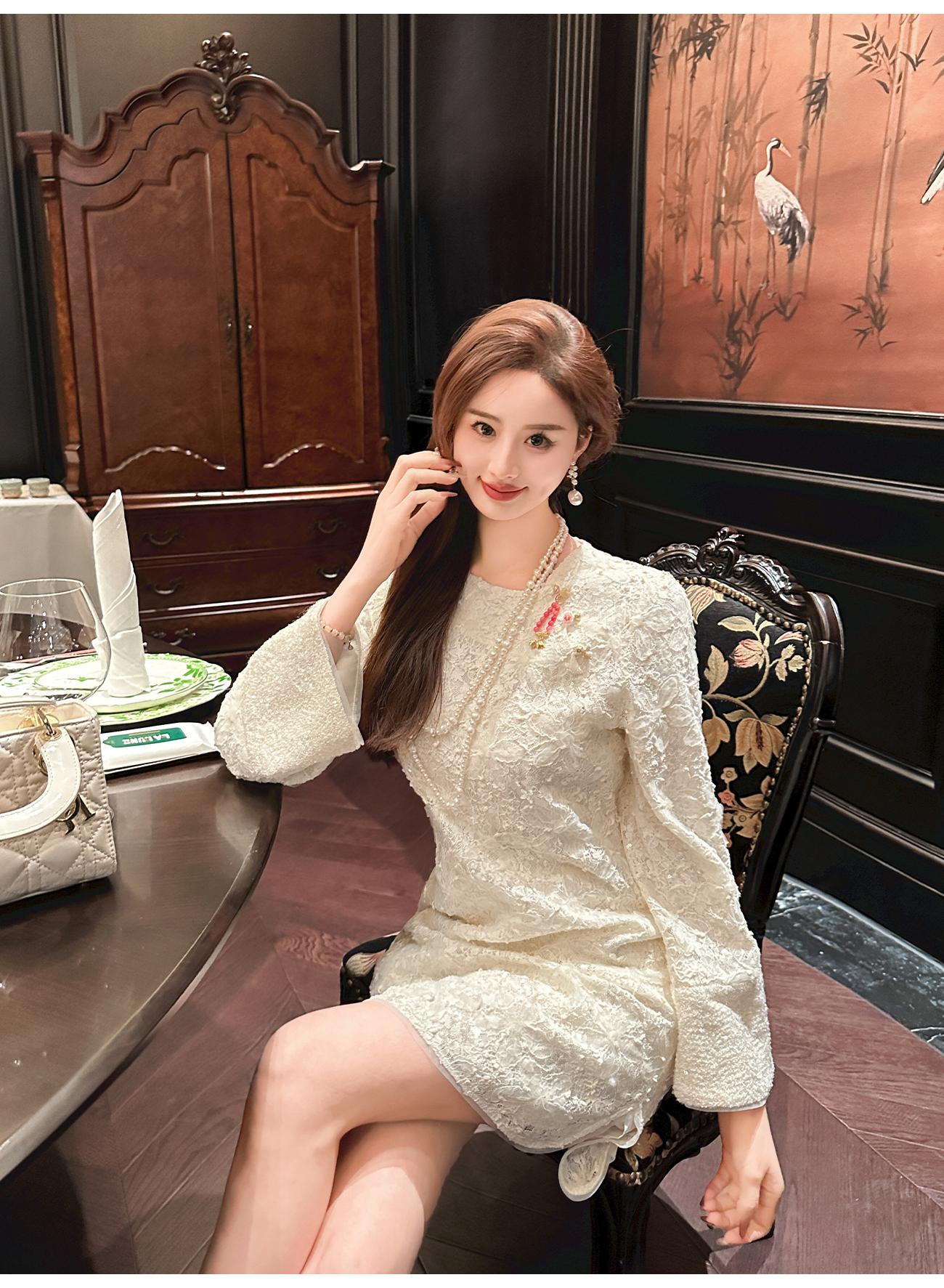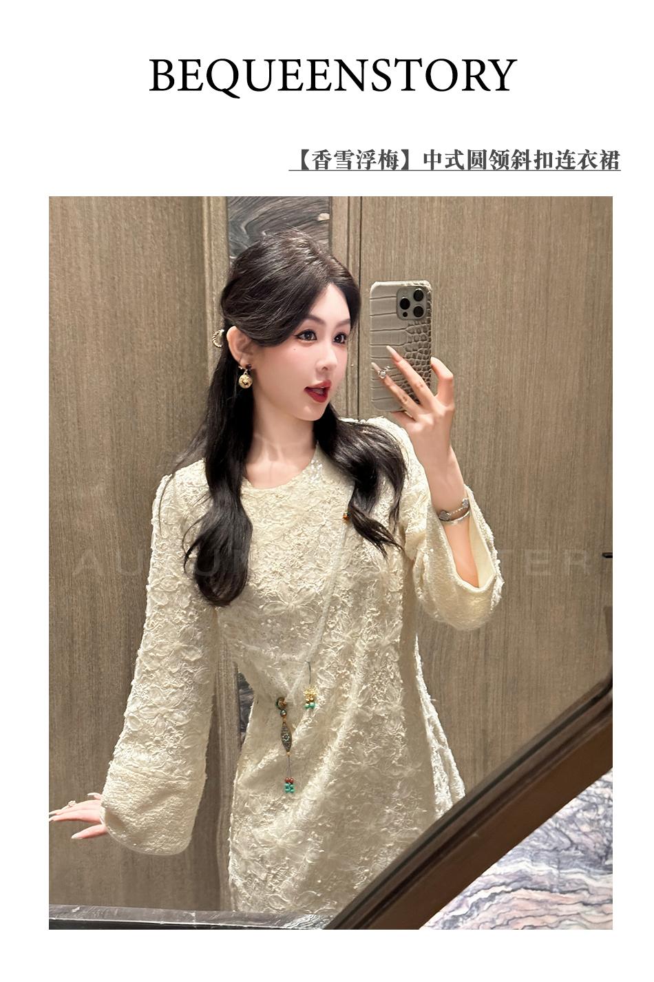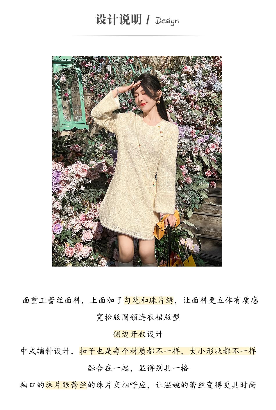 【年终福利,不退不换】 【香雪浮梅】中式重工蕾丝侧边开衩圆领宽松连衣裙女