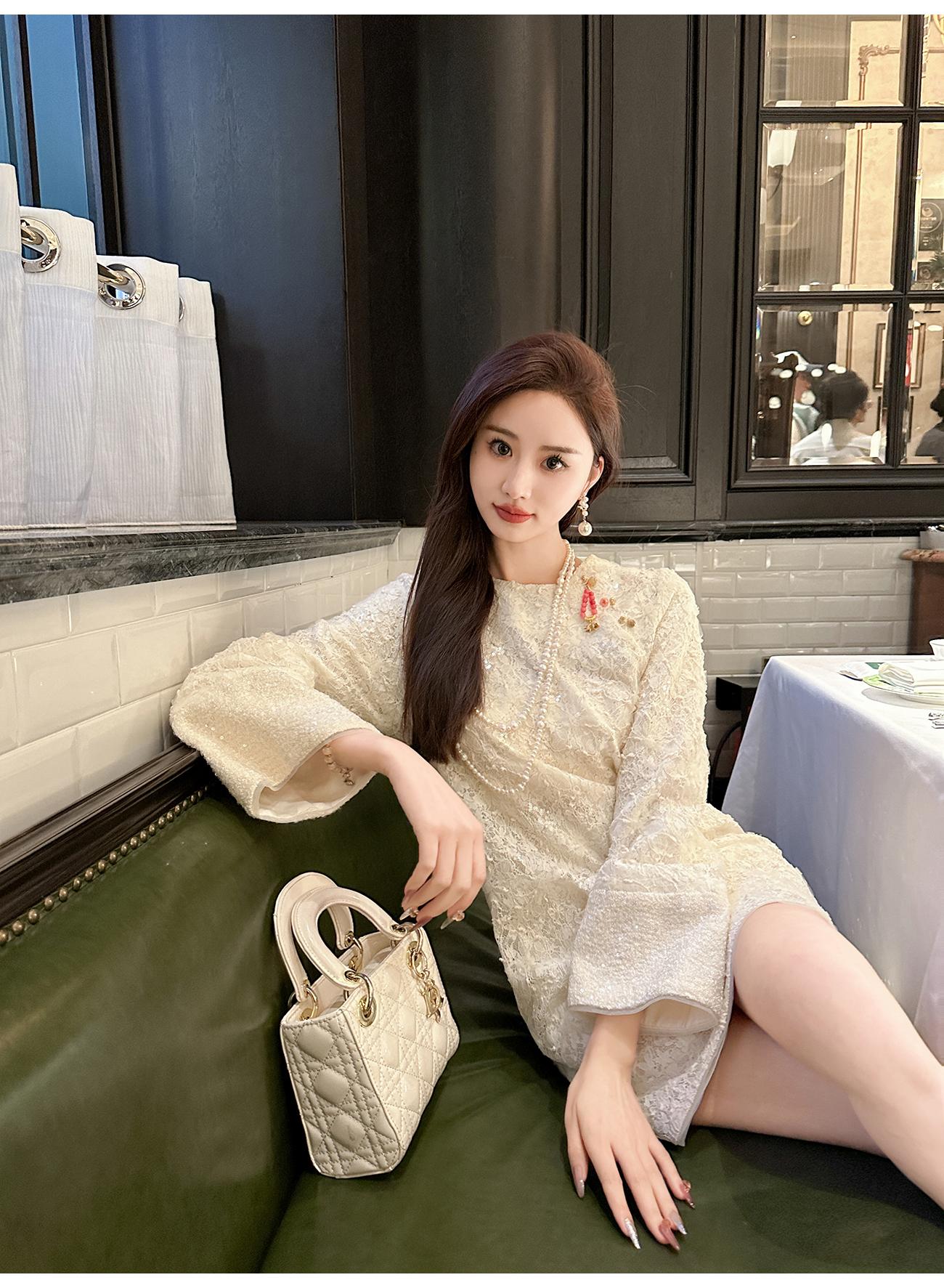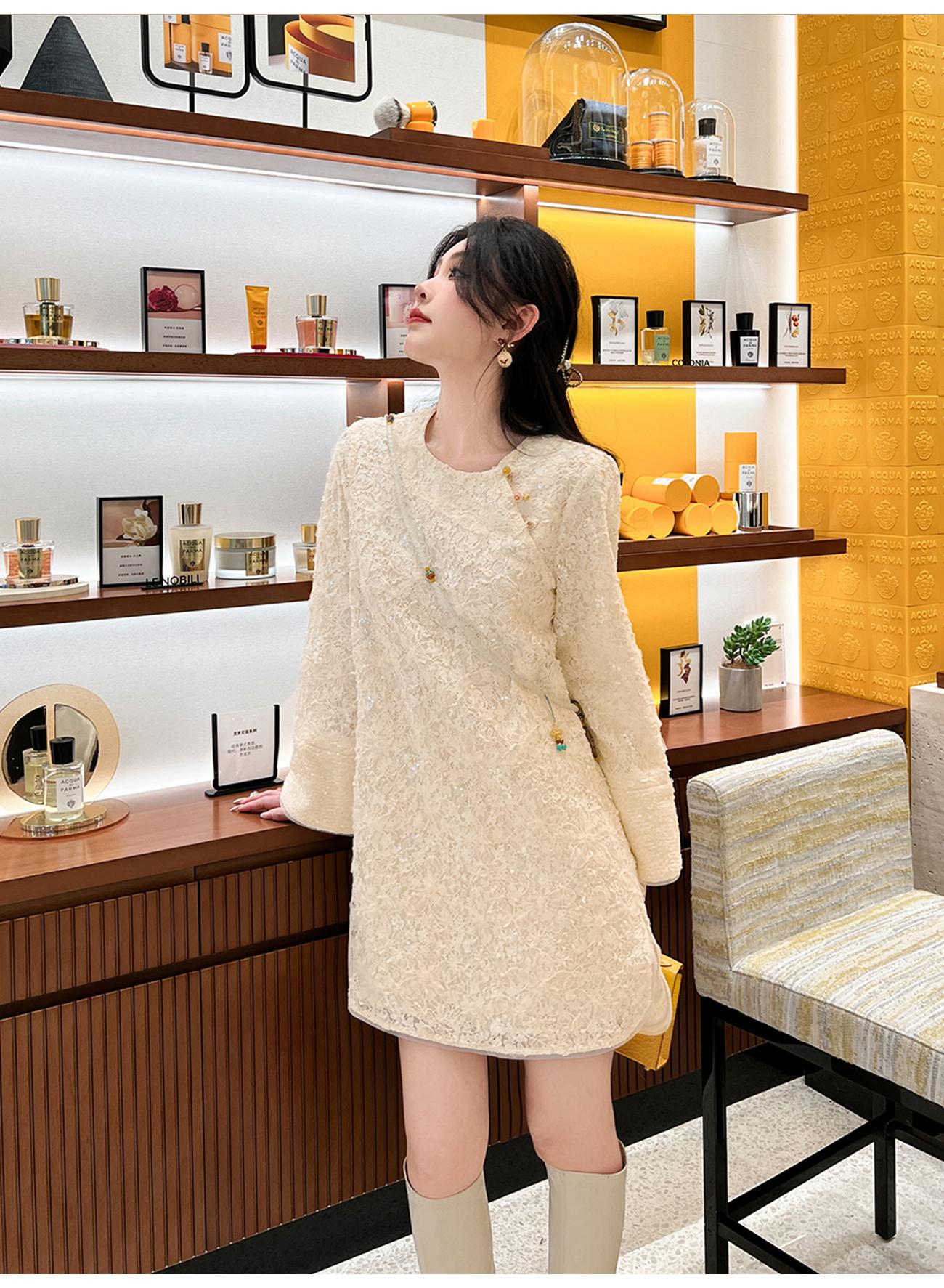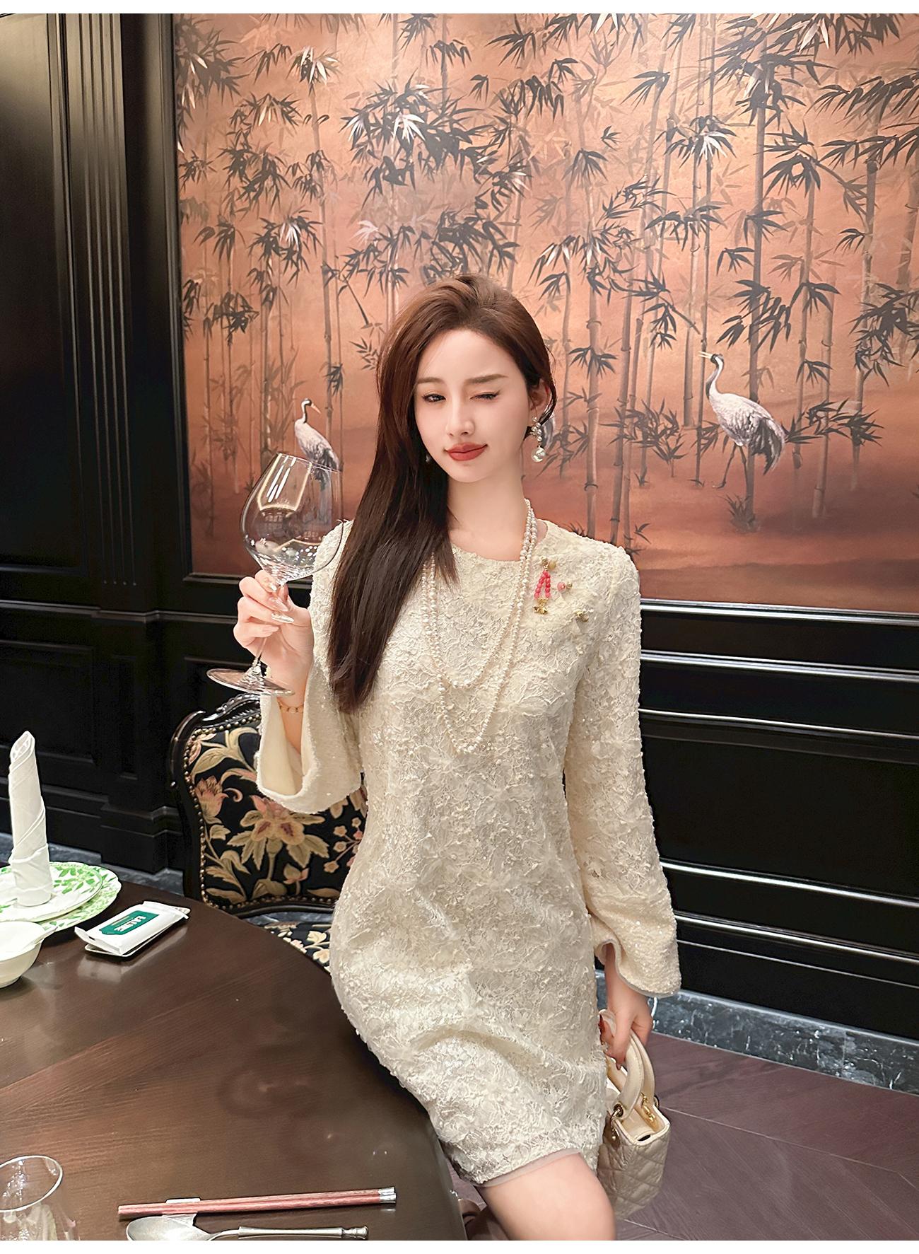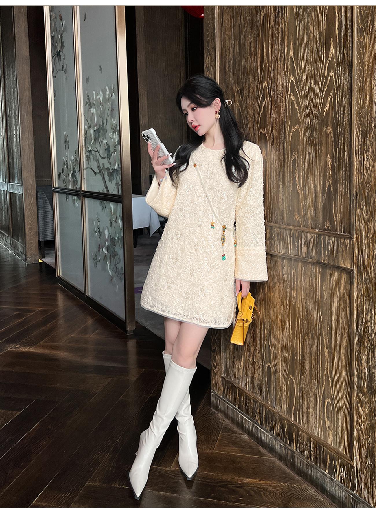 【年终福利,不退不换】 【香雪浮梅】中式重工蕾丝侧边开衩圆领宽松连衣裙女