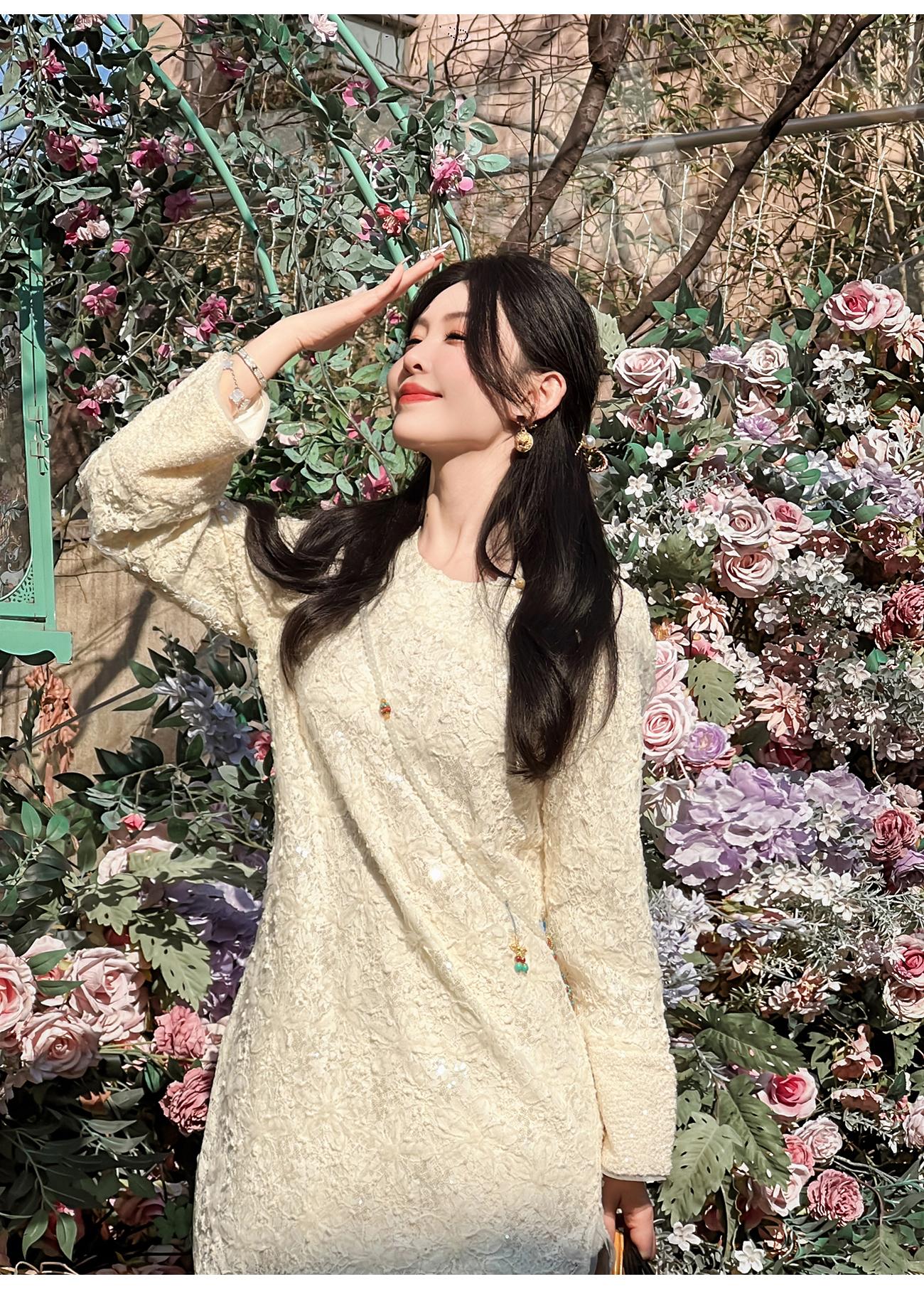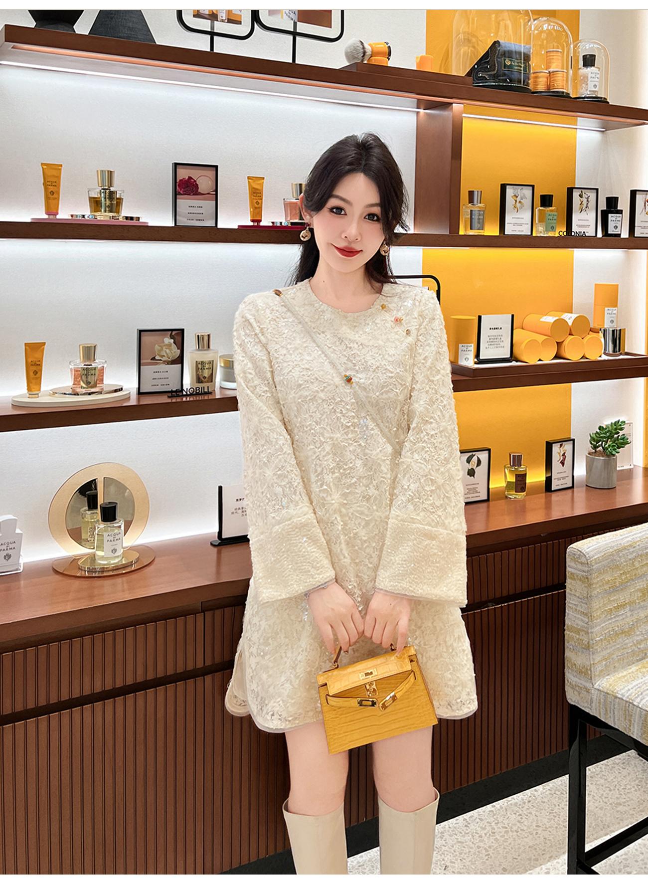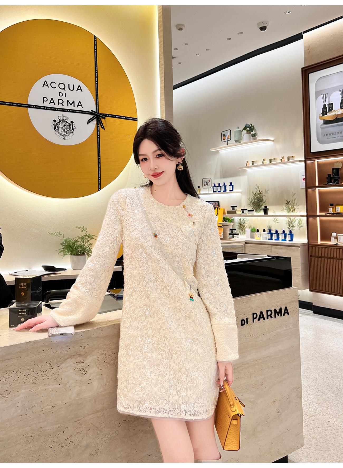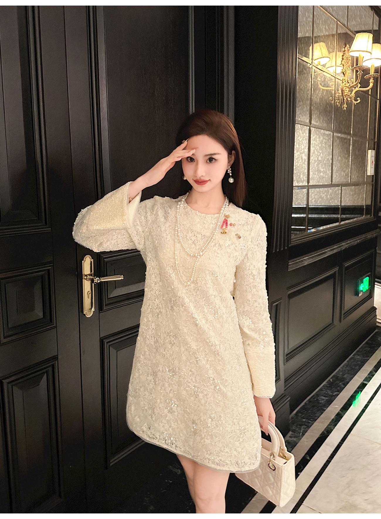 【年终福利,不退不换】 【香雪浮梅】中式重工蕾丝侧边开衩圆领宽松连衣裙女