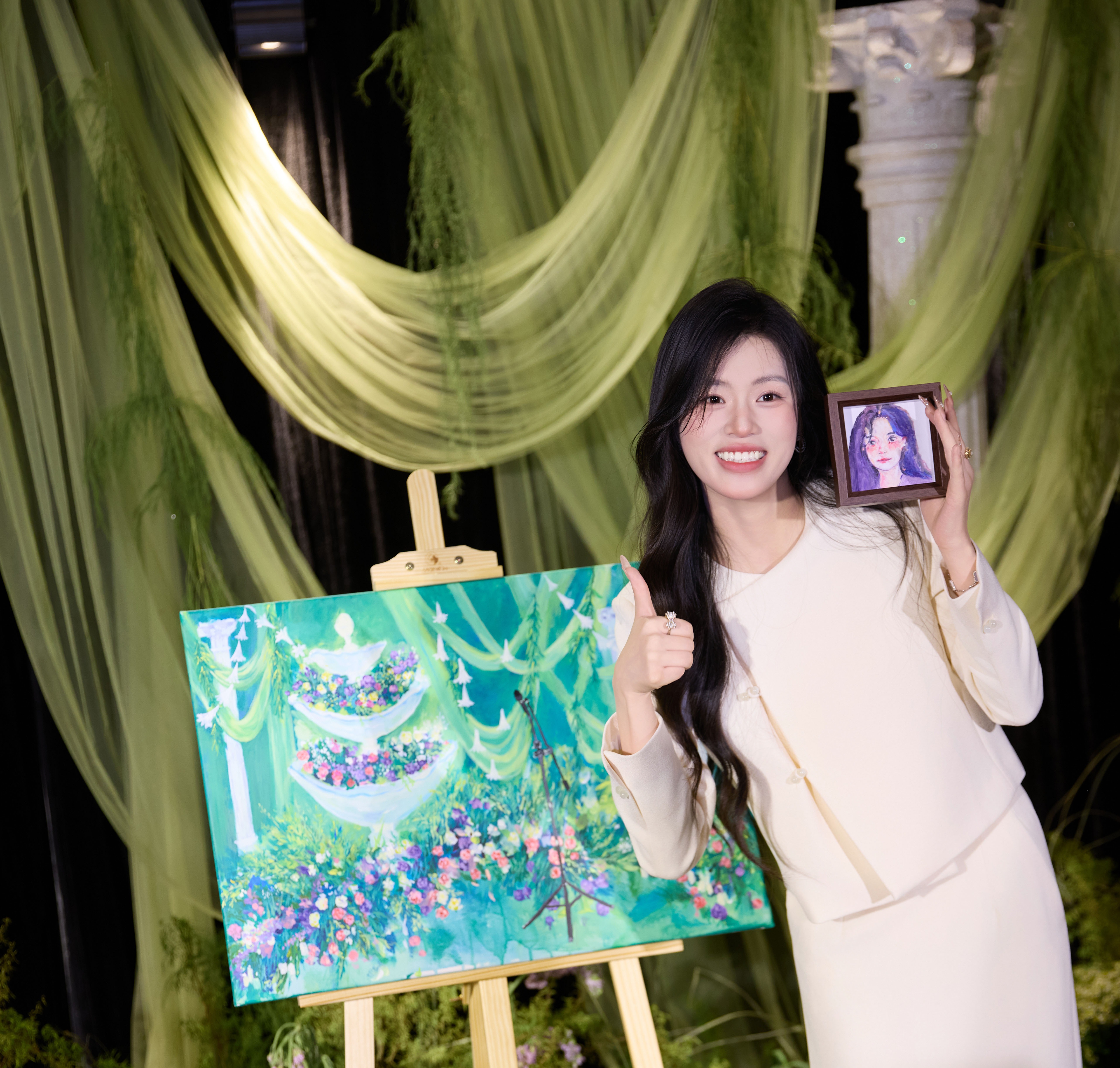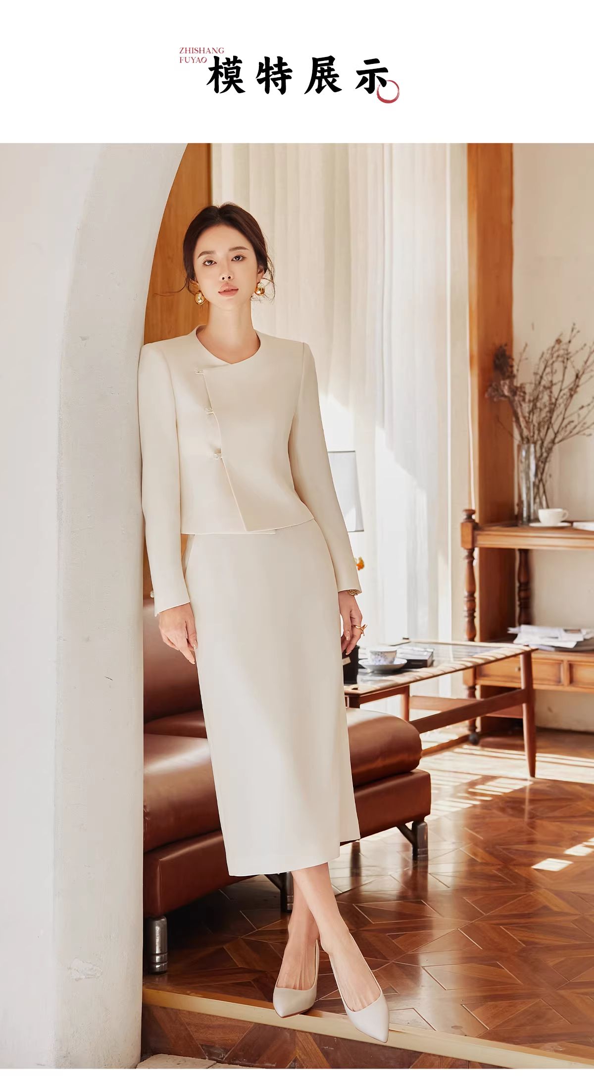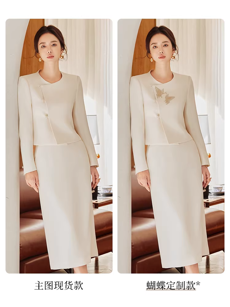 法小曼*子珍专款/春夏女2025年新款时尚套装年轻洋气减龄正装米白色职业装西装伞裙