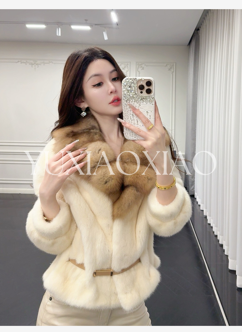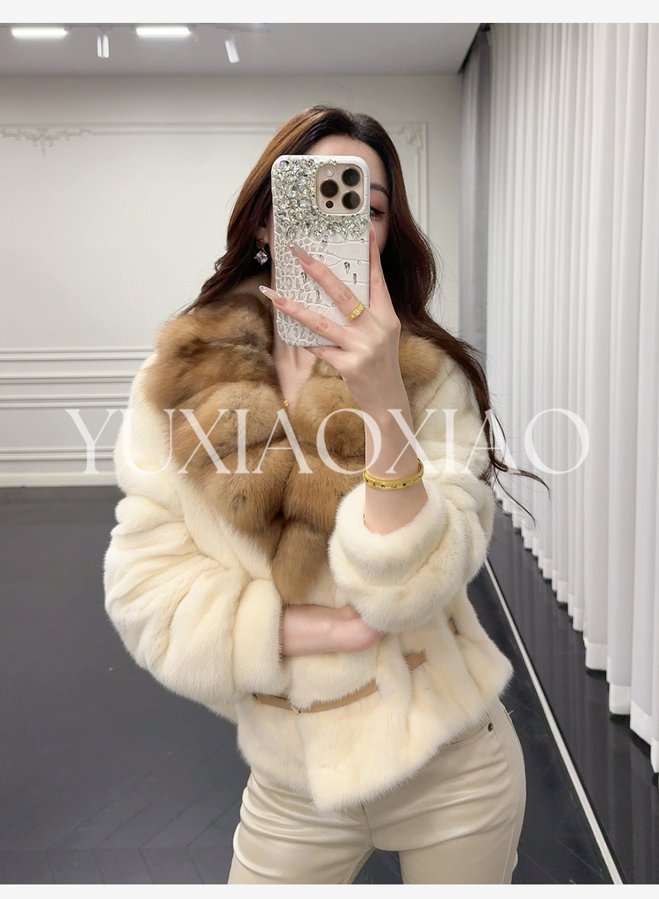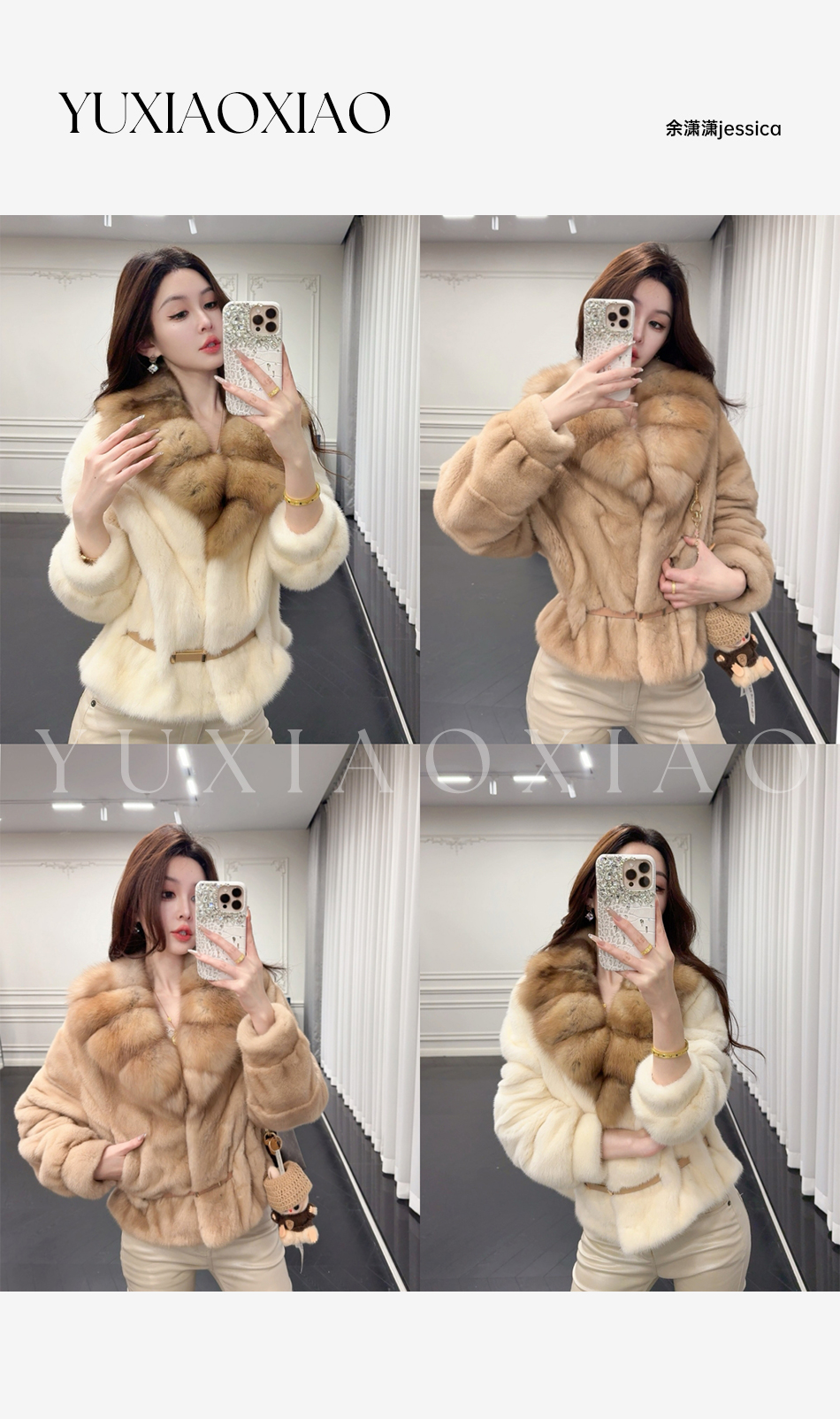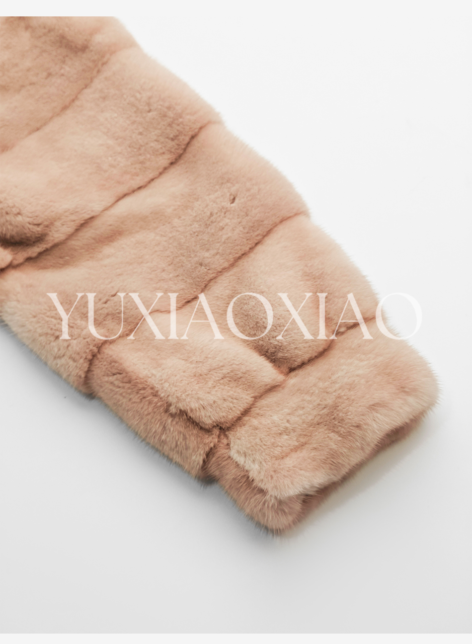 余潇潇【金字塔女王】天鹅绒本色貂半抽刀横排水貂毛拼接紫水貂皮草