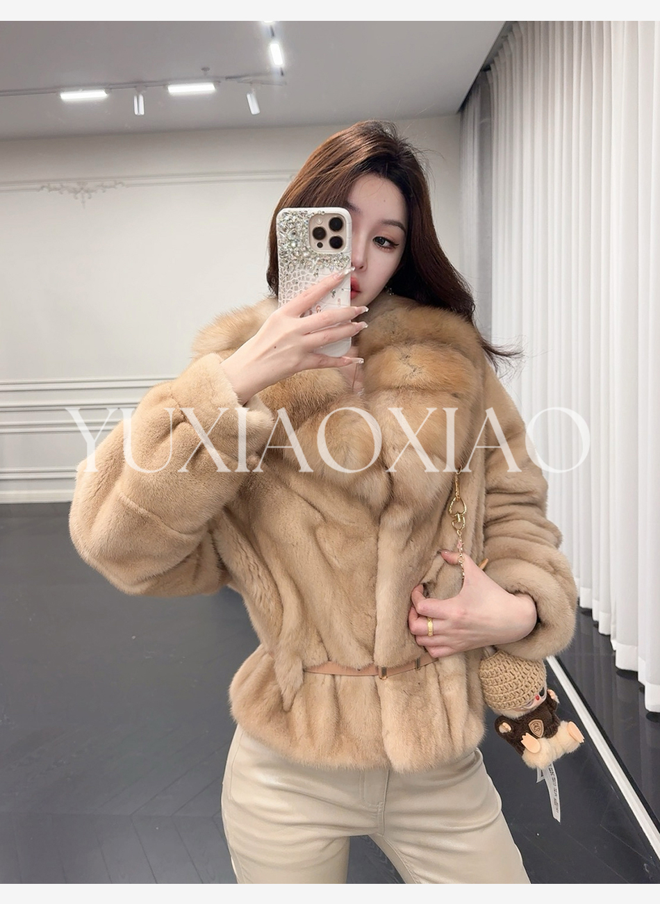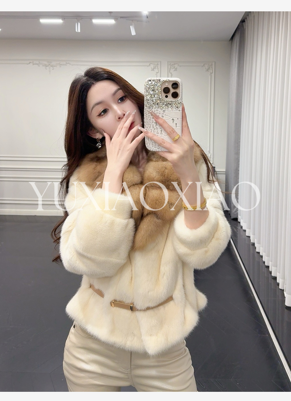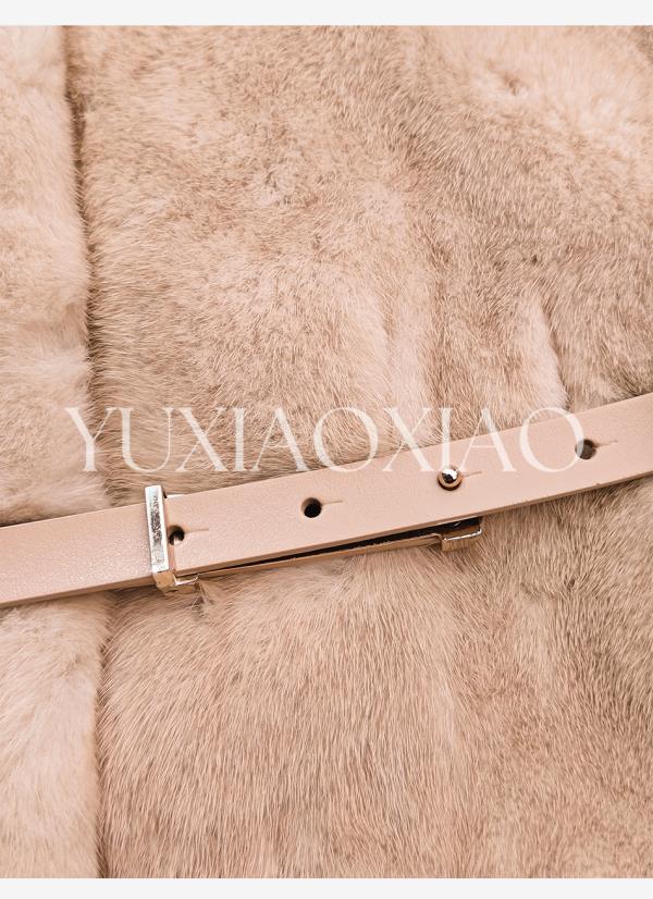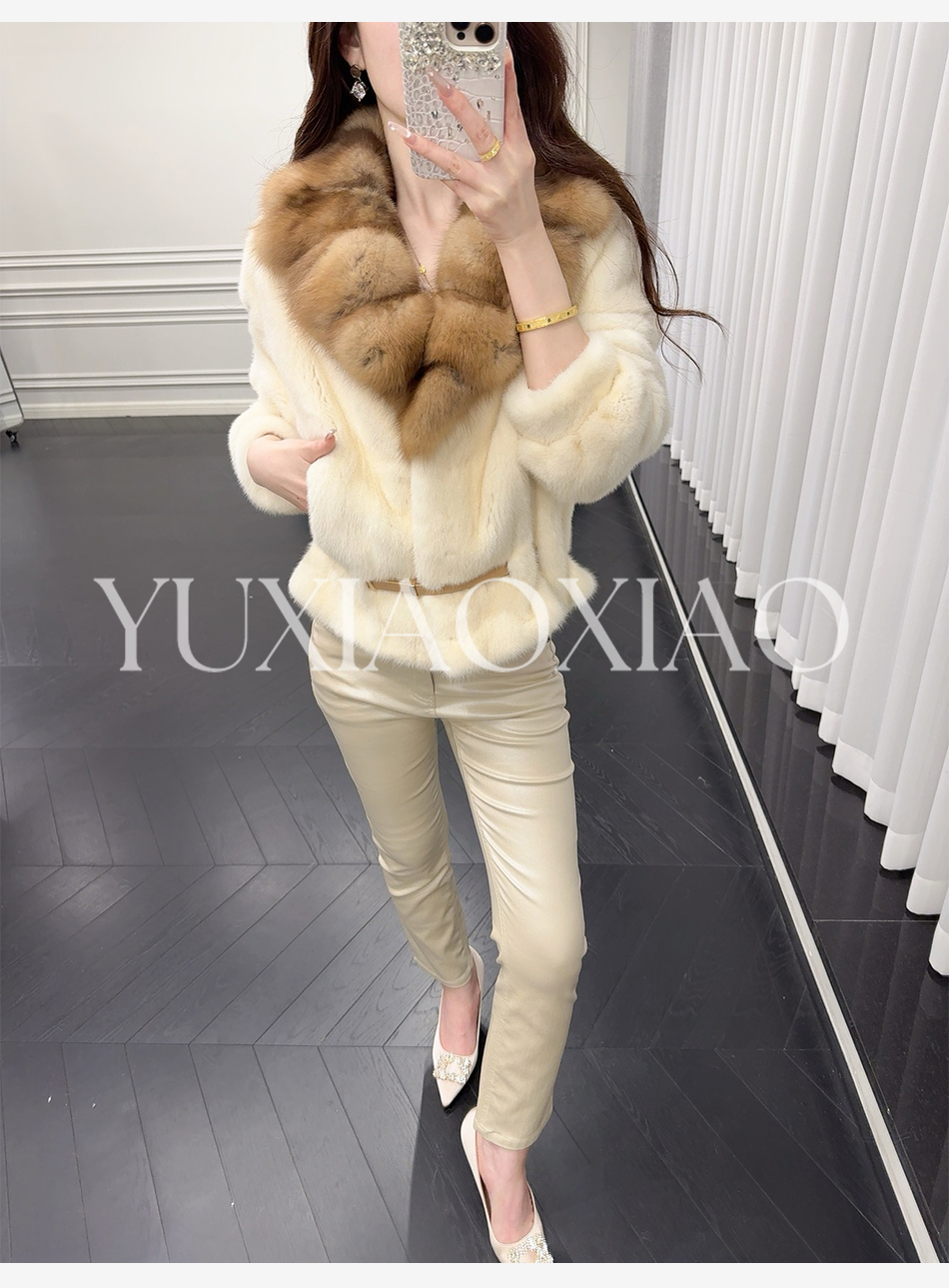 余潇潇【金字塔女王】天鹅绒本色貂半抽刀横排水貂毛拼接紫水貂皮草