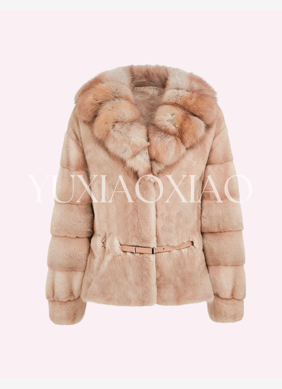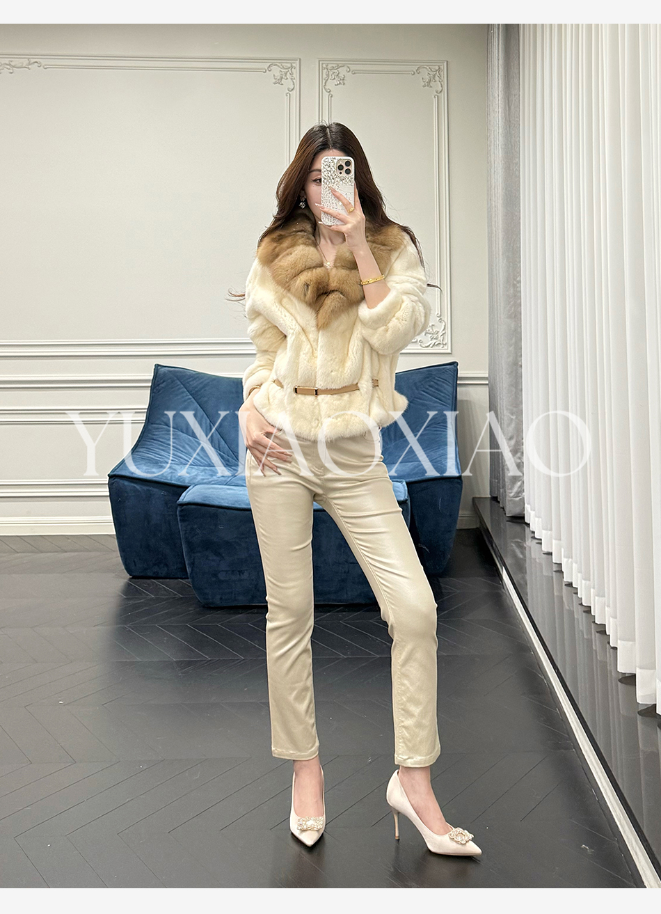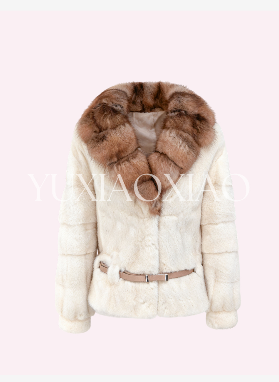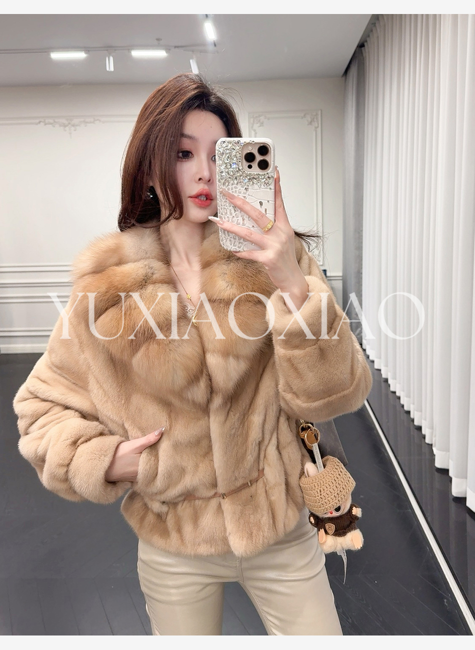 余潇潇【金字塔女王】天鹅绒本色貂半抽刀横排水貂毛拼接紫水貂皮草