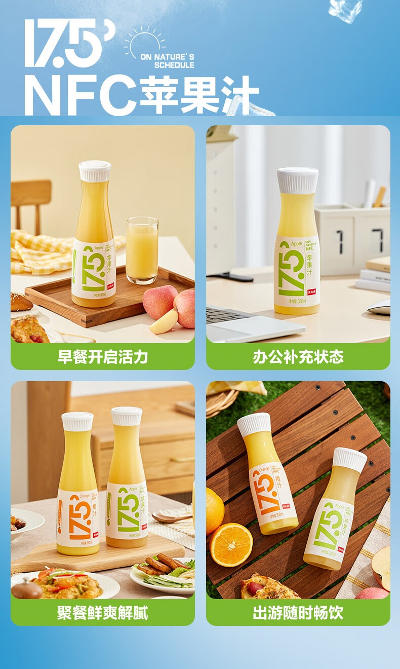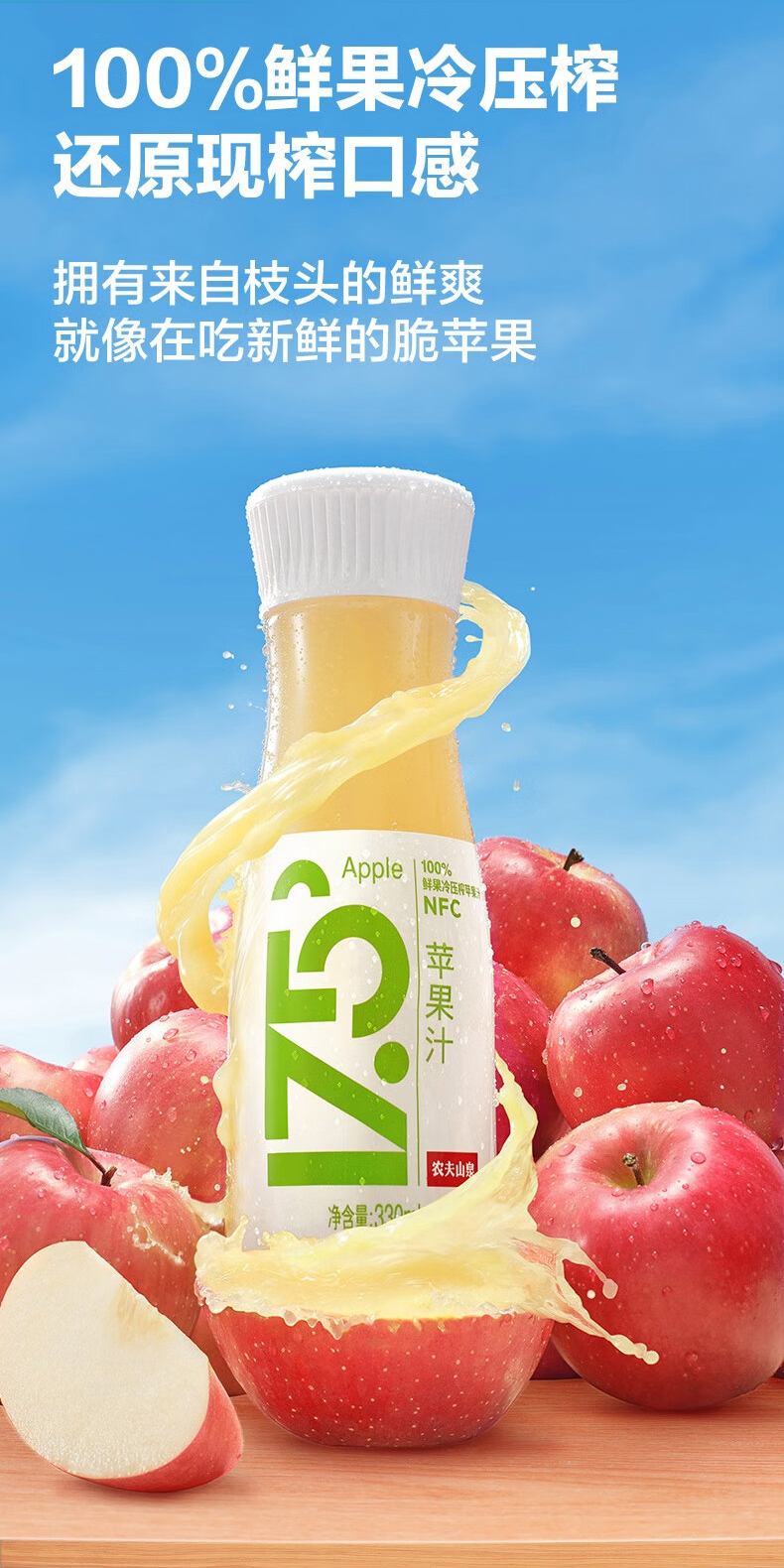 100%鲜果冷压榨0添加NFC纯果汁农夫山泉17.5°新疆苹果汁橙汁330ml*6低温冷藏款