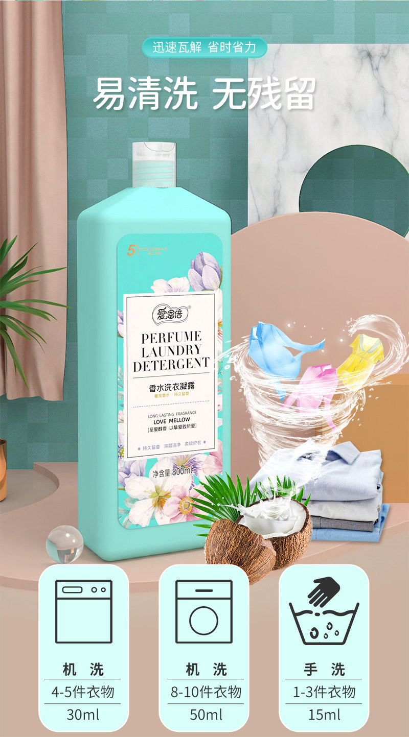 爱恩倍洗衣凝露奢宠香水持久留香深层洁净柔软护衣 1桶800ML JJ2110150017-G
