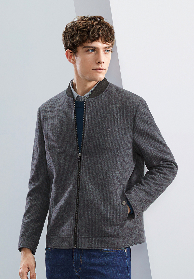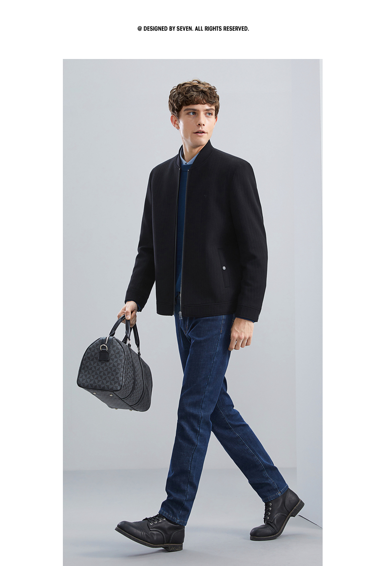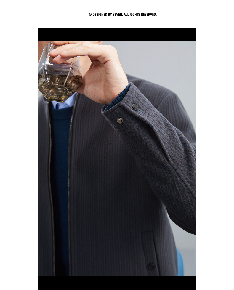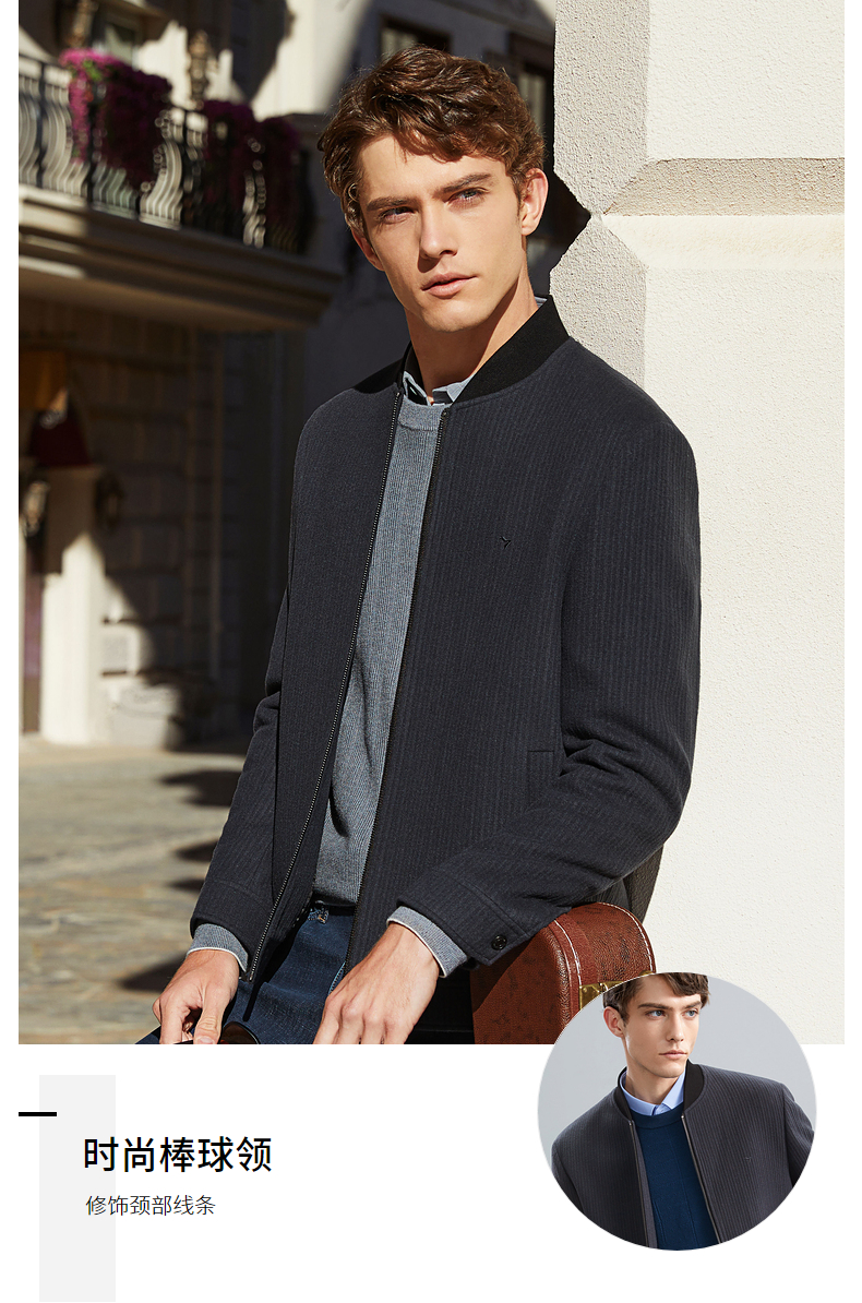 【条纹肌理】柒牌棒球领夹克男冬季厚款时尚休闲保暖毛呢外套 125D70150