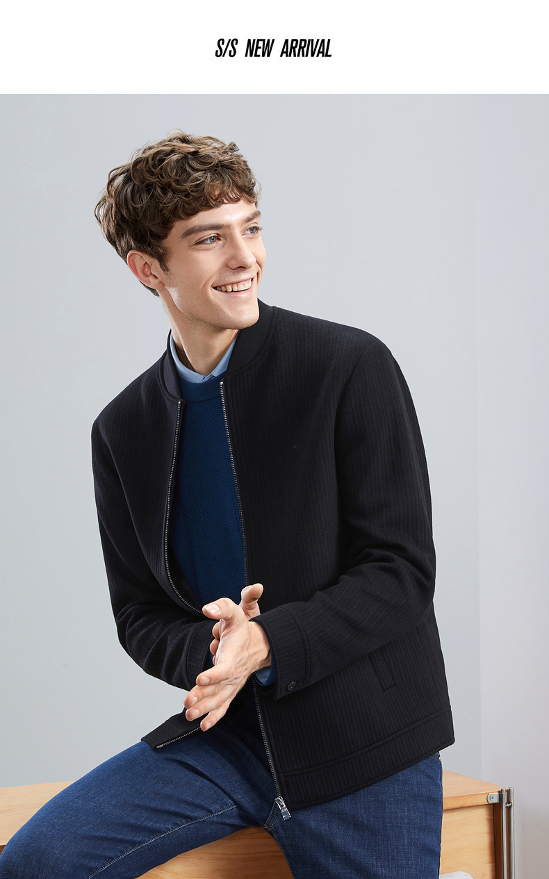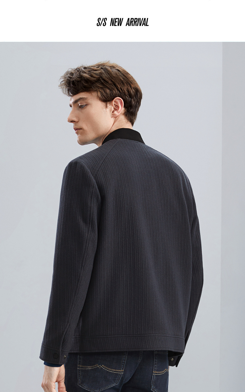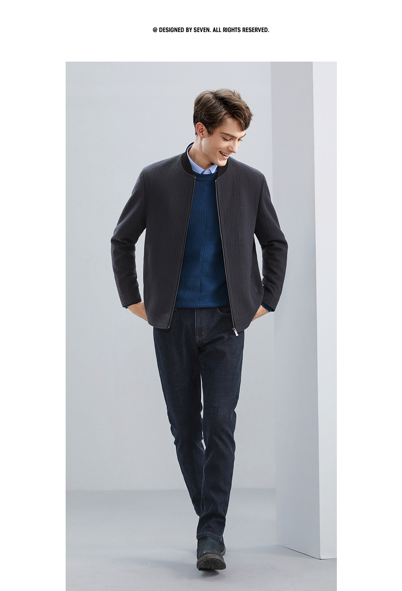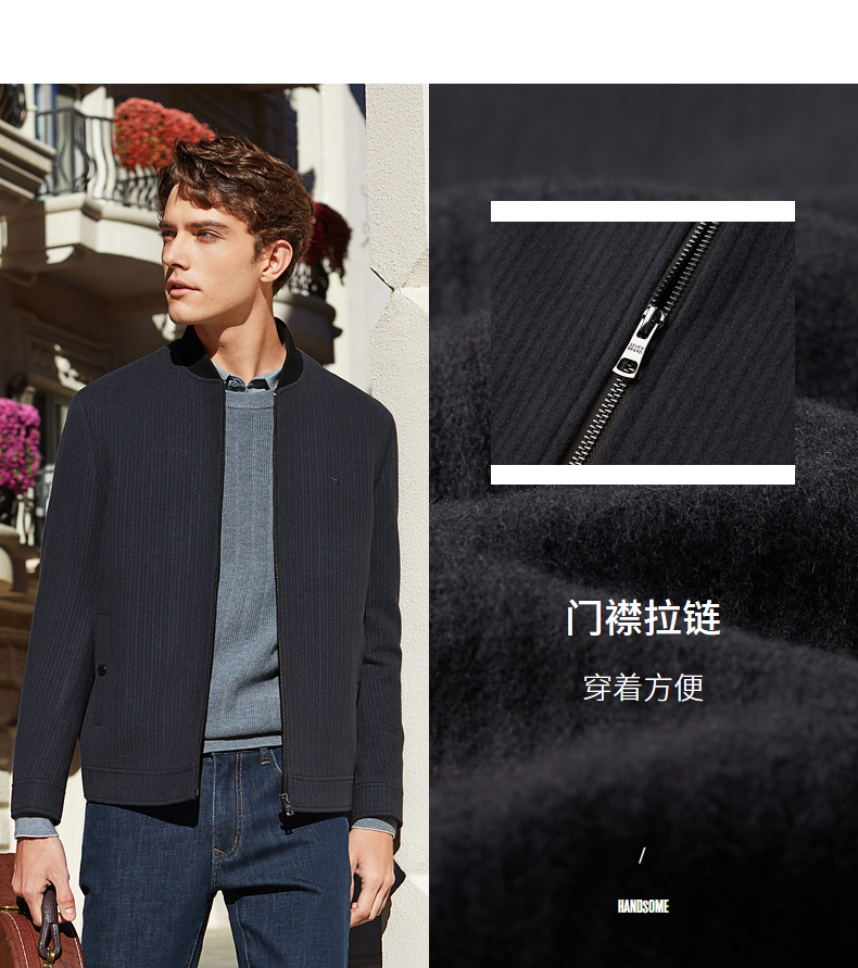 【条纹肌理】柒牌棒球领夹克男冬季厚款时尚休闲保暖毛呢外套 125D70150