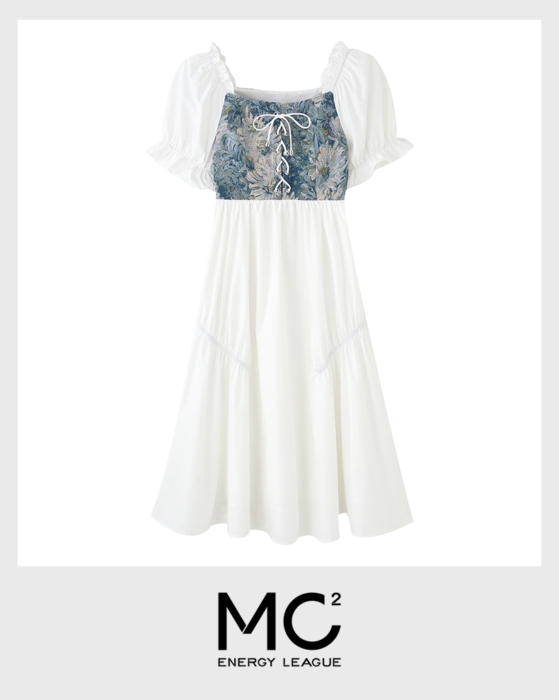 mc2法式方领收腰显瘦连衣裙女2024夏季新款泡泡袖盘扣设计感黑色
