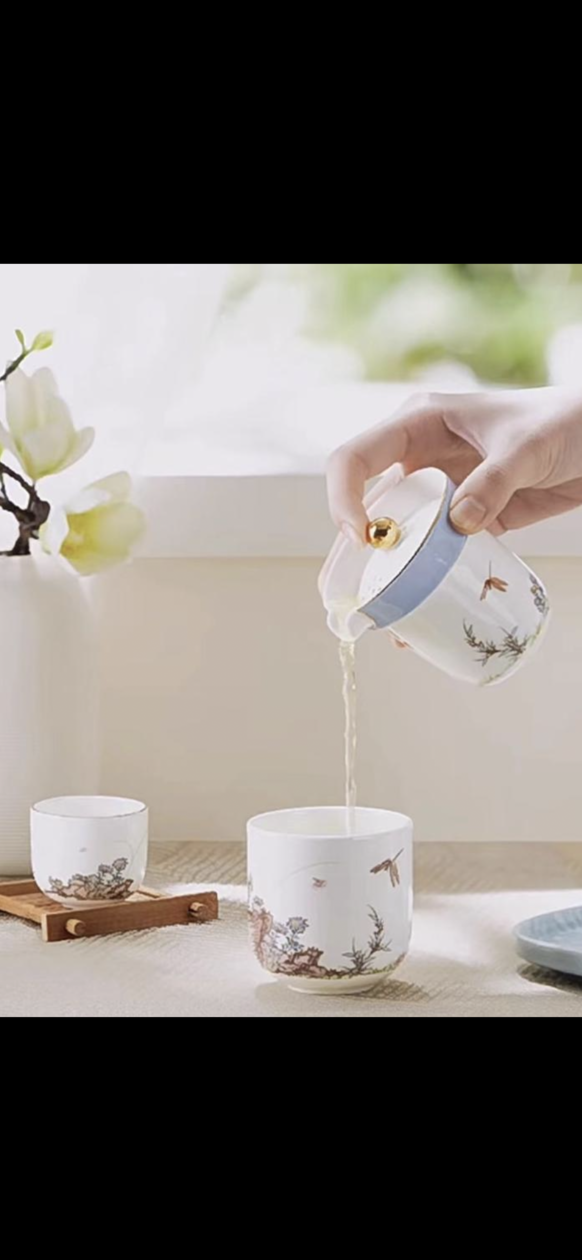 【玛戈隆特厅】B7F 丨 玛戈隆特4头远山飞花一壶两杯茶杯便携式泡茶骨瓷旅行茶具套装礼盒装