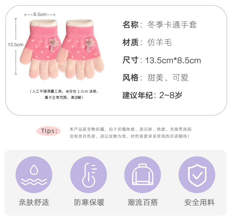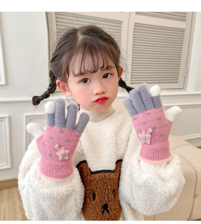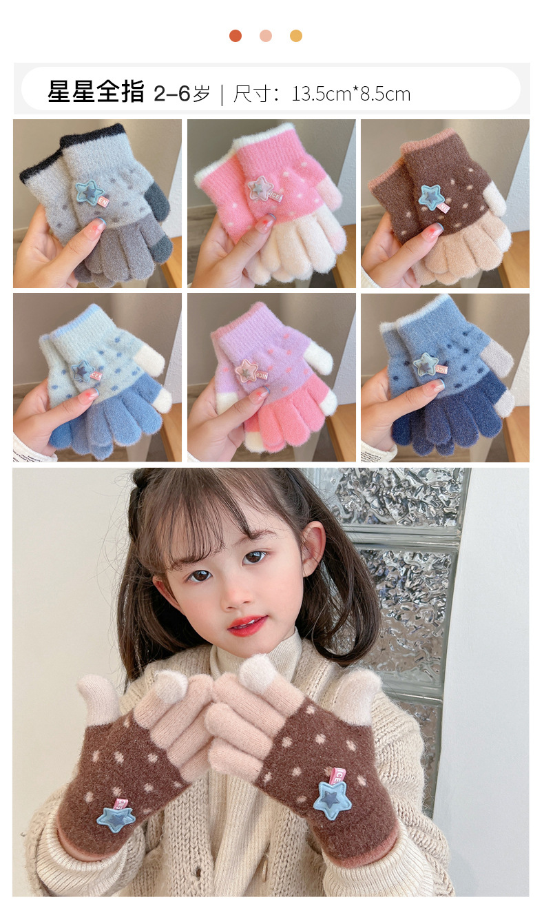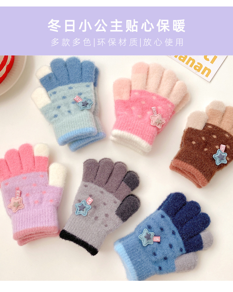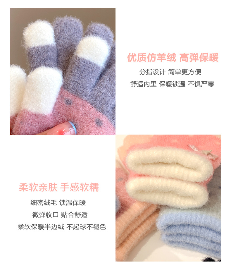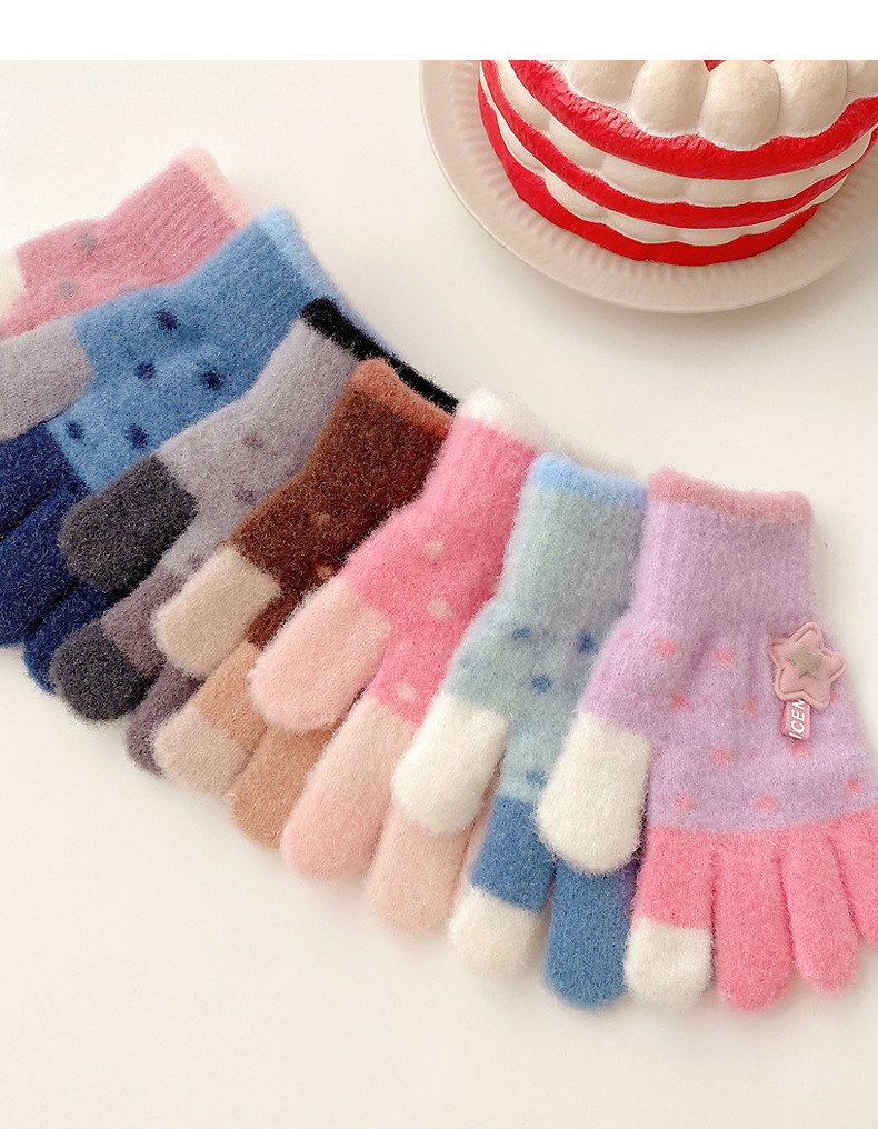 【优质仿羊绒高弹保暖❗️柔软亲肤手感软糯】0-12岁儿童五指保暖手套男童女童全指冬季宝宝毛绒分指女孩五指套。jb