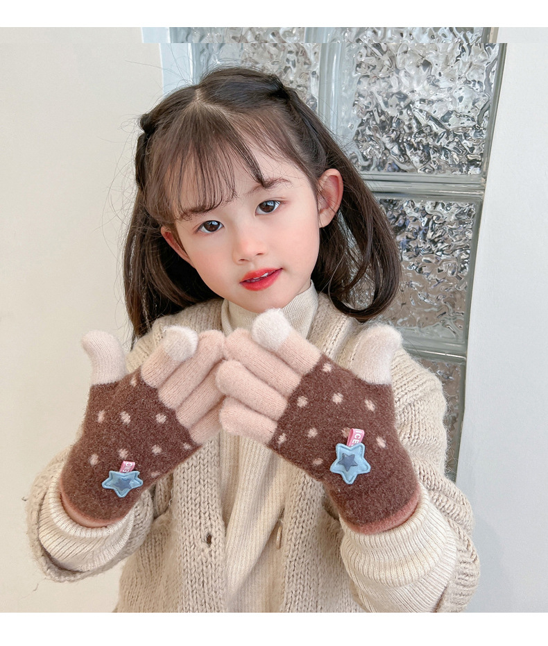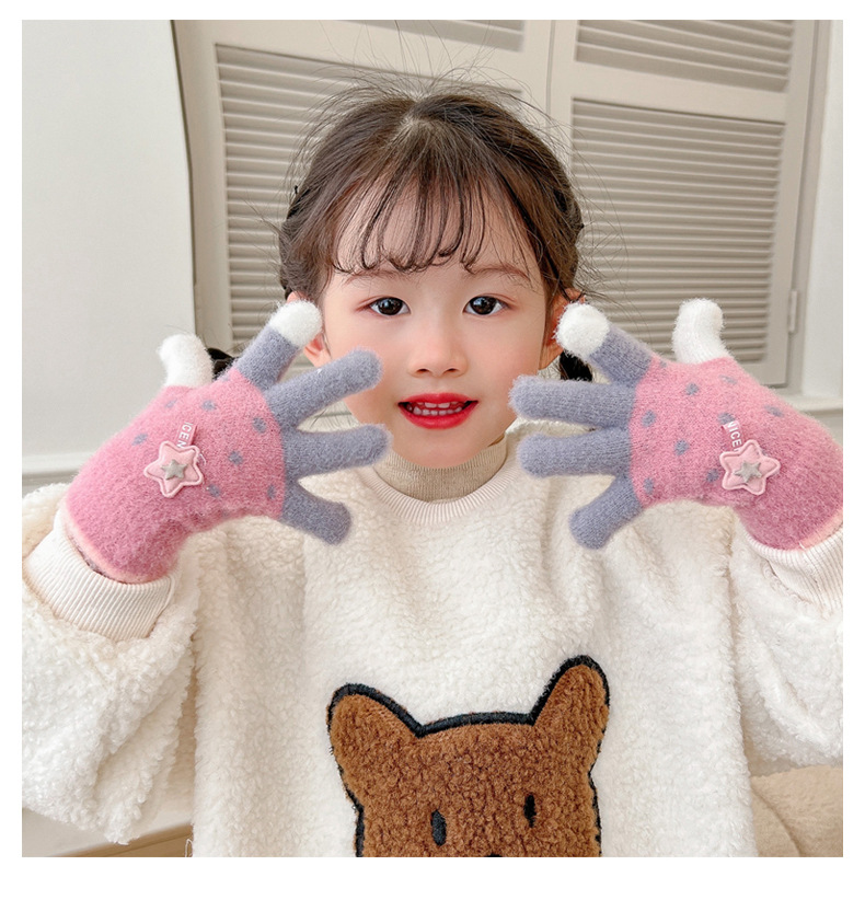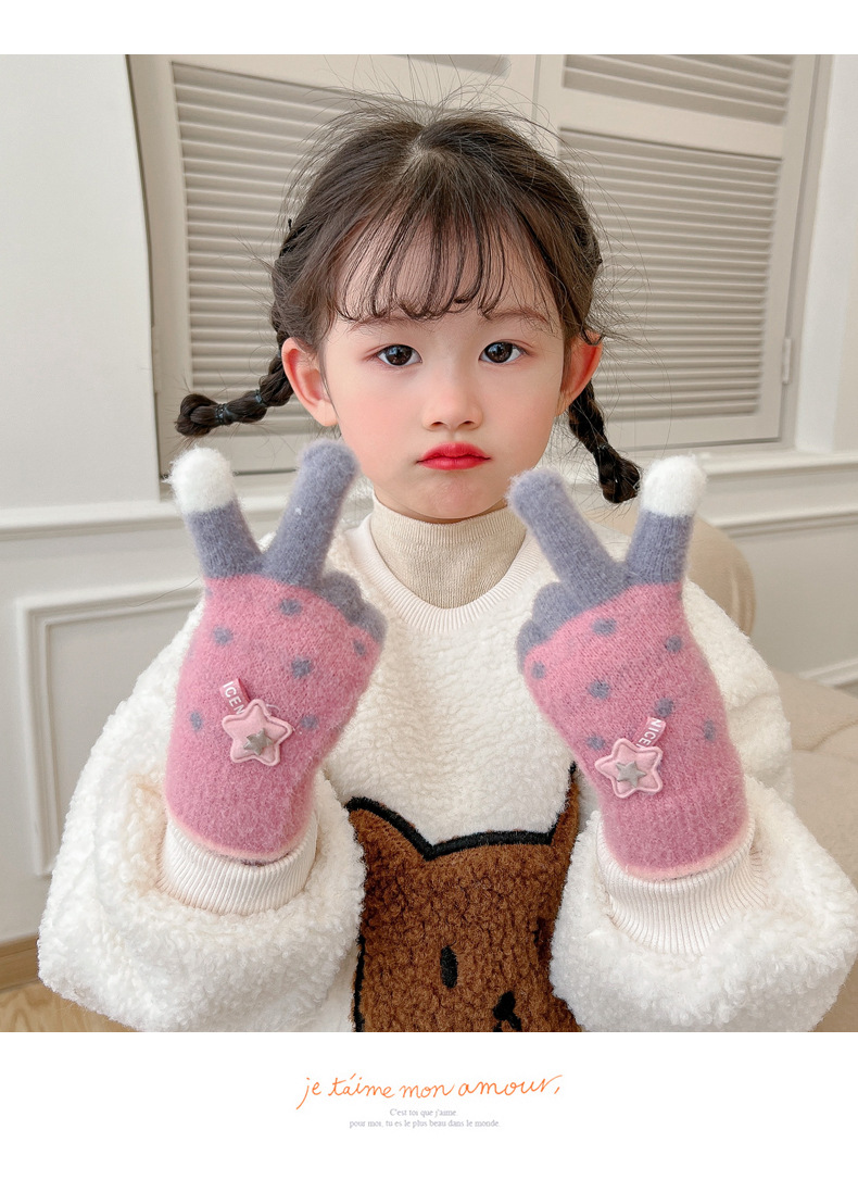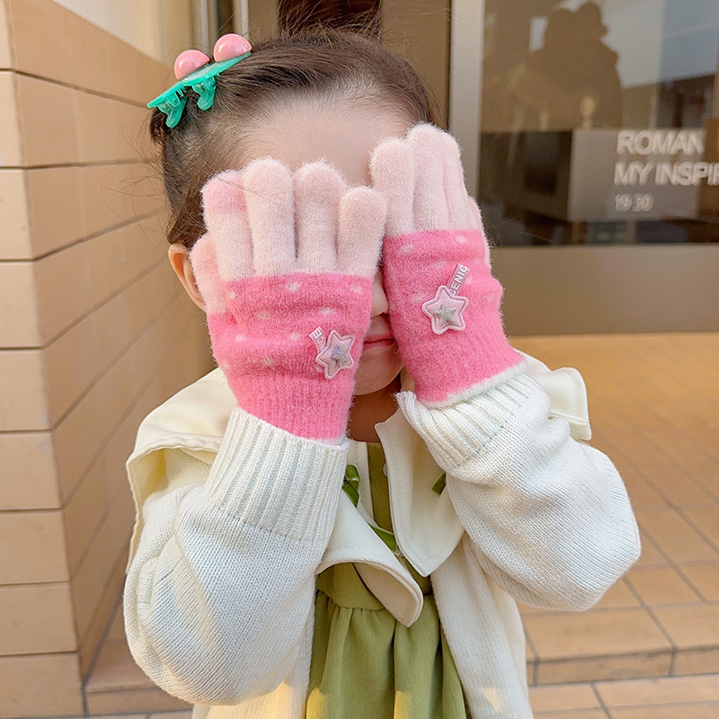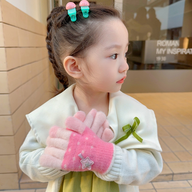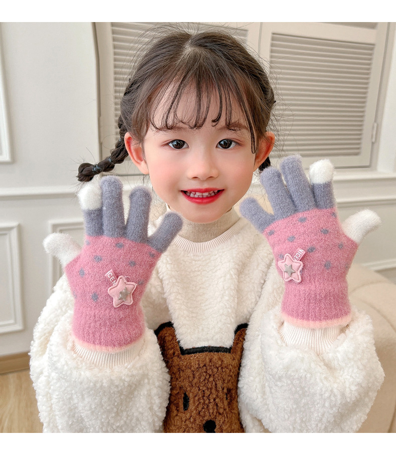 【优质仿羊绒高弹保暖❗️柔软亲肤手感软糯】0-12岁儿童五指保暖手套男童女童全指冬季宝宝毛绒分指女孩五指套。jb