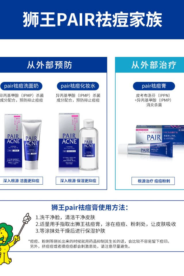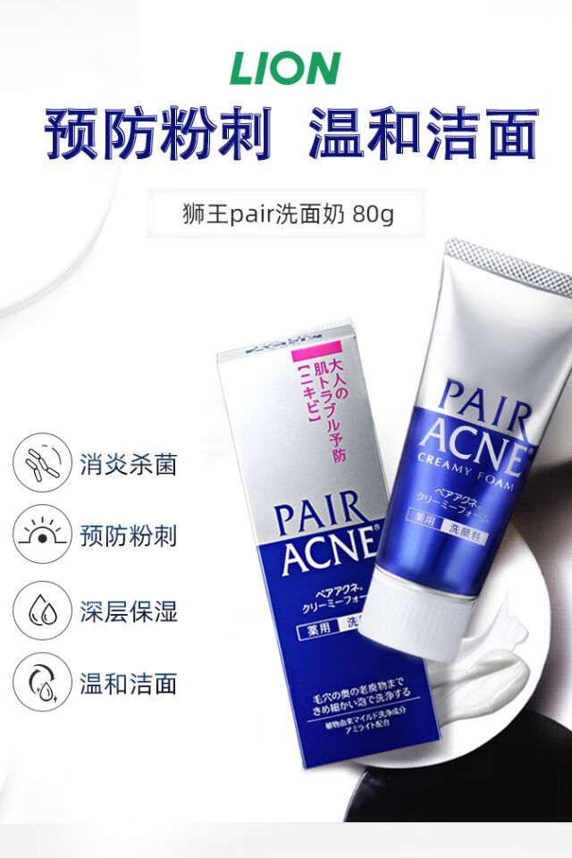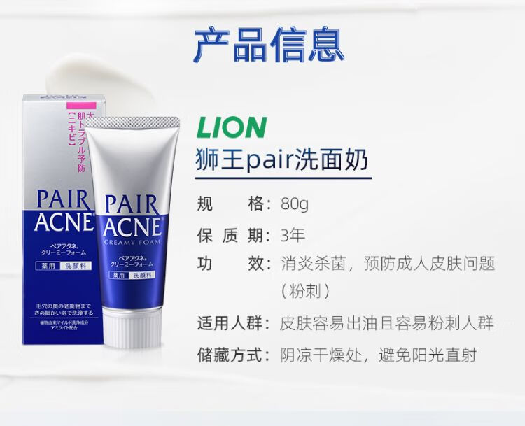 狮王PAIR沛丽尔清痘洁肤洗面奶80g/支