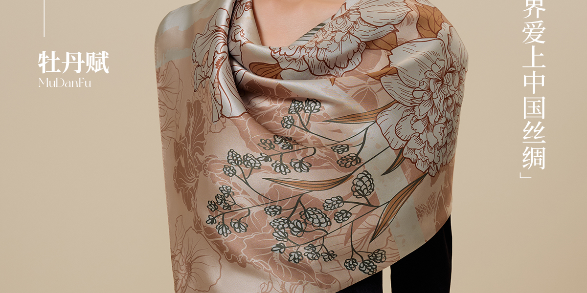 万事利双面印花大方巾-牡丹赋