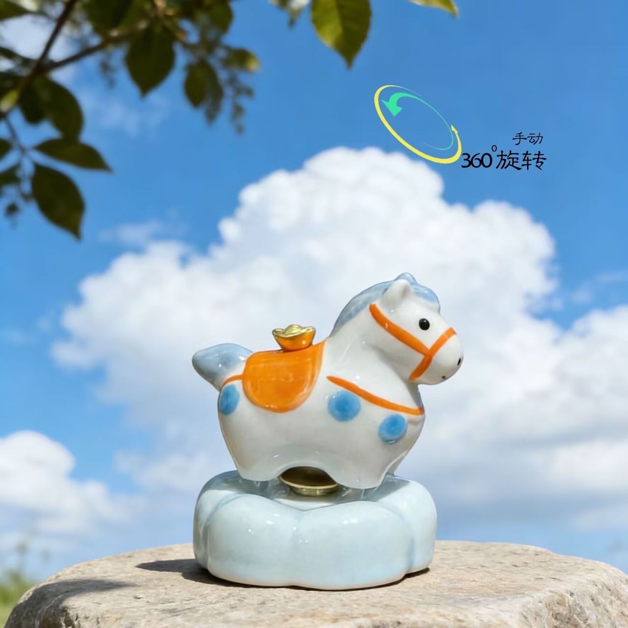 【可爱卡通旋转小马】景德镇手工陶瓷小马转转创意桌面摆件唐马摆件解压治愈礼物热卖。jc