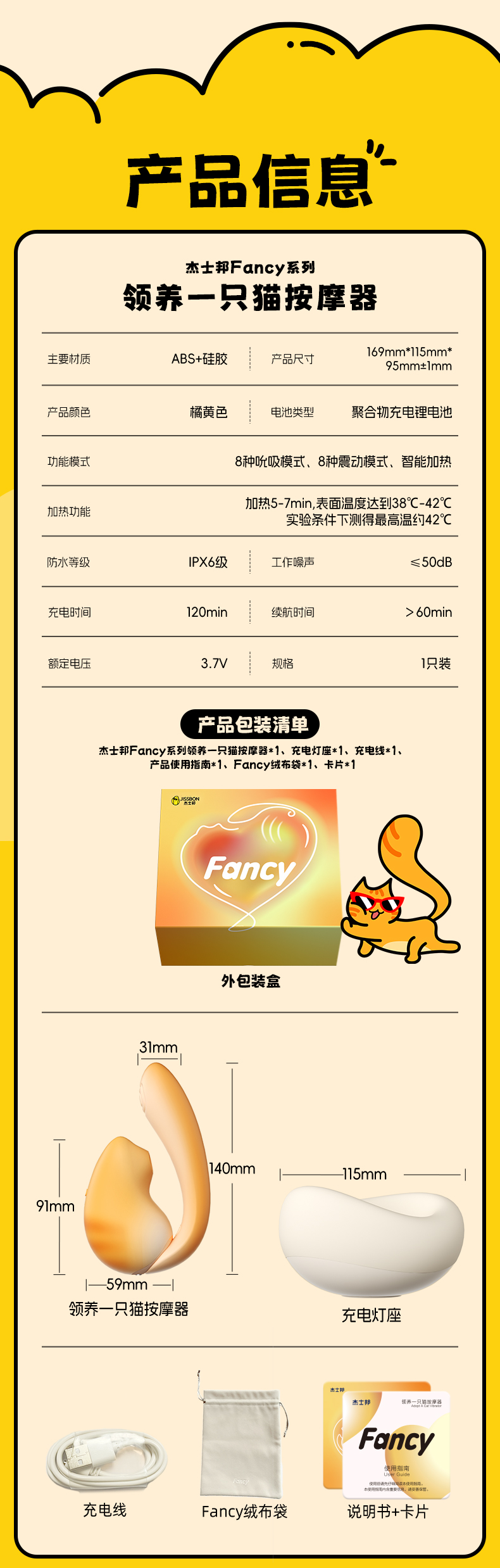 杰士邦Fancy系列领养一只猫按摩器橘猫版(JFLYMJ)