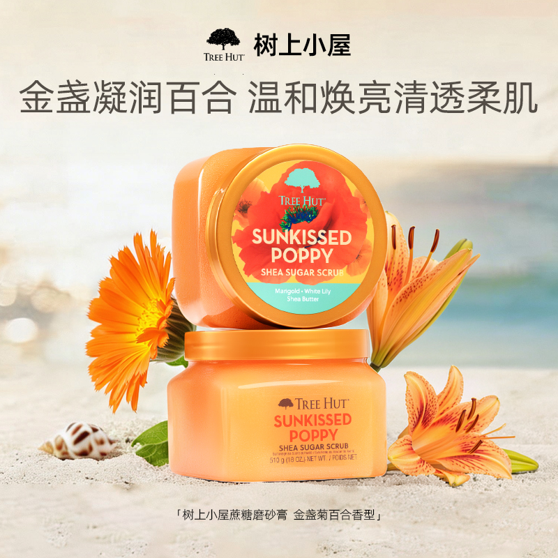 【下单赠掰掰洁面泡泡2包】TreeHut树上小屋磨砂膏花香 去角质不伤肌510g/罐yc0413001