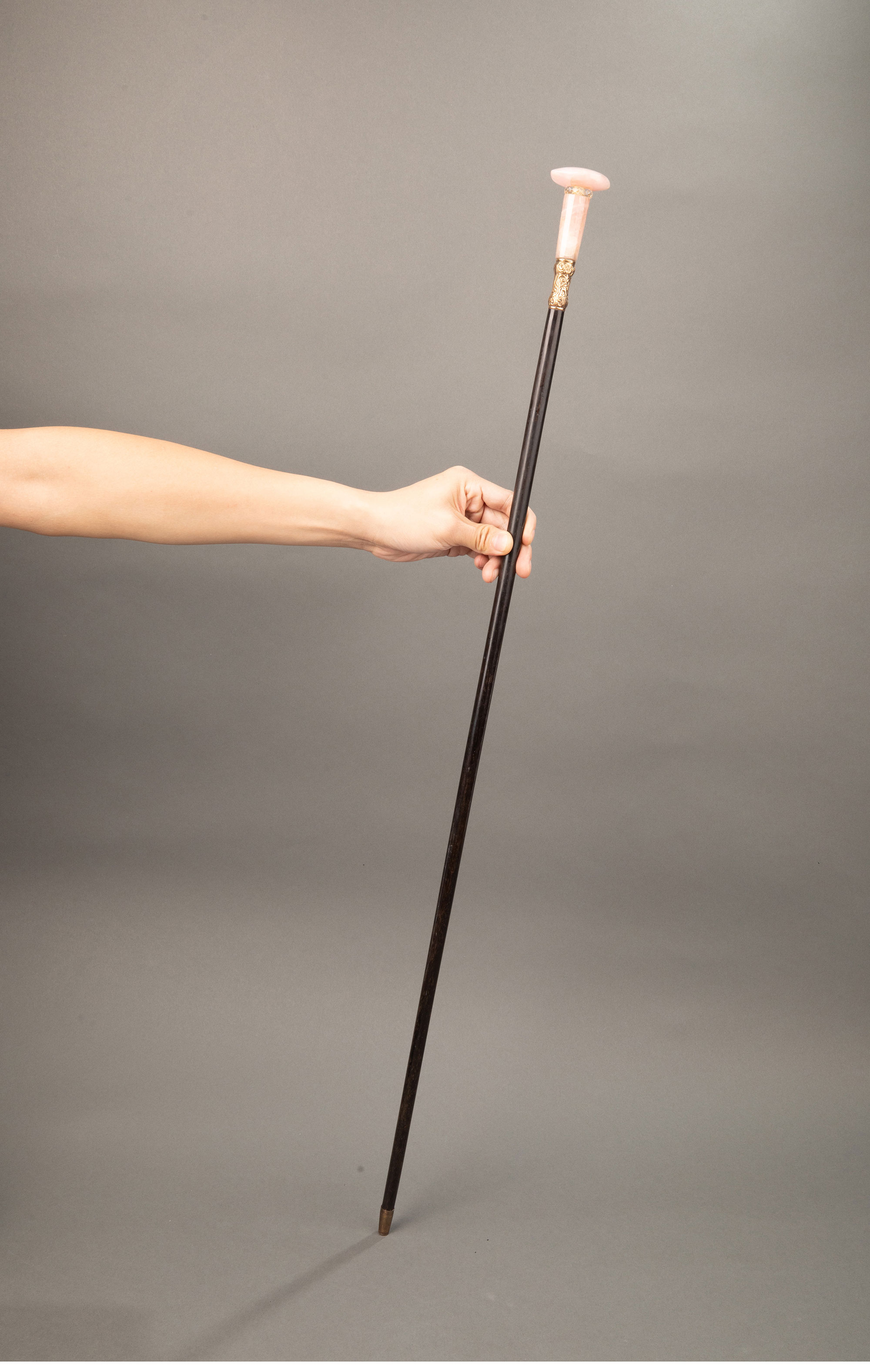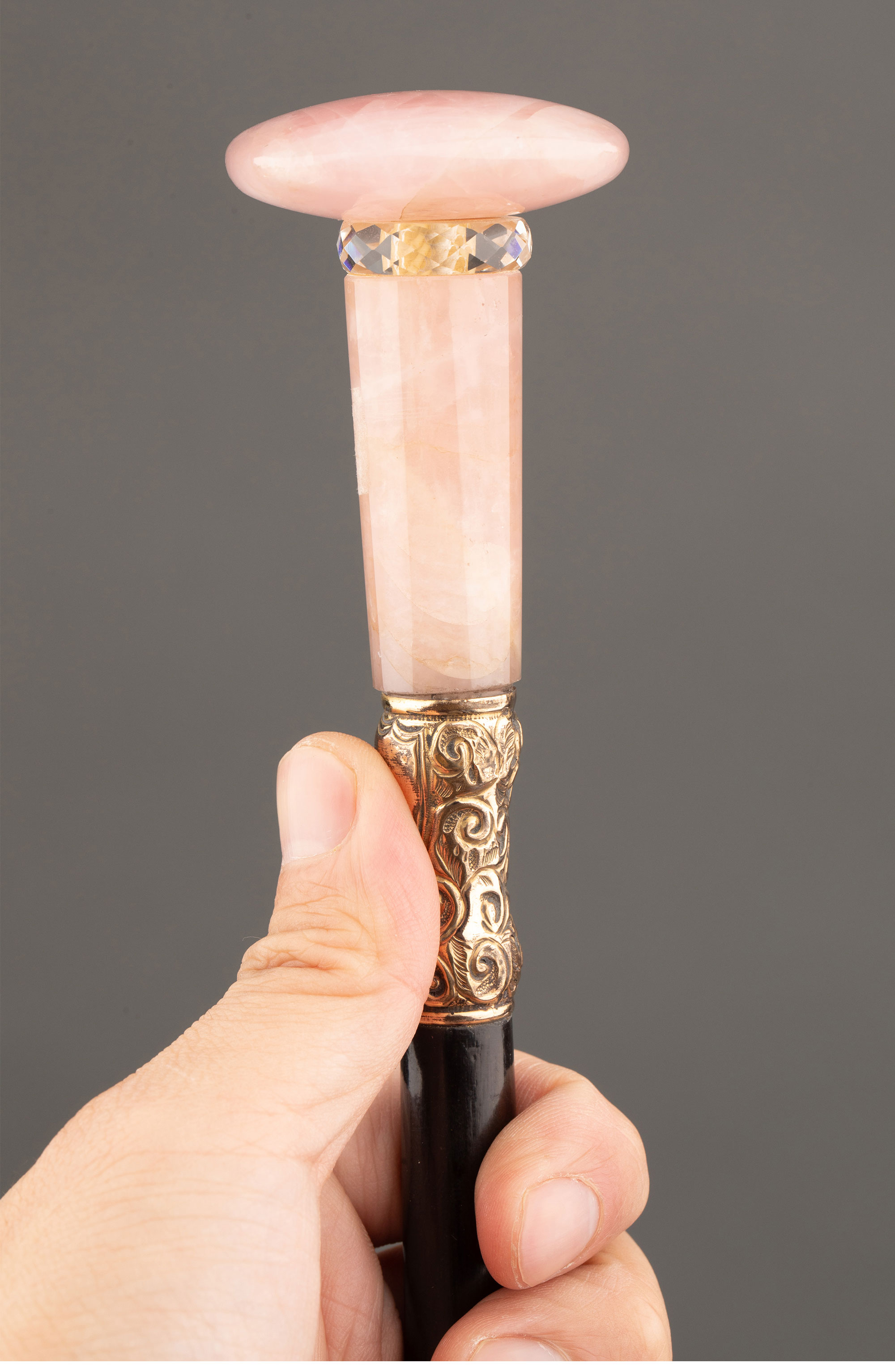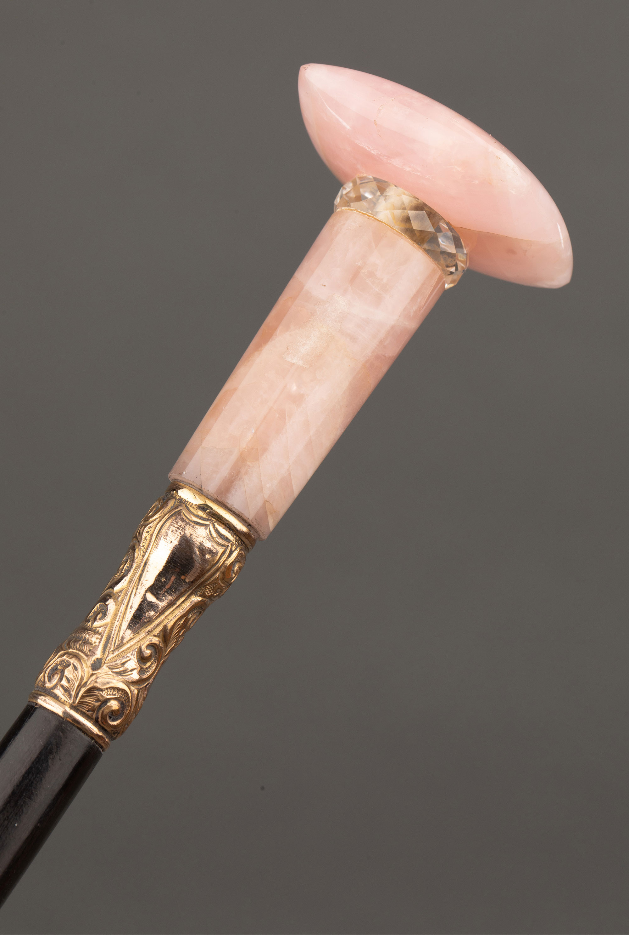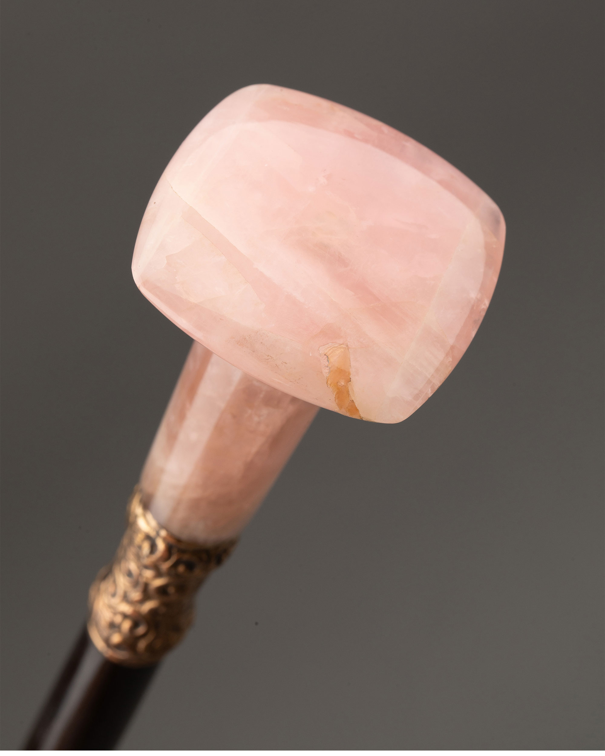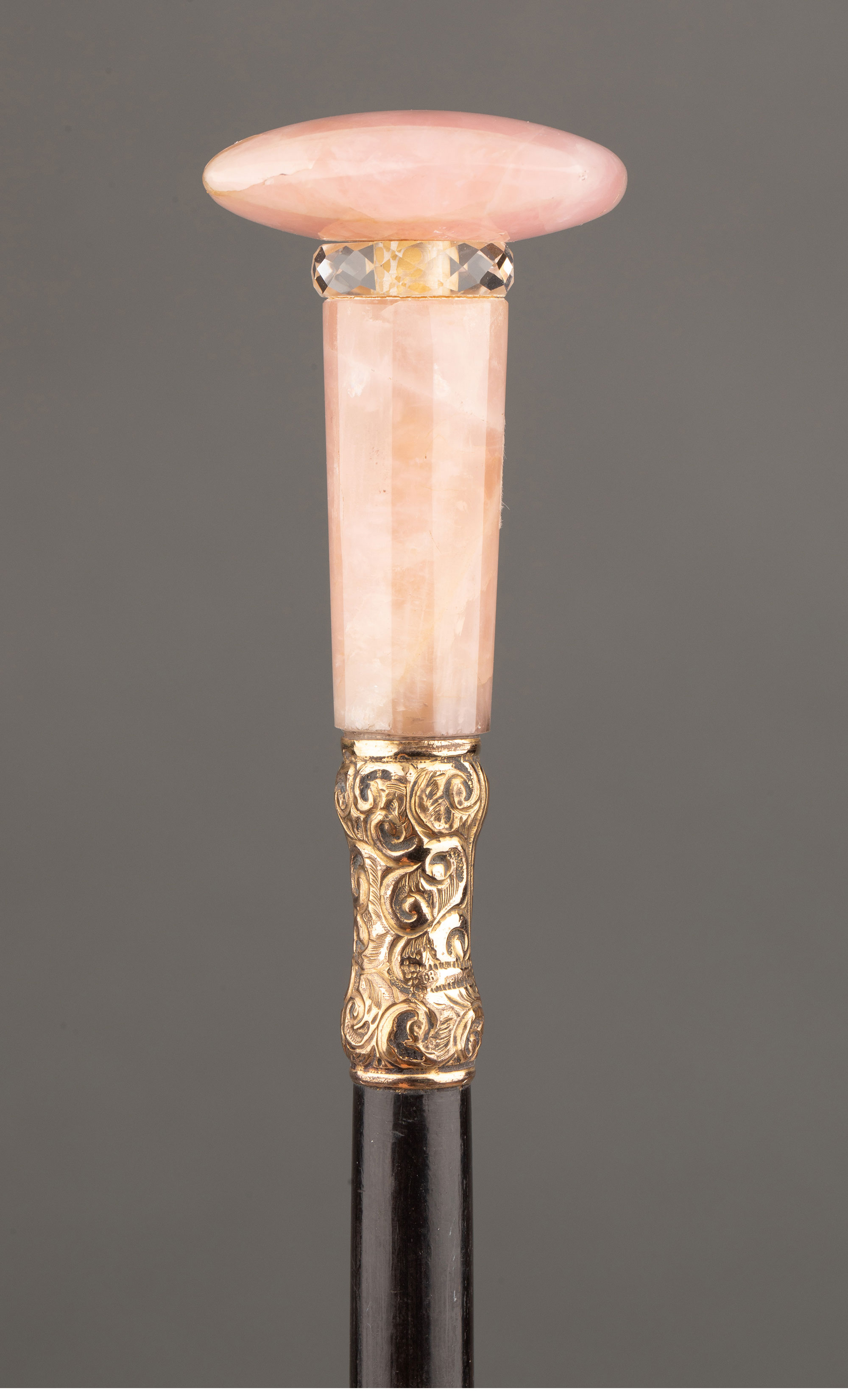1880-1910年代英国维多利亚时代出品铜鎏金镶嵌玫瑰石杖柄硬木绅士手杖