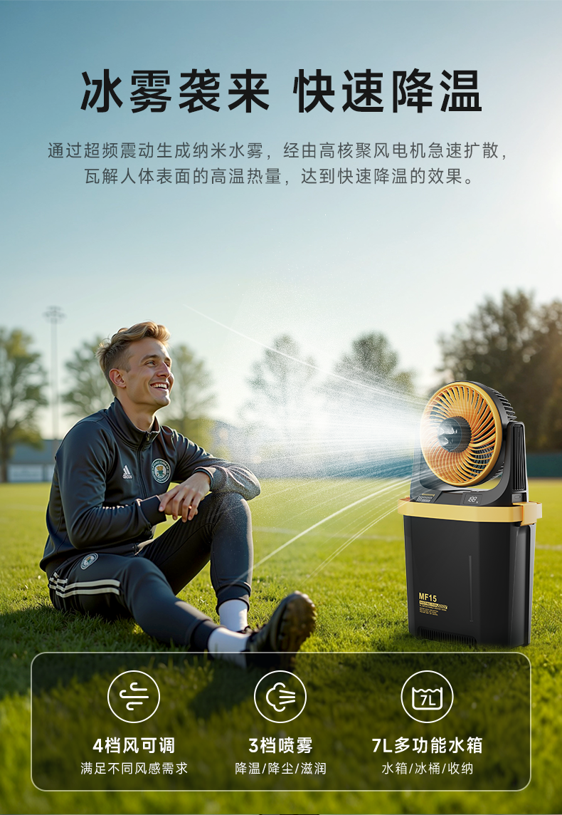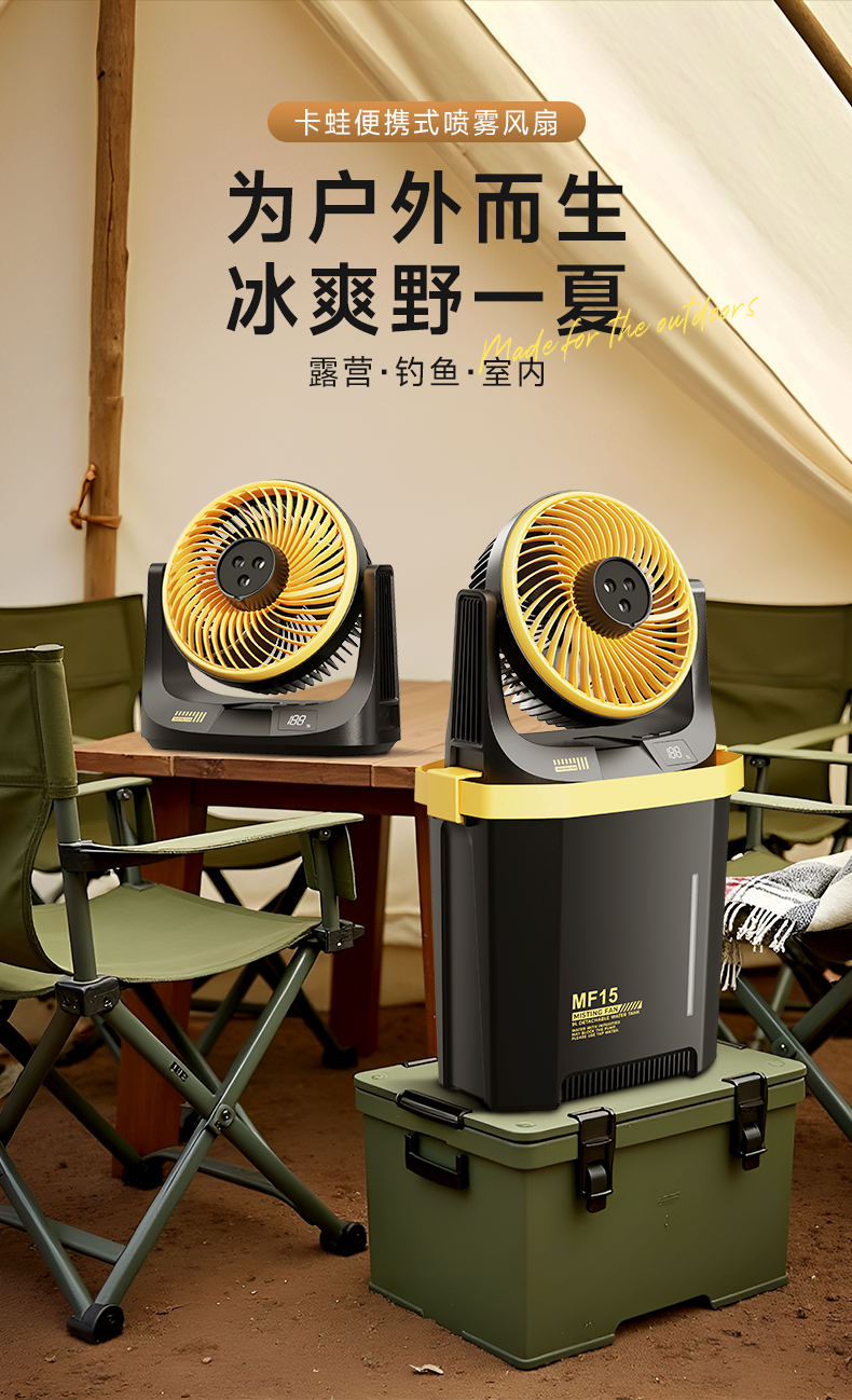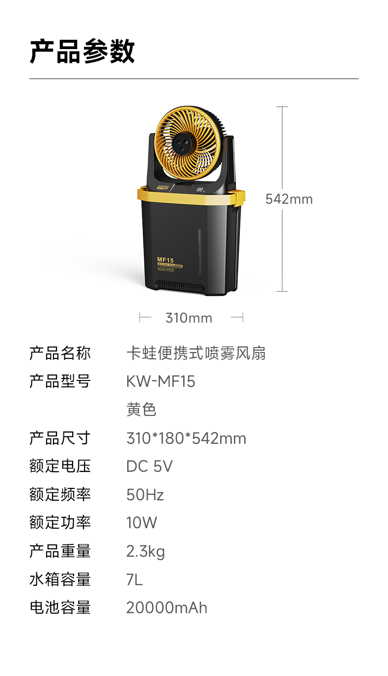 【户外露营 冰爽一夏】卡蛙 水雾风喷雾扇 纳米水雾 快速降温 4档风可调 3档喷雾 底噪运行 只有风声 120H长效续航 7升大容量水箱 露营/钓鱼/室内适用 KW-MF15