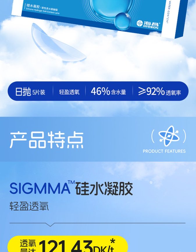 海昌隐形眼镜欧视氧硅胶日抛5片