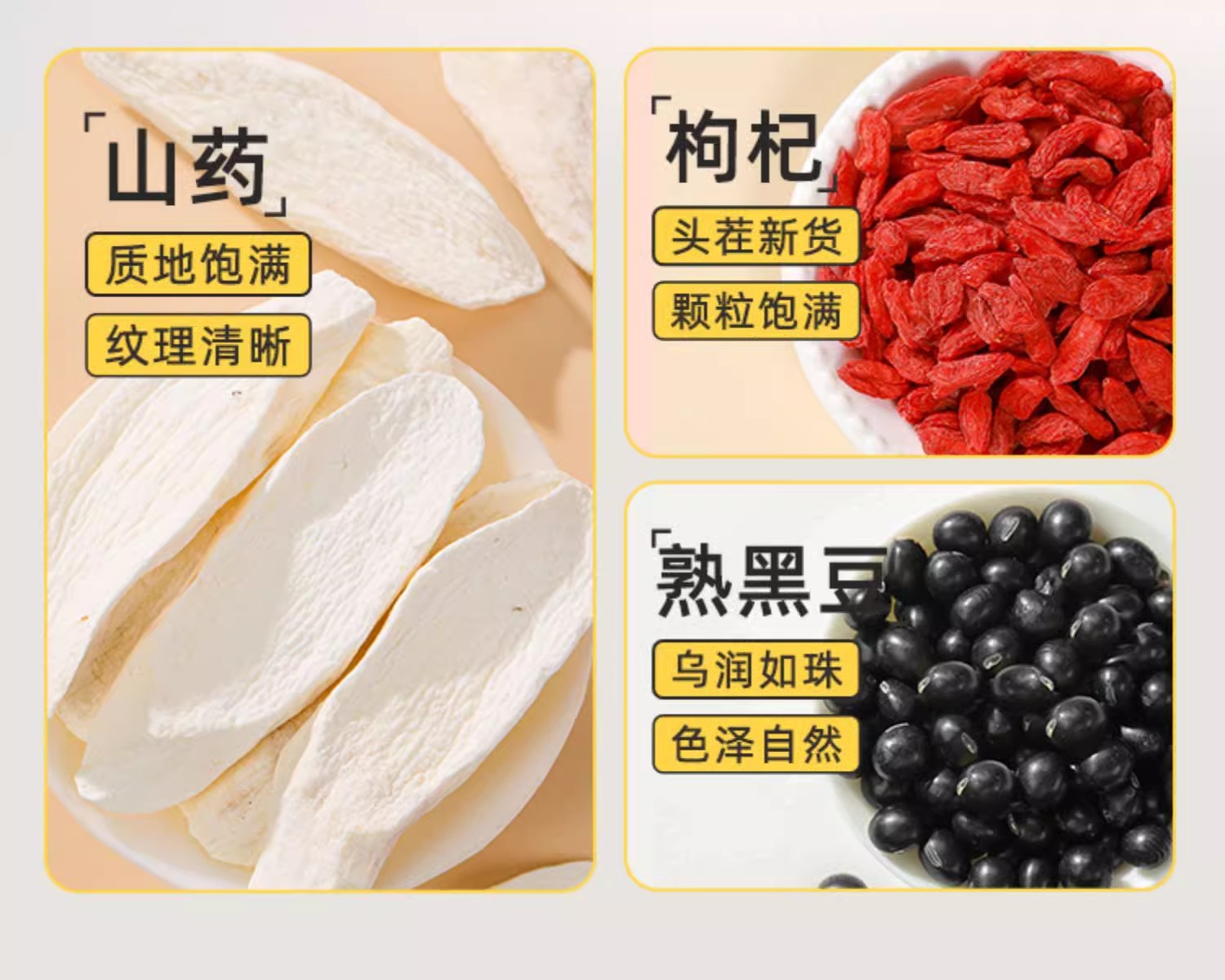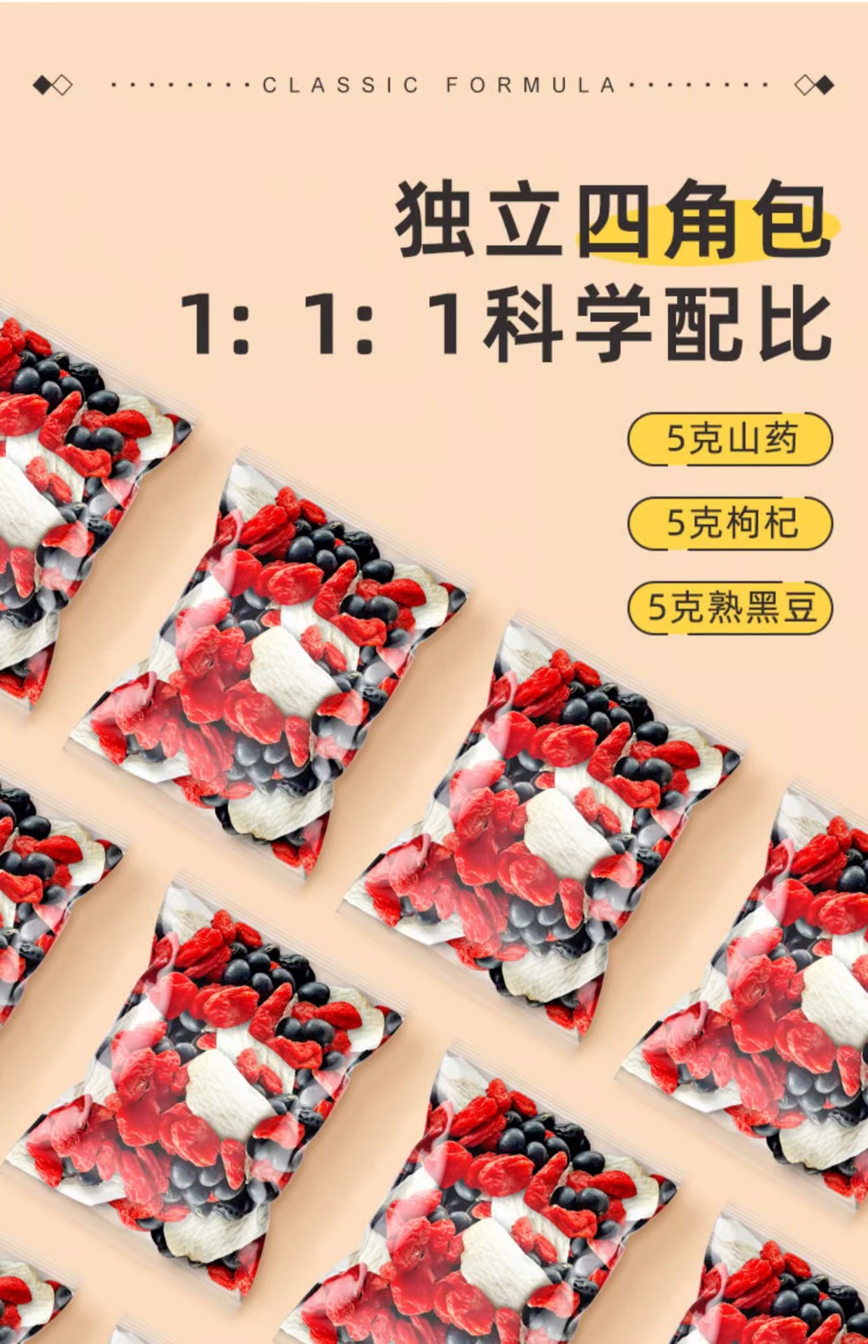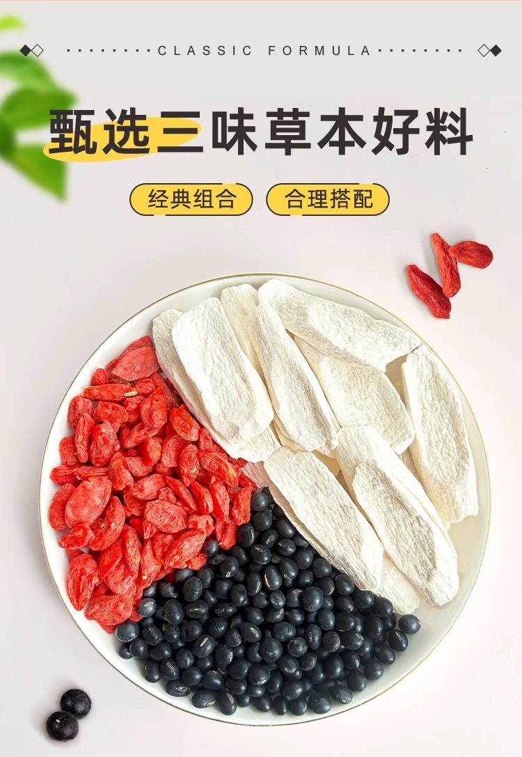 【买2送1❗️乌黑亮泽三色饮】配料表只有枸杞、山药、熟黑豆,不添加其它,健康营养放心喝!三角茶包独立包装0乌发