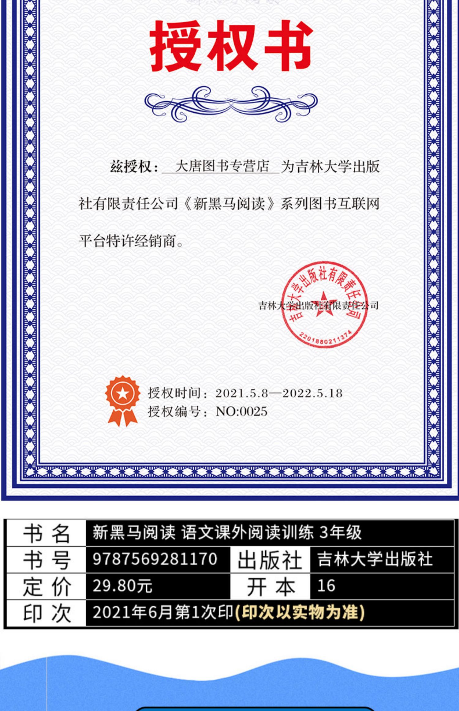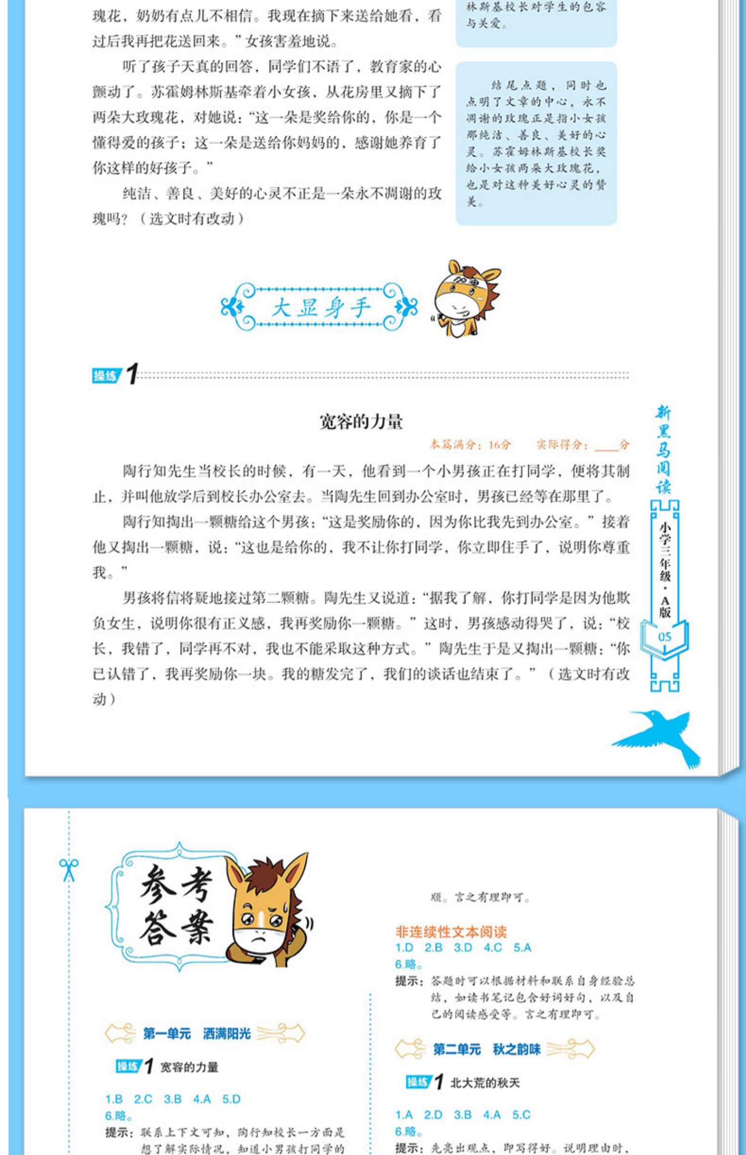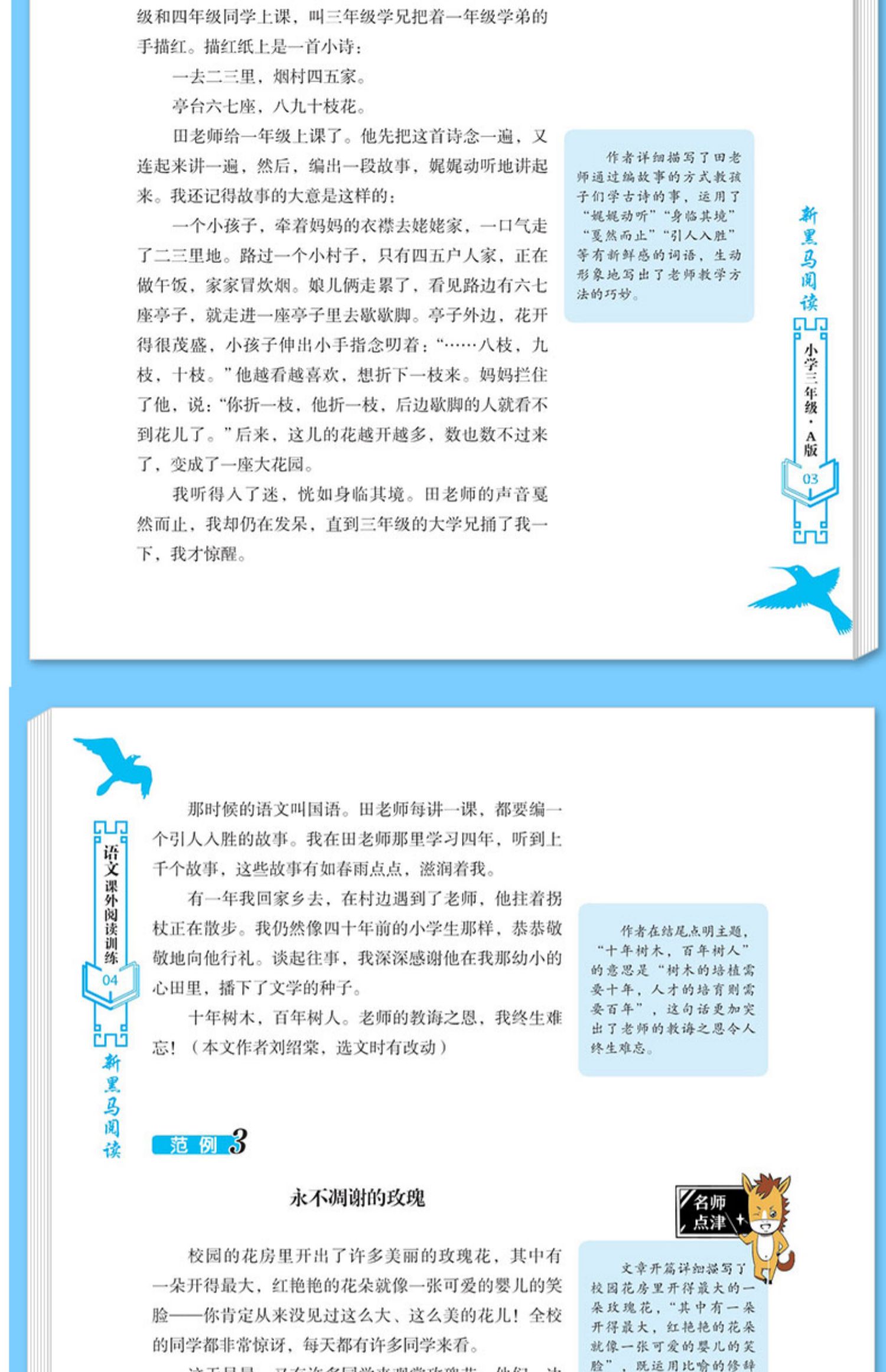 2022年新黑马阅读 语文课外阅读小学生三年级A版上册下册全一册同步专项训练3年级语文阅读理解专项训练题 人教版