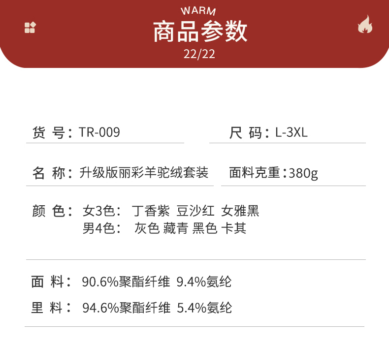 【YW】无忧购巨厚羊驼绒保暖打底套装男女防寒纤维暖绒里层TR-009(截单后7天发货)