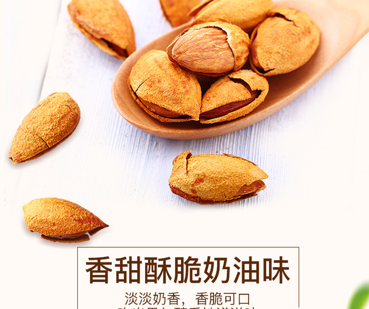 【加州坚壁】手剥奶油巴旦木 特产扁桃仁 每日坚果炒货 干果休闲零食 100g/袋 百草味 奶油味扁核桃仁