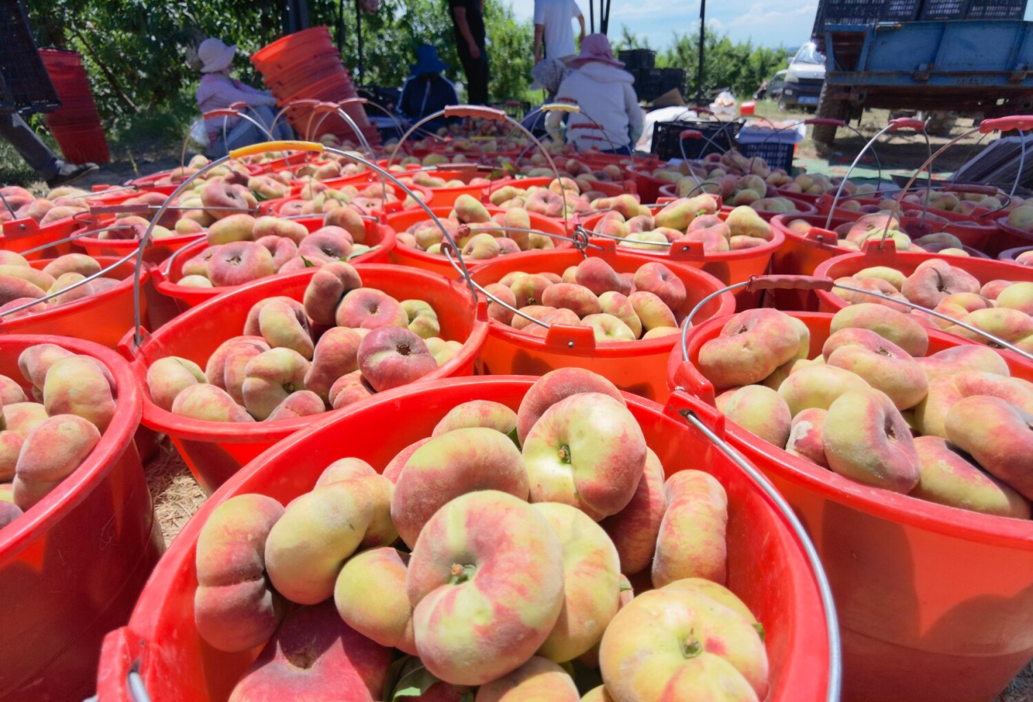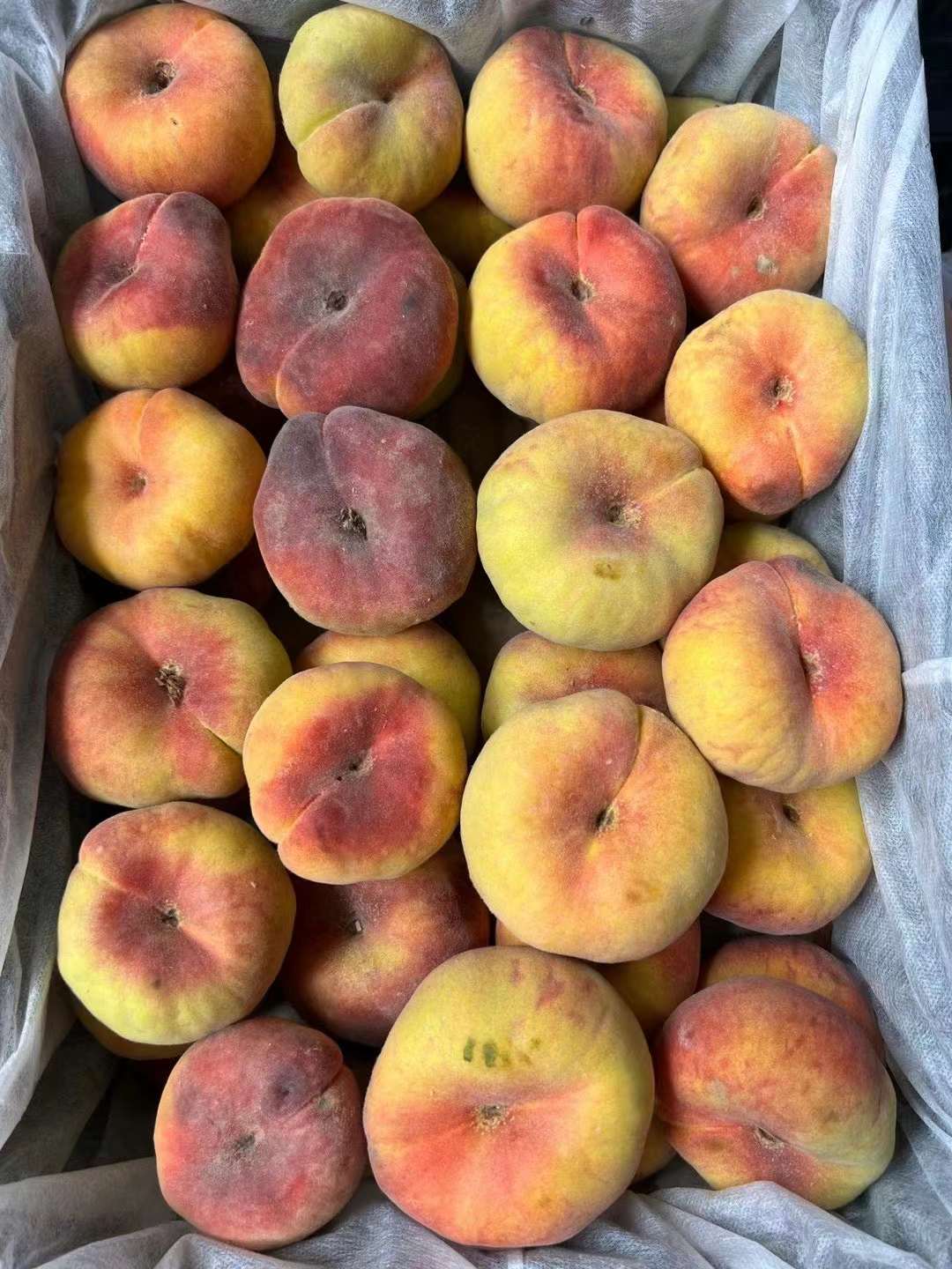【温馨提示】1、新疆有:白蟠、黄蟠、红蟠桃,黄金蟠桃等品种,果肉颜色不同,都是甜美多汁,成熟时间不同,每个品种大概十多天左右;