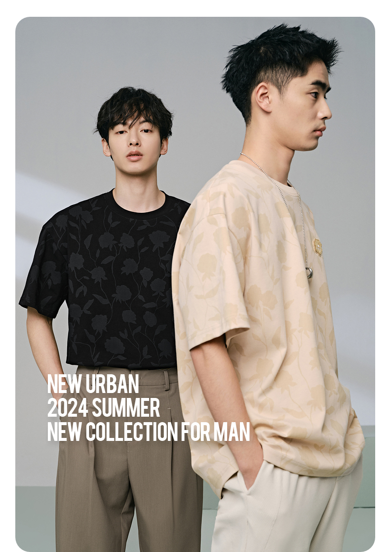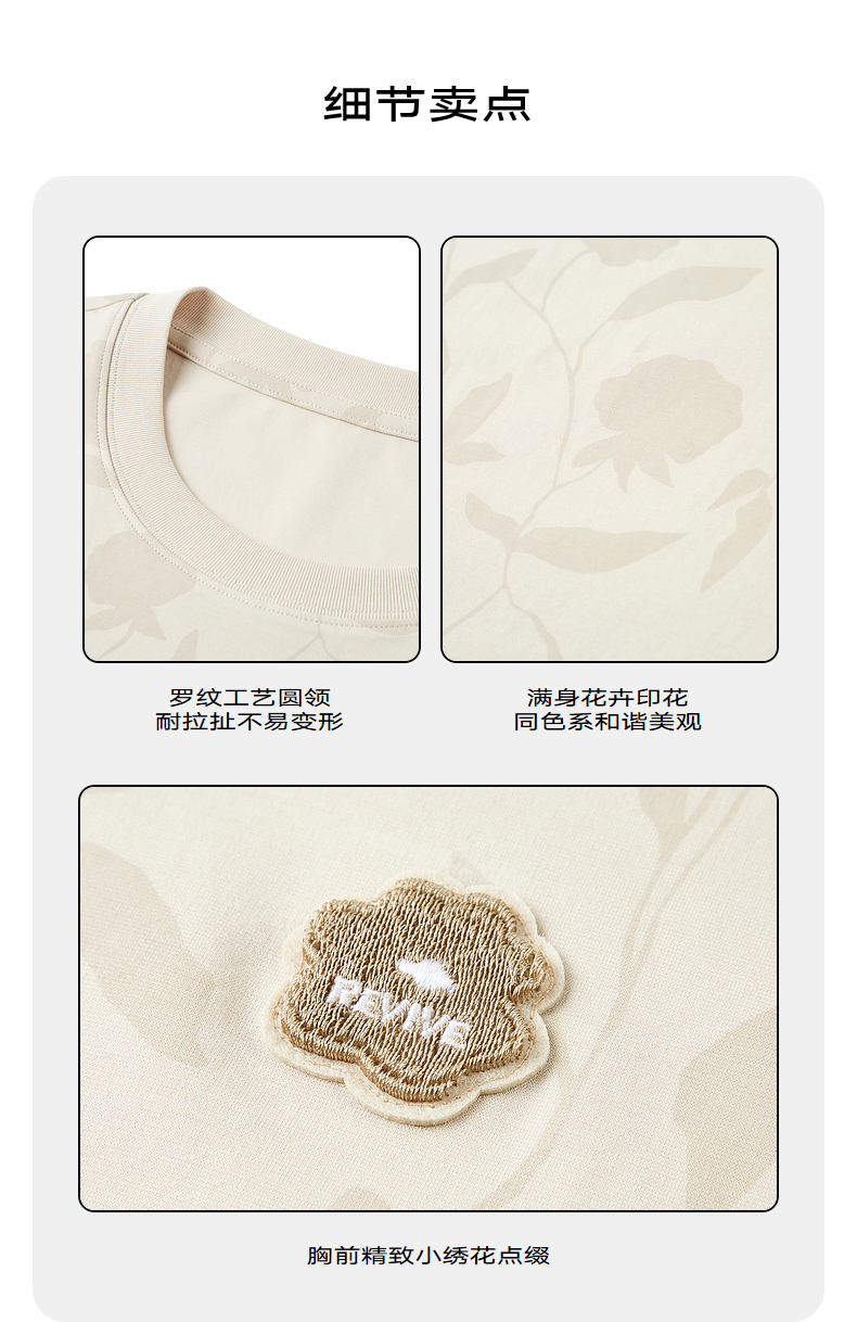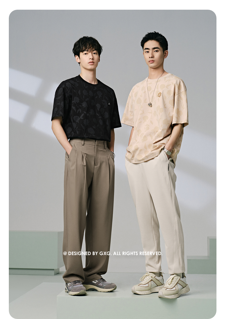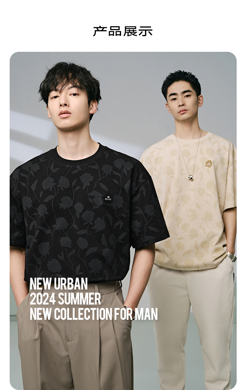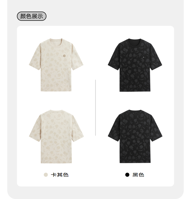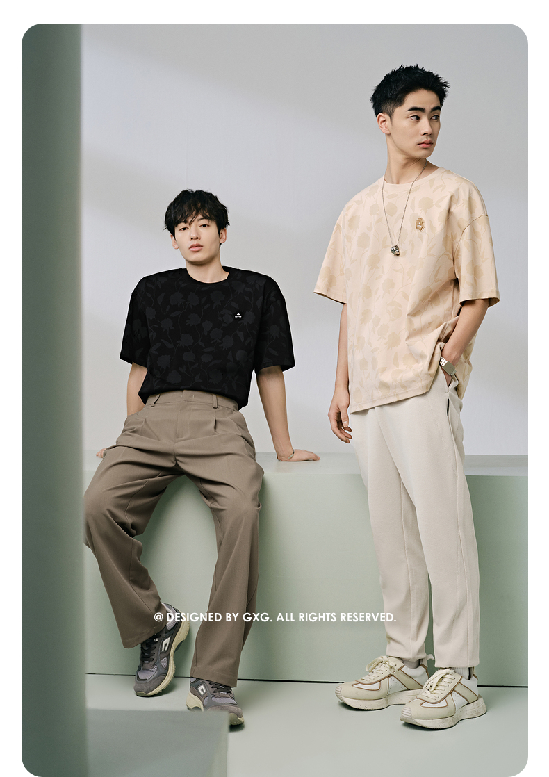 GXG男装 235g重磅满印花卉图案宽松休闲短袖T恤男士 夏季热卖
