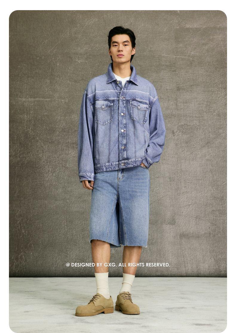 GXG男装 蓝色仿牛仔印花简约时尚翻领夹克25年春热卖G25X211030