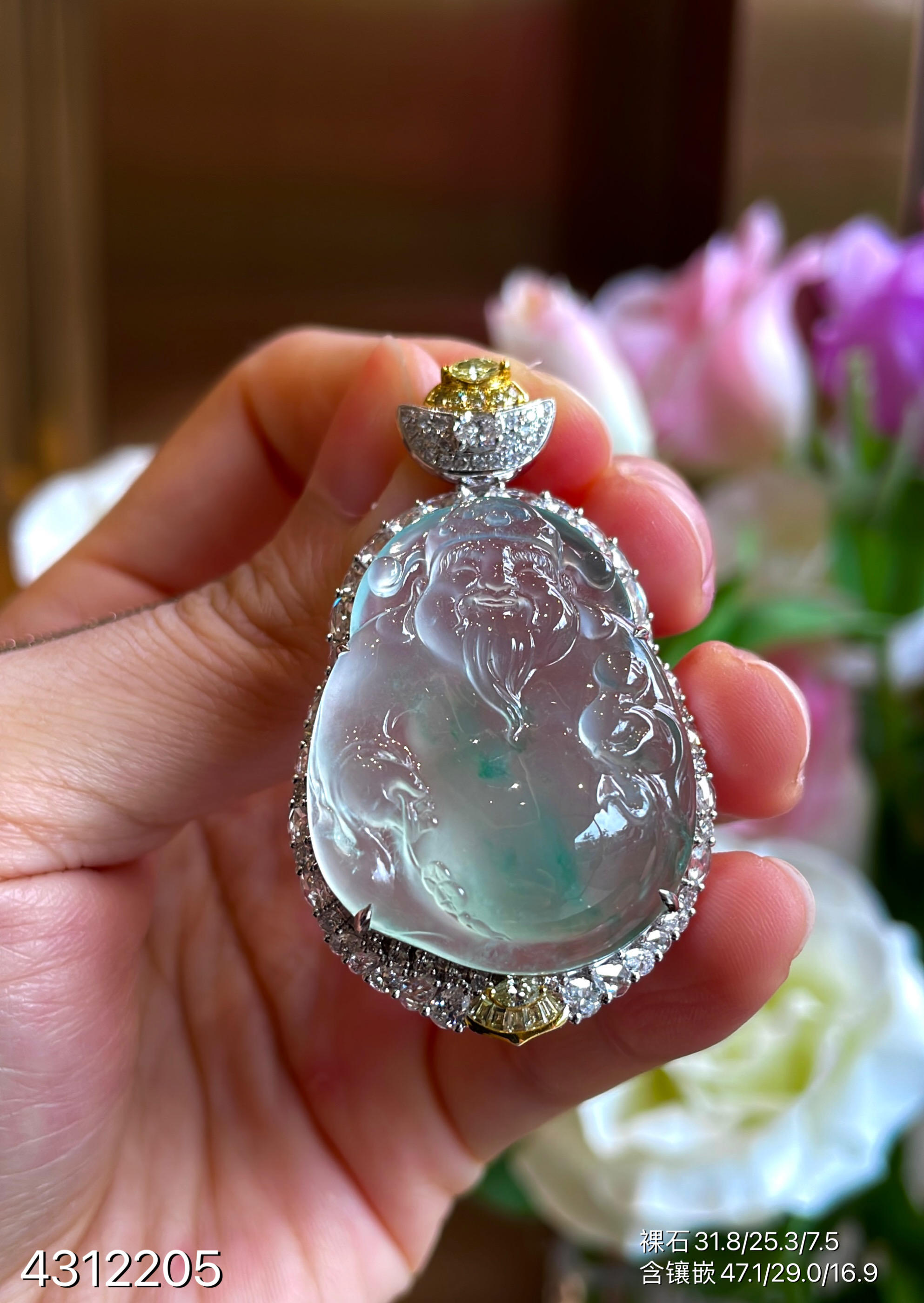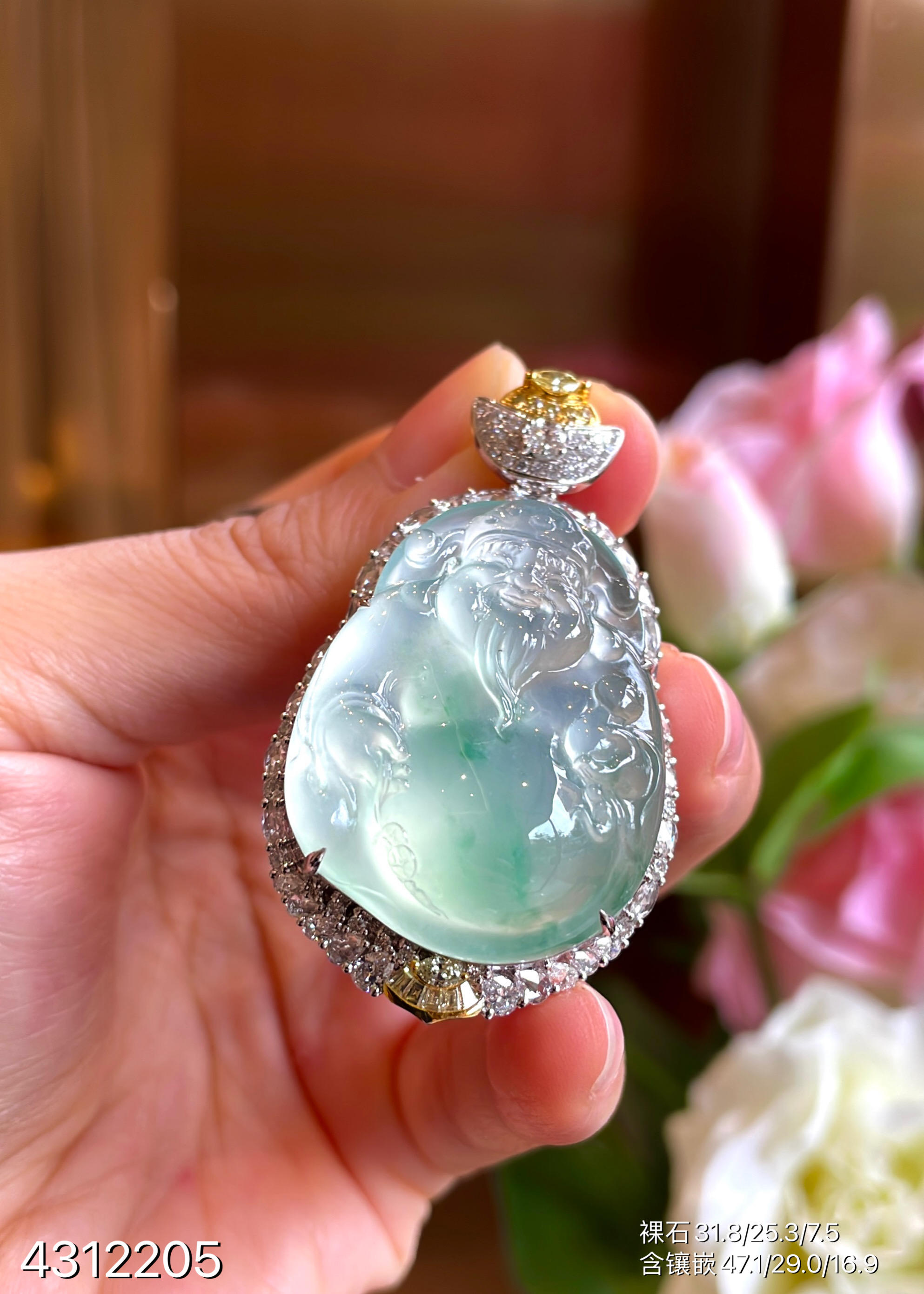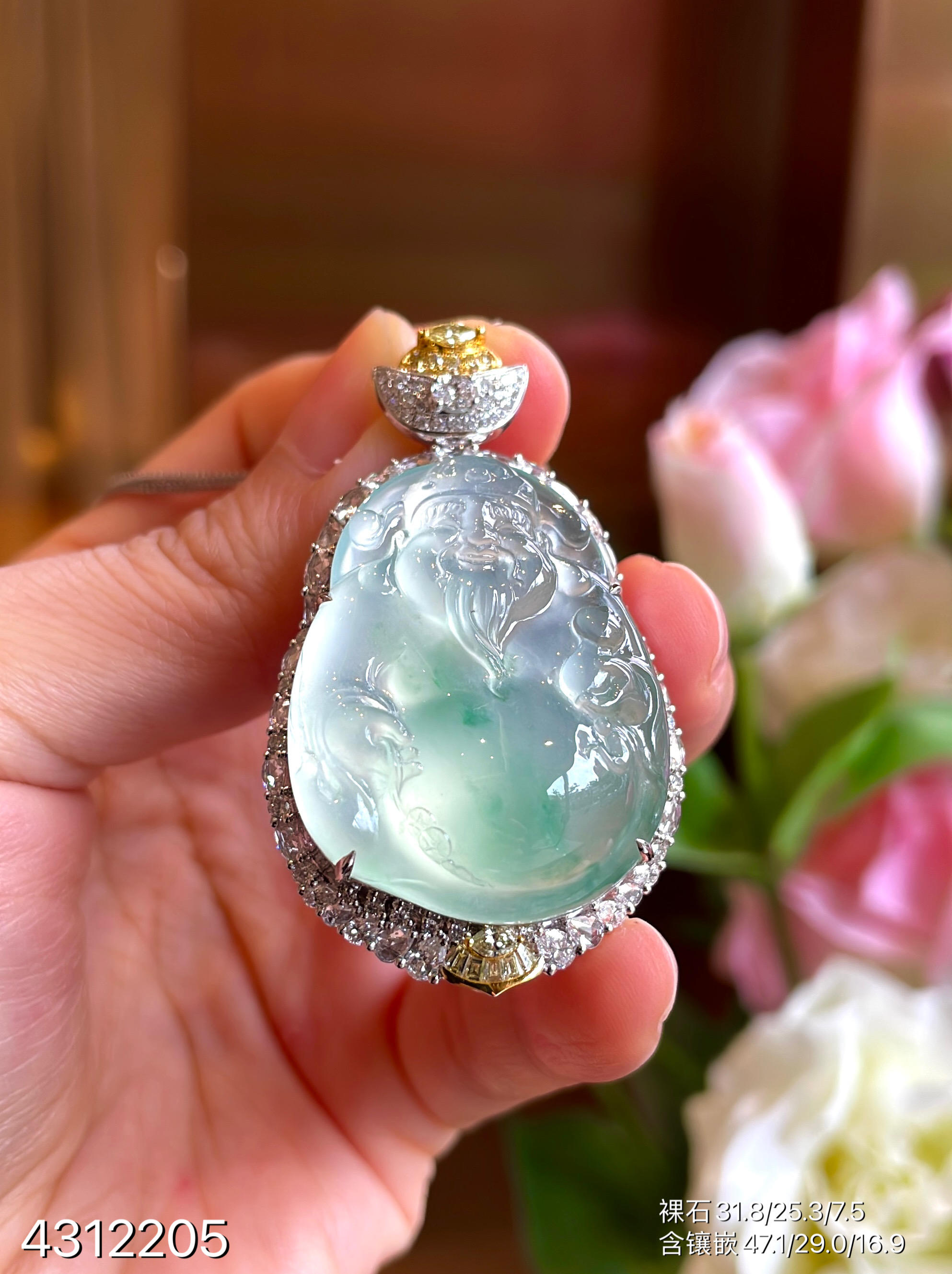 玻璃种木那飘翠财神吊坠【4312205】具体价格微信咨询