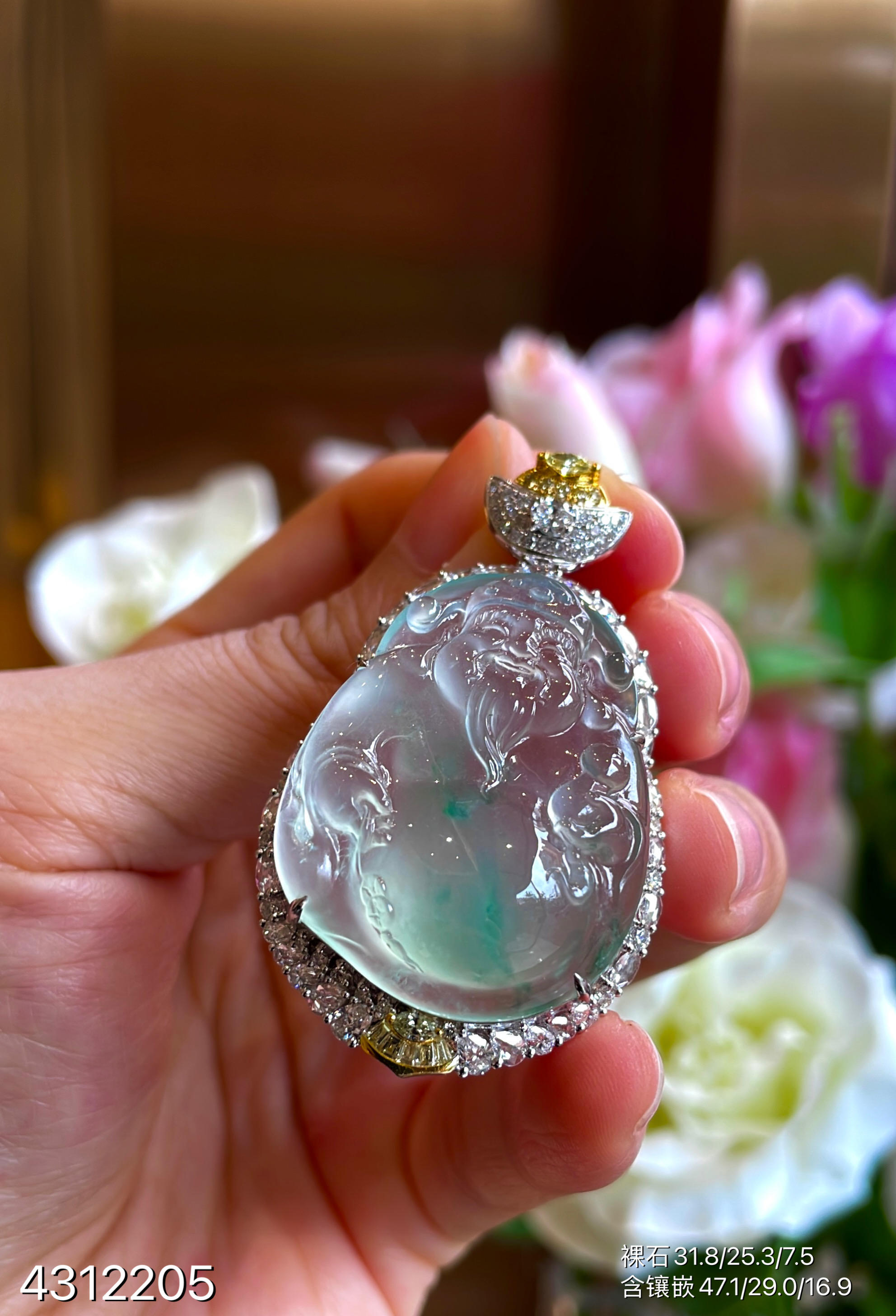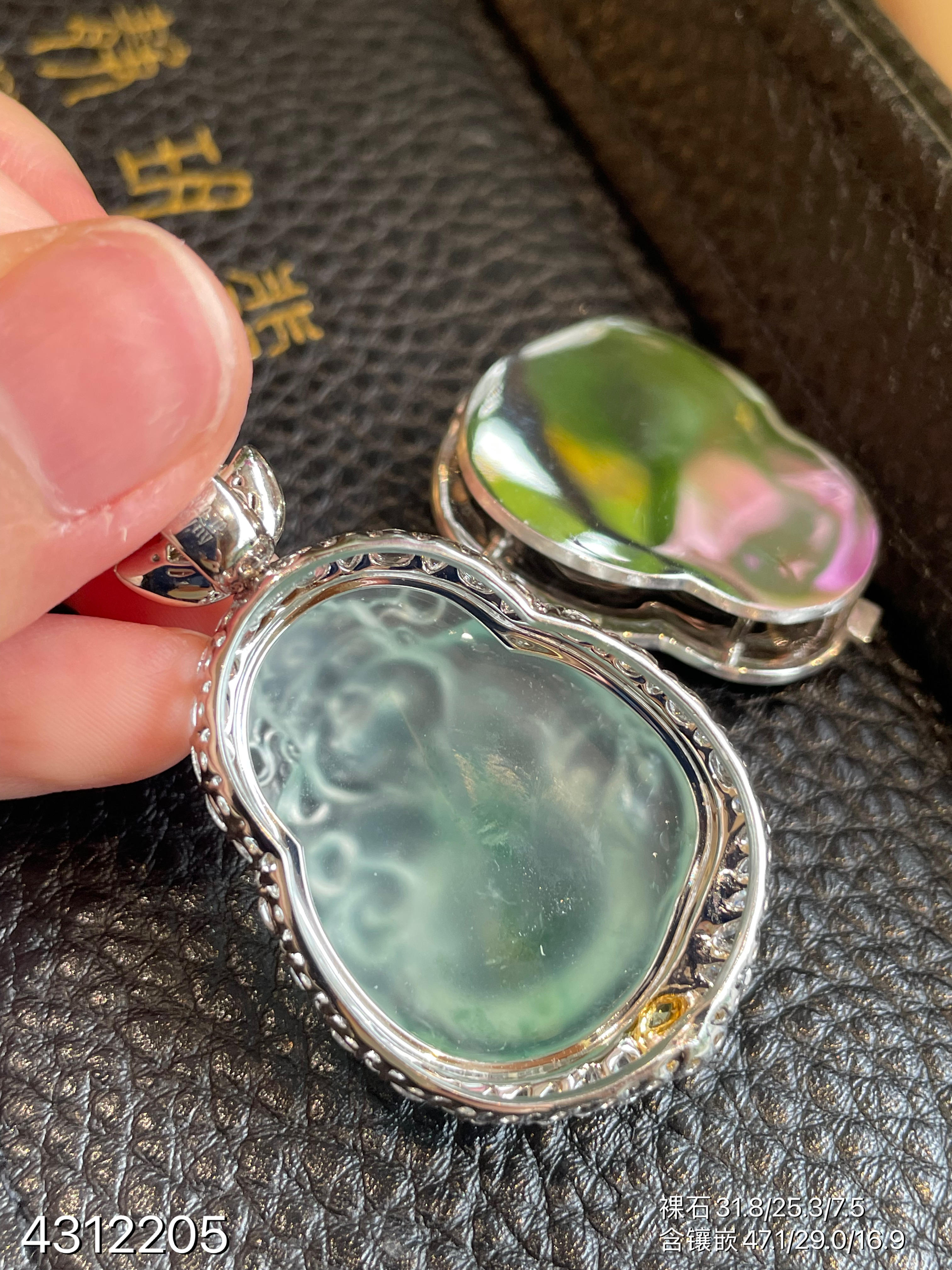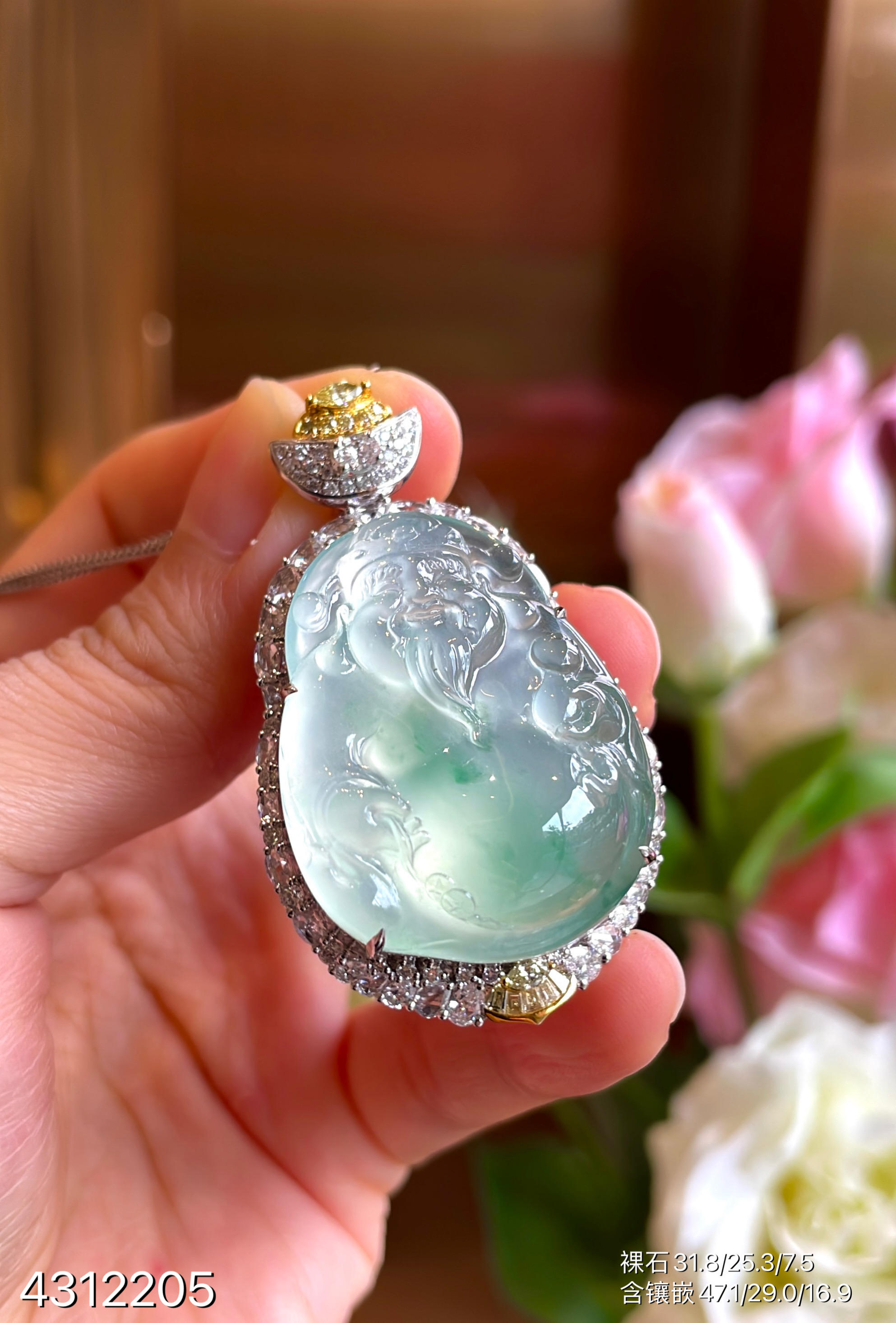 玻璃种木那飘翠财神吊坠【4312205】具体价格微信咨询