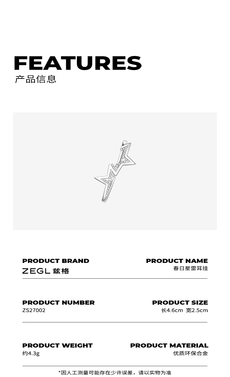 ZEGL设计师春季闪电耳环女ins冷淡风耳挂无耳洞耳饰2021年新款潮