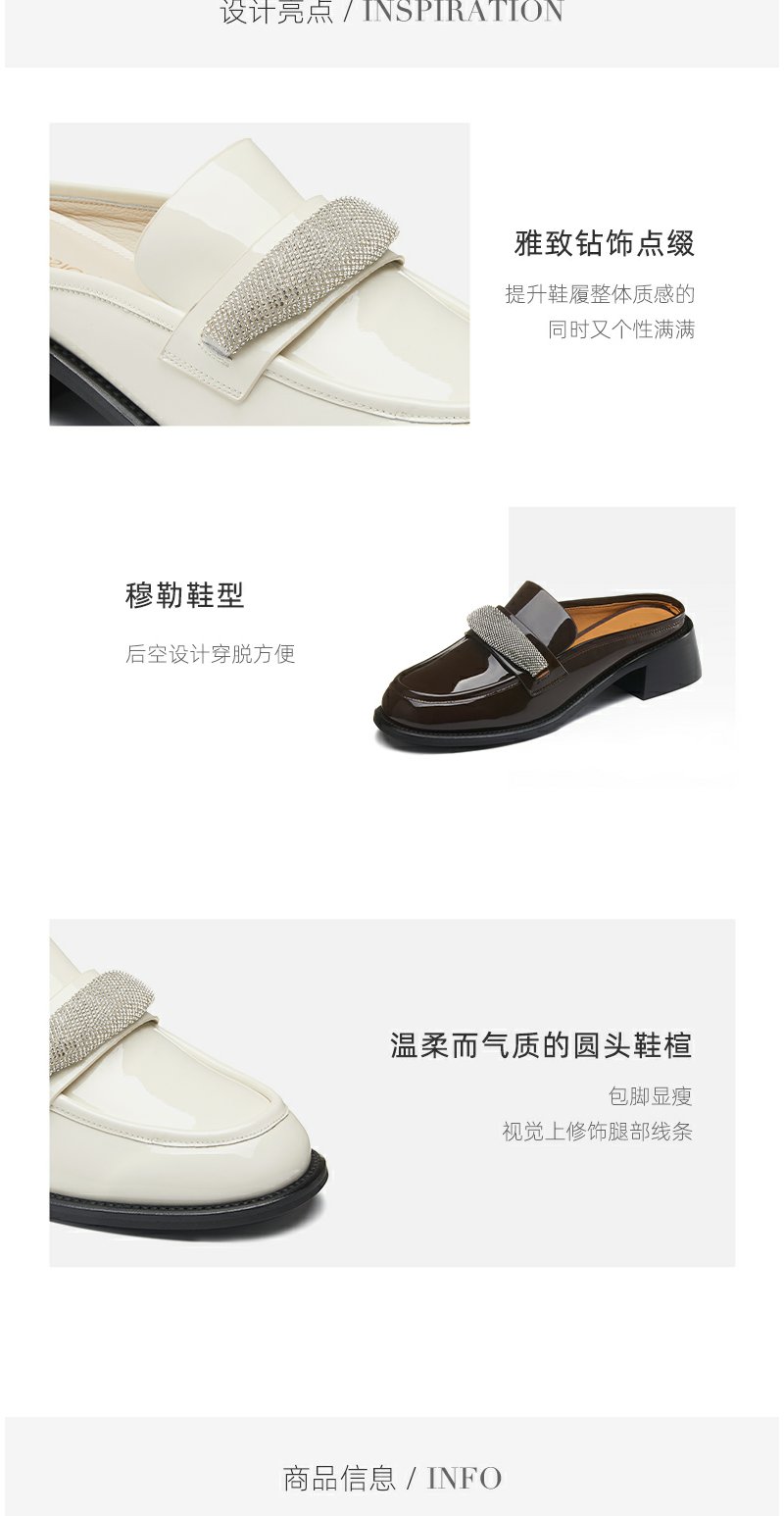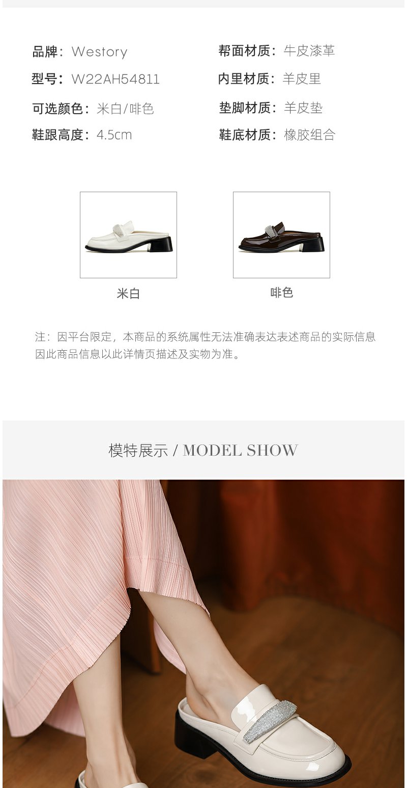 westory2022春夏季新款水钻包头休闲中跟穆勒拖W22AH54811