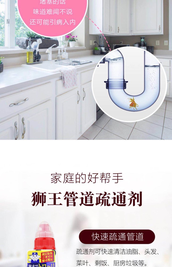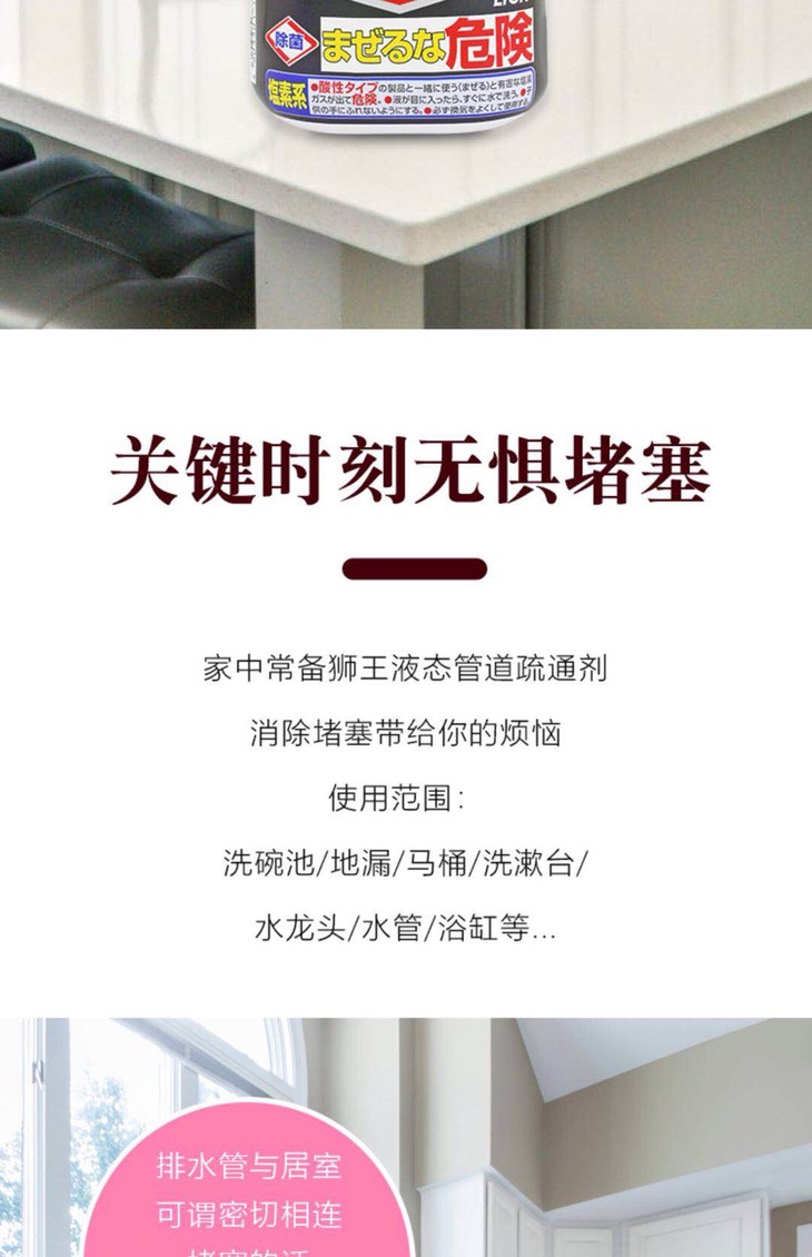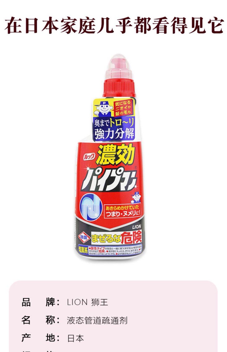 日本LION狮王/管道强力疏通剂450ml/杀菌消毒-会员6折