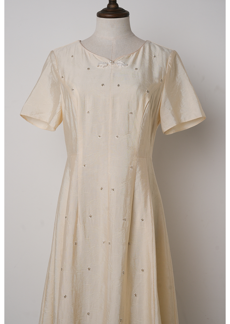 吉祥衣家新中式国风新款裙子气质显瘦修身女装岩中花影真丝连衣裙
