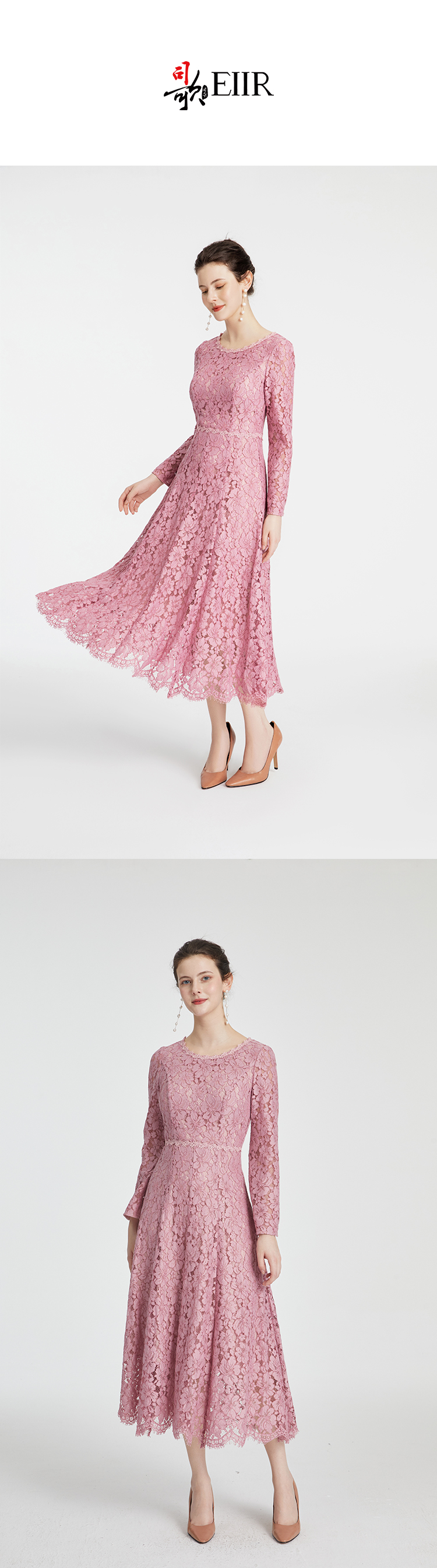 司歌蕾丝长袖连衣裙气质优雅长裙A881027
