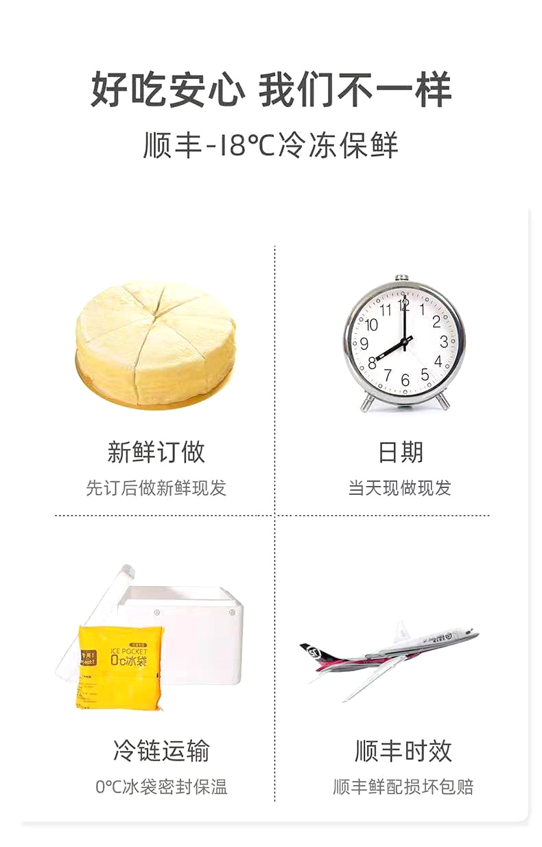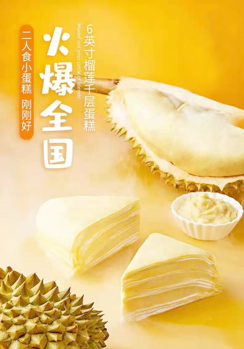 【三层动物奶油】榴莲千层450g*2个 榴莲果肉 6英寸 千层蛋糕 包邮