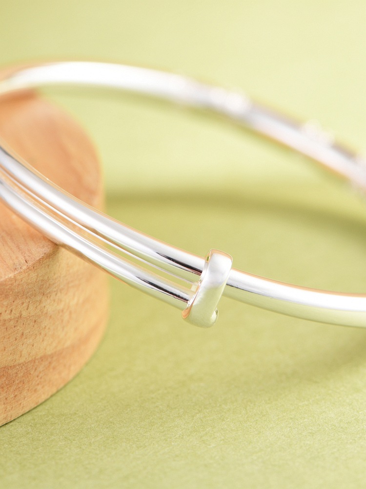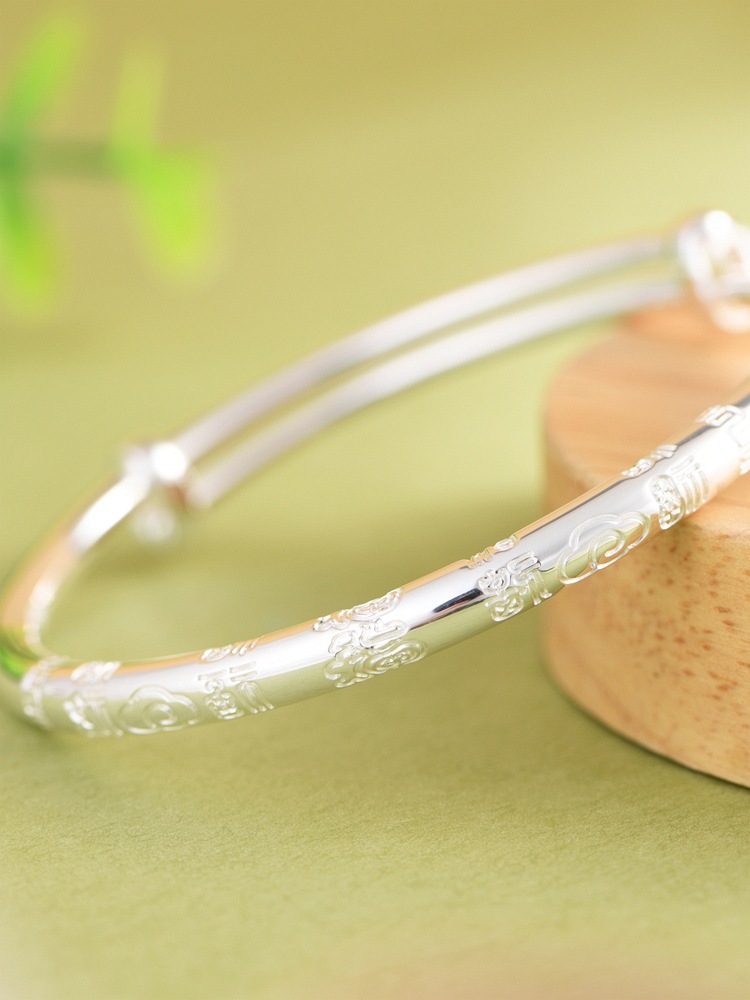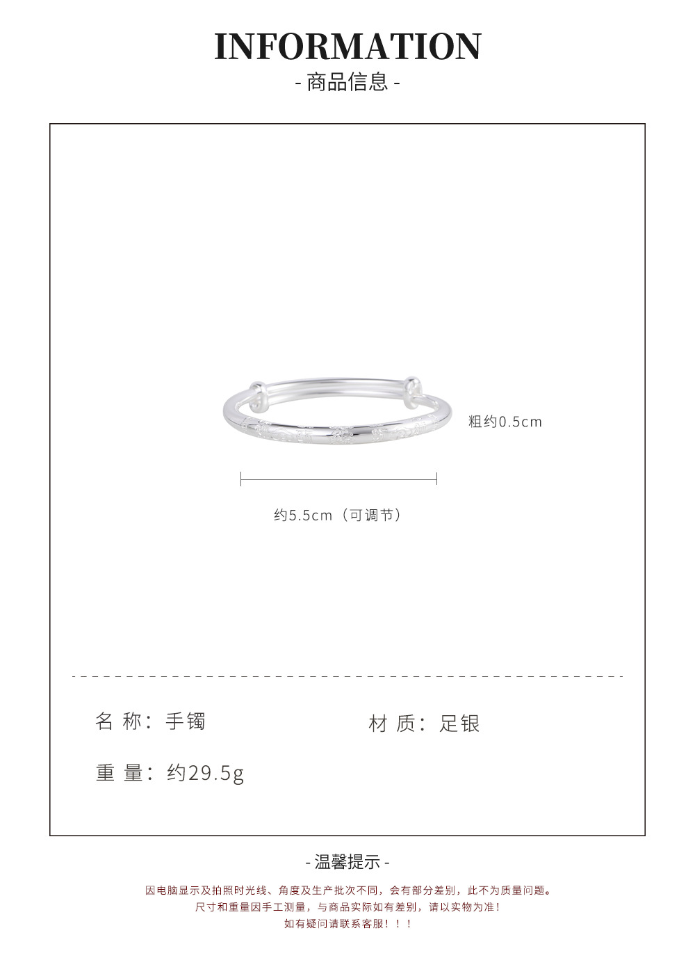 【祥云五福】足银圆棍实心推拉口手镯【SCH-SZ0025-1-227】
