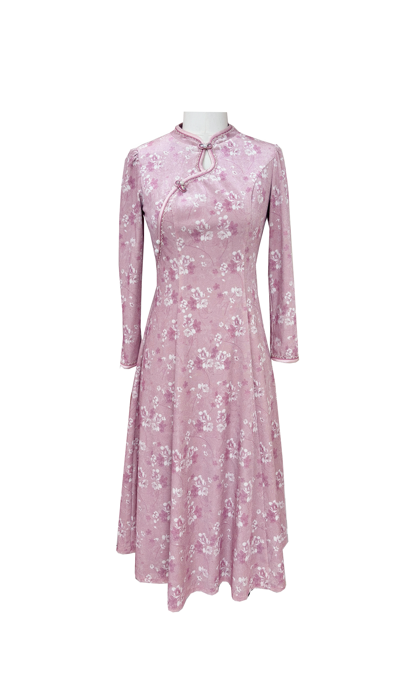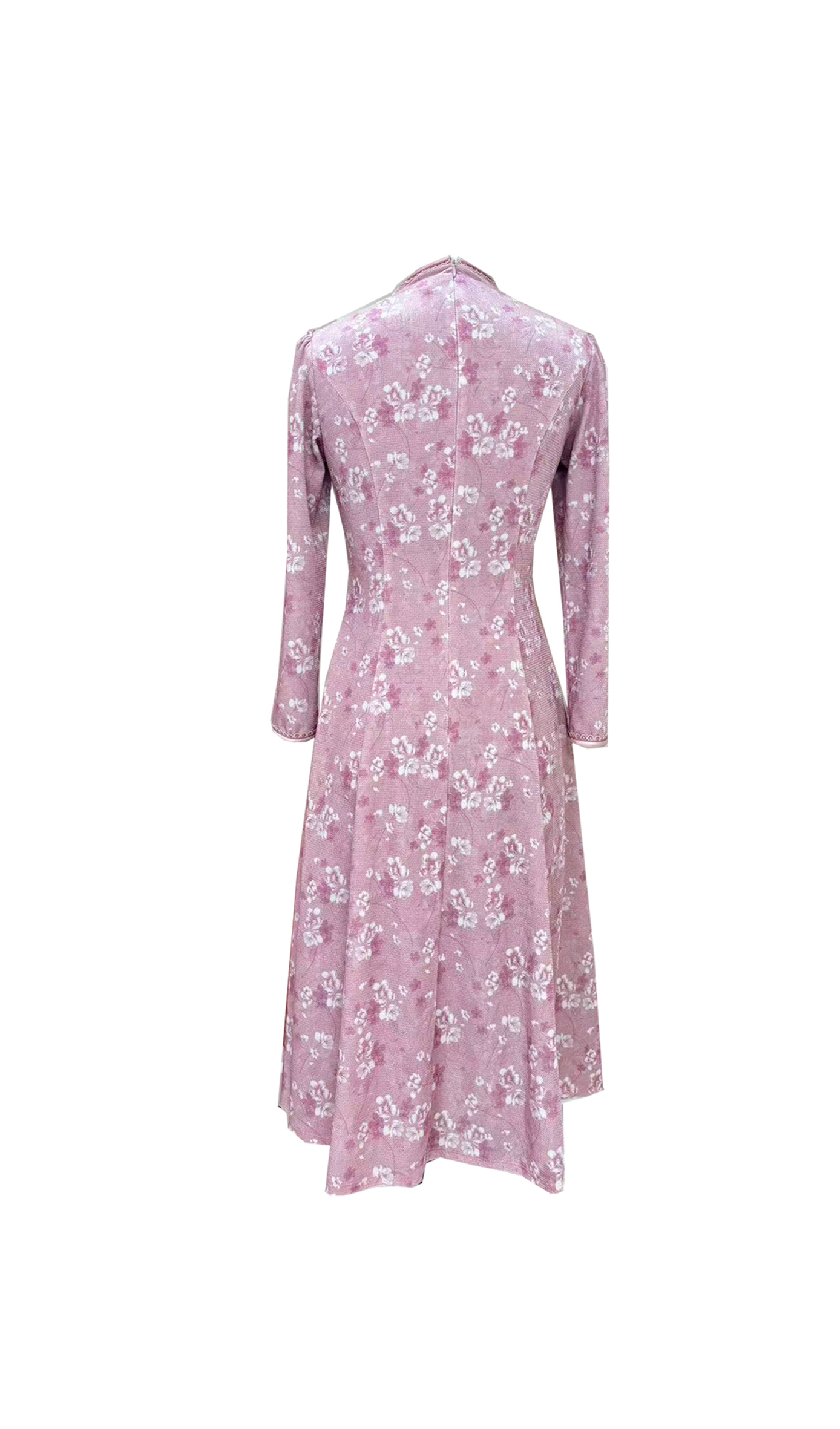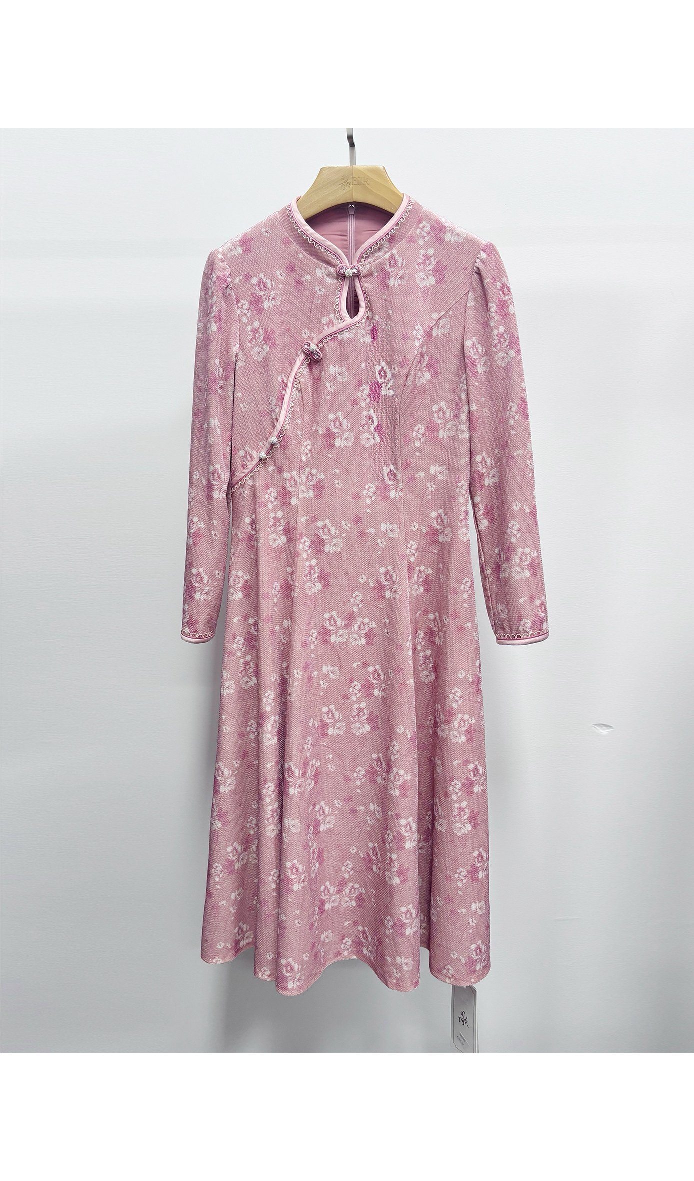 司歌丝绒印花国风裙长袖连衣裙旗袍A881434