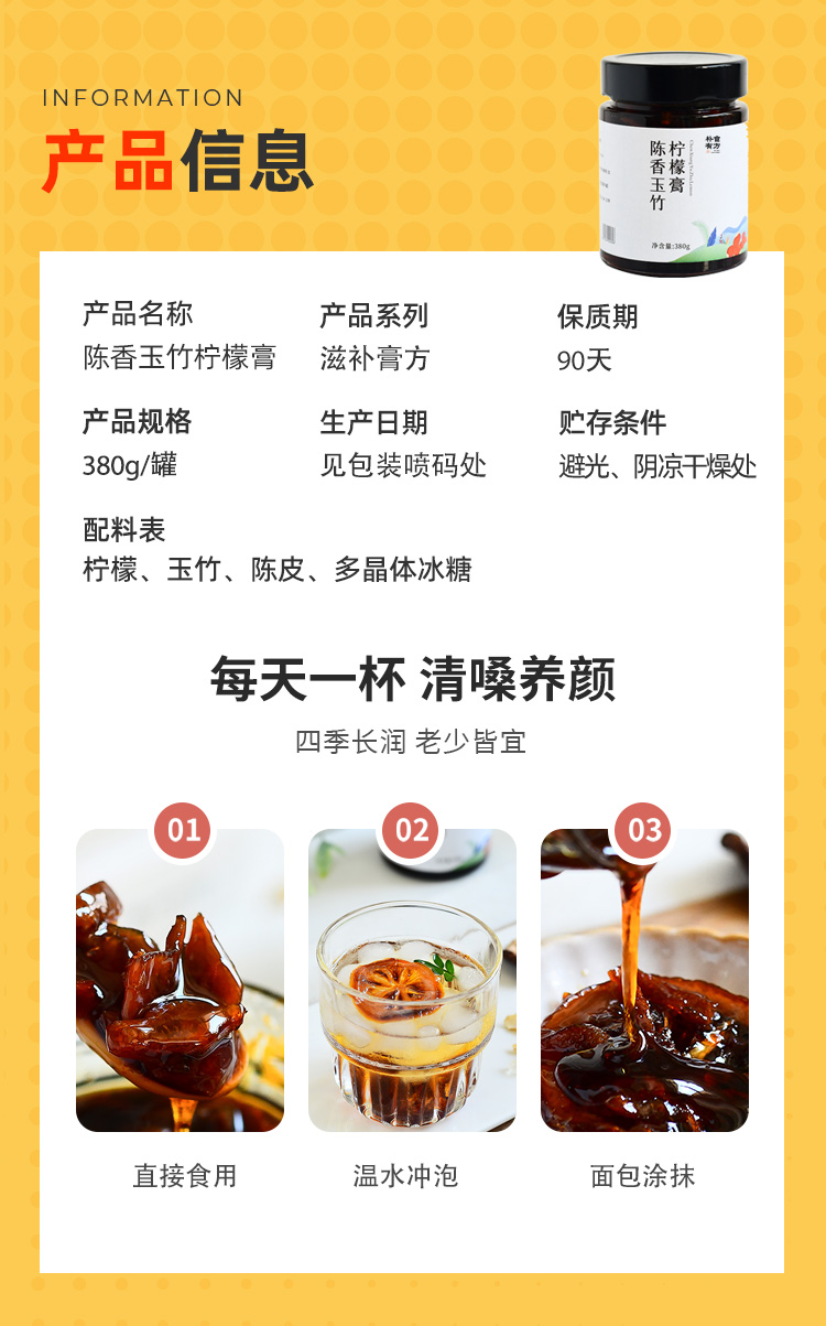 【包邮到家|朴食有方-玉竹柠檬膏】纯鲜果熬制|0人工添加|12小时小砂锅慢炖|不加一滴水|清爽不甜腻,越喝越有滋味,喝完把柠檬嚼一嚼滋味更爽。 如风生活特惠