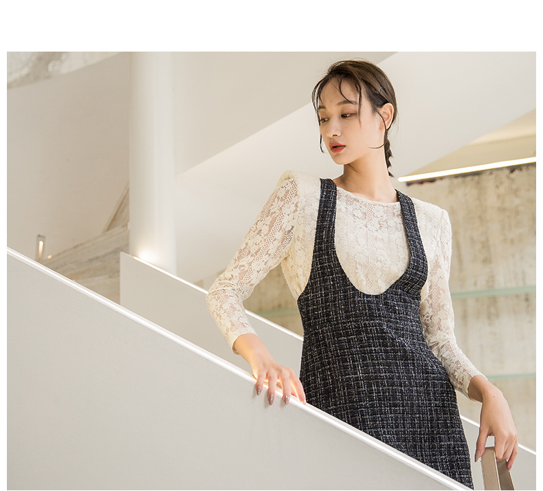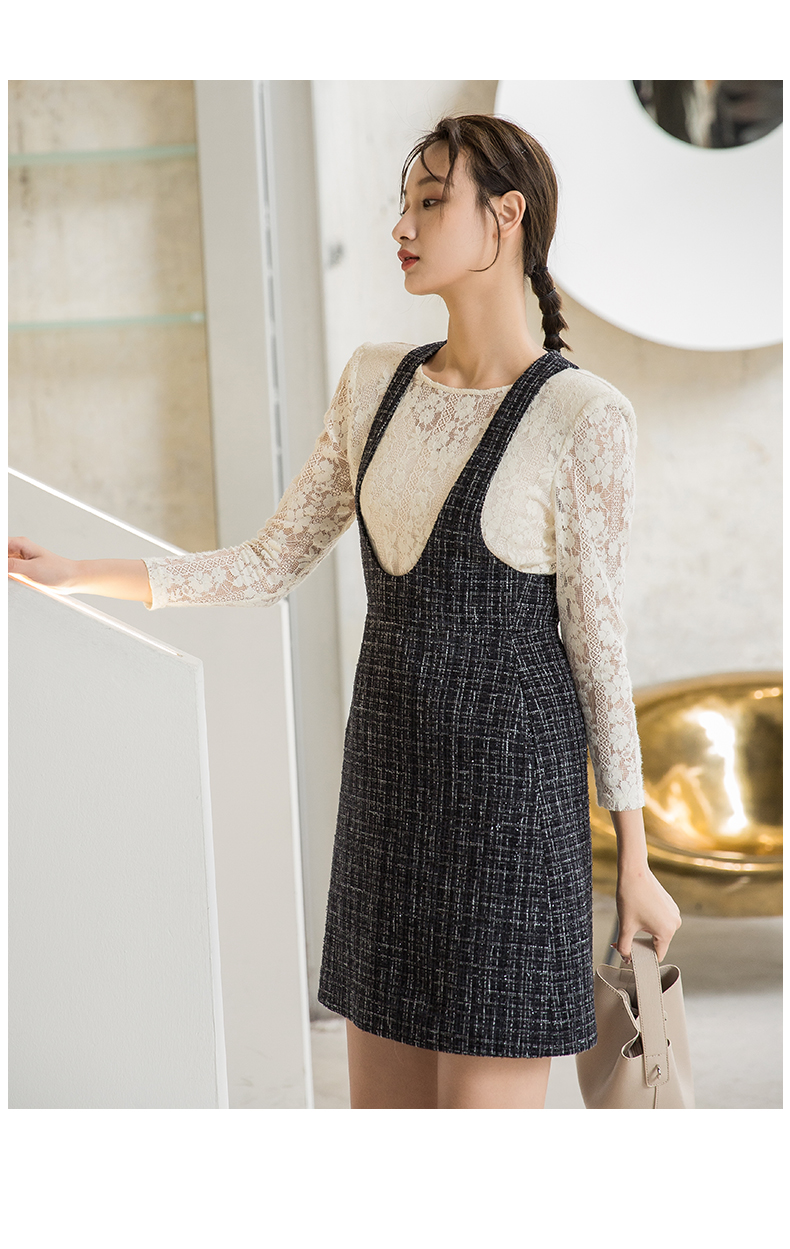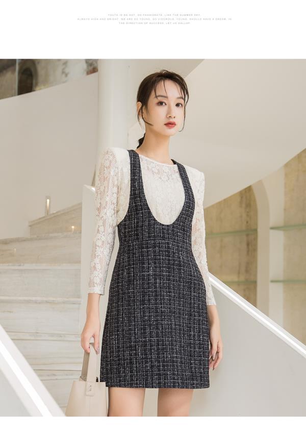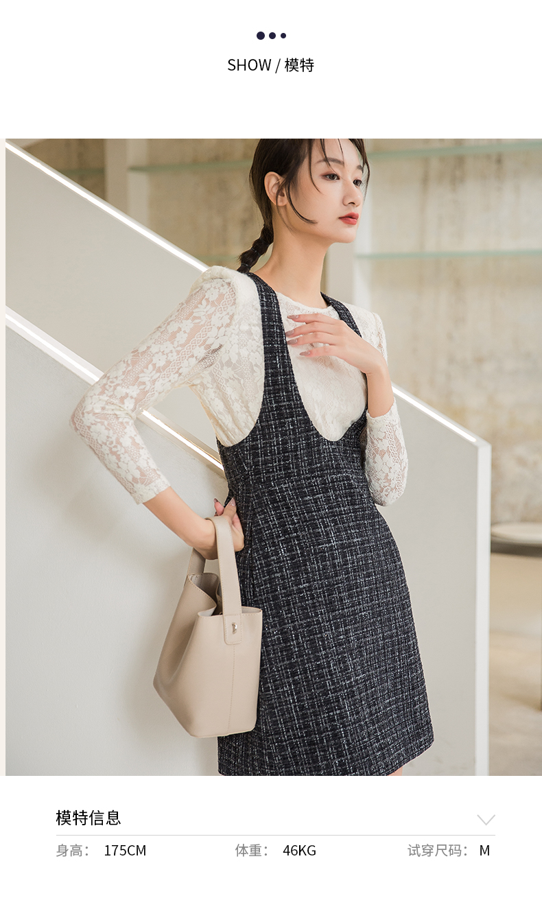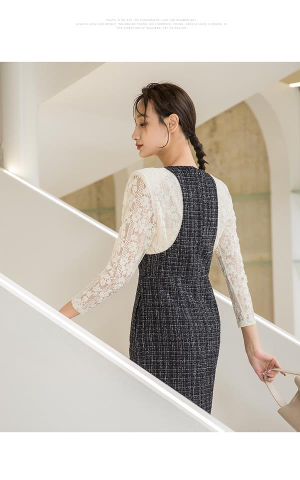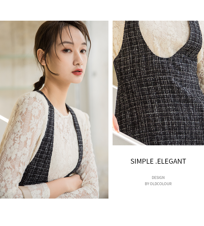 oldcolour秋季新款拼接假两件是时尚通勤长袖连衣裙女P331006A1