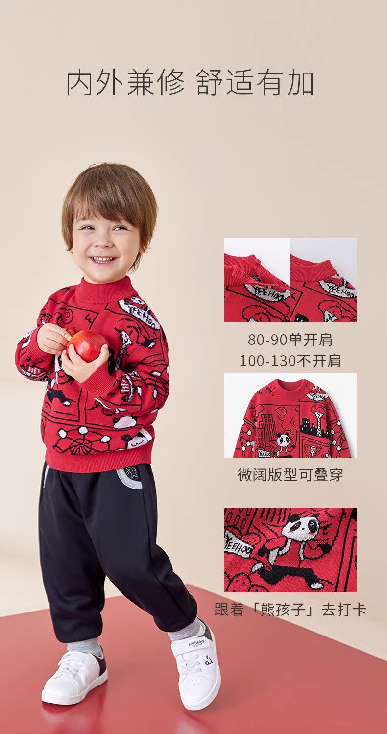 英氏儿童毛衣男童针织衫秋季女童休闲上衣YRTAJ32051A