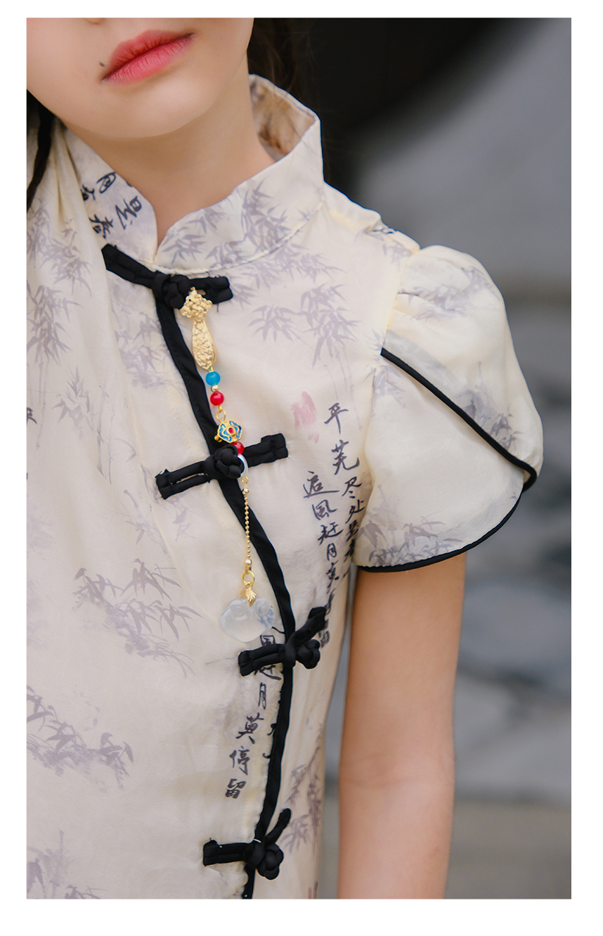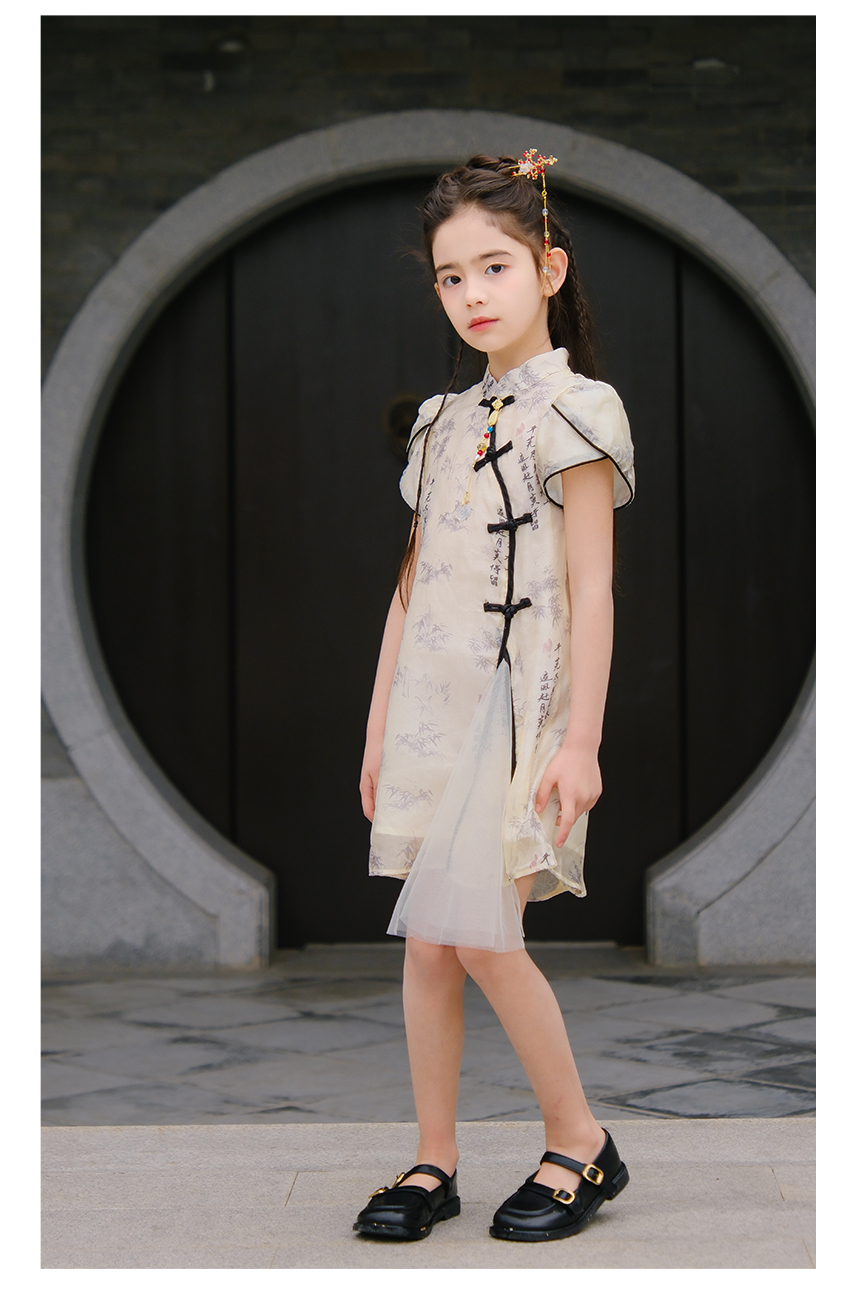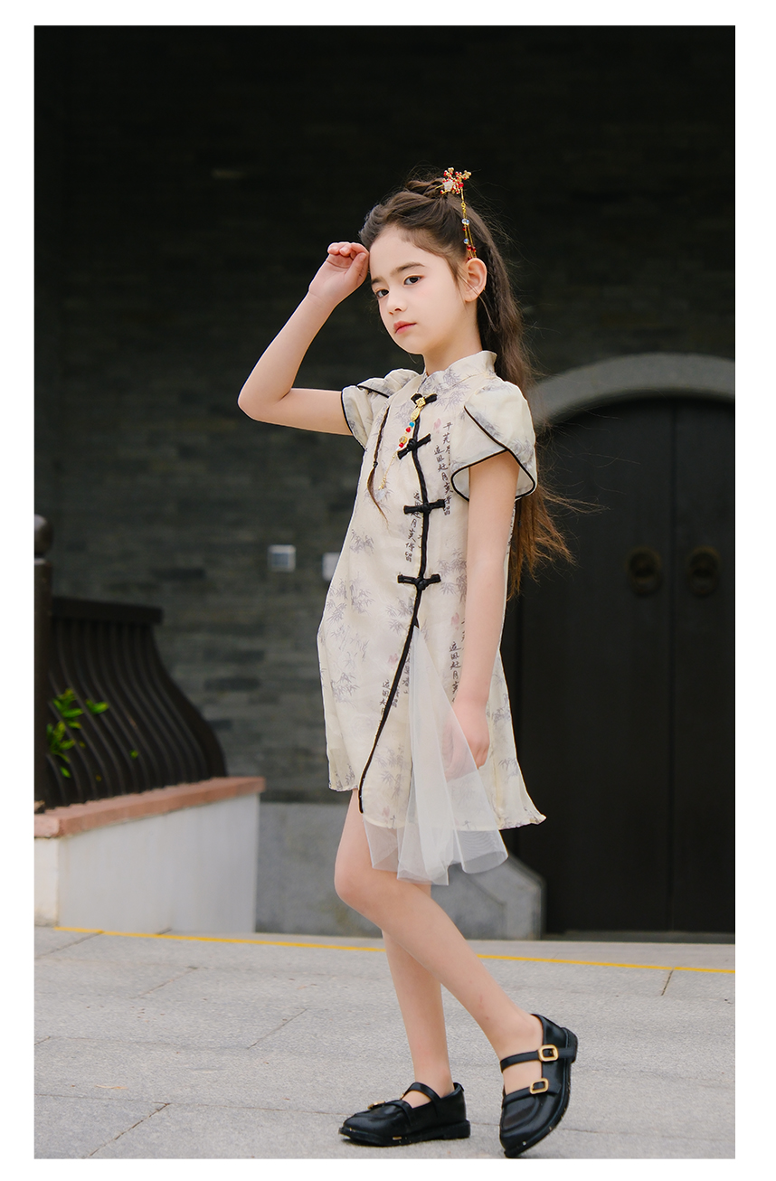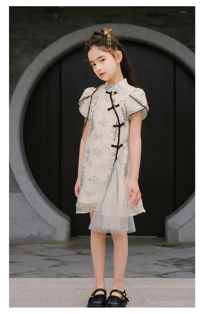 littletime女童中国风水墨旗袍短袖2024春夏新中式小女孩连衣裙