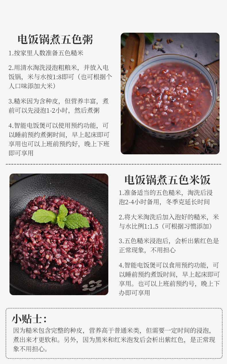 因为是粗粮比普通大米硬一些,为了更好的口感,建议大家煮之前记得提前用水泡3-5个小时哦。