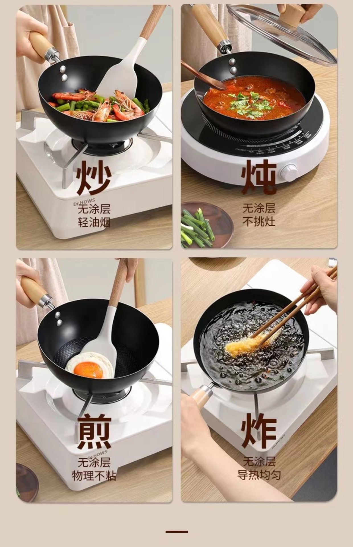 小铁锅20cm一人食日式迷你家用无涂层平底炒菜锅电磁炉适用小炒锅
